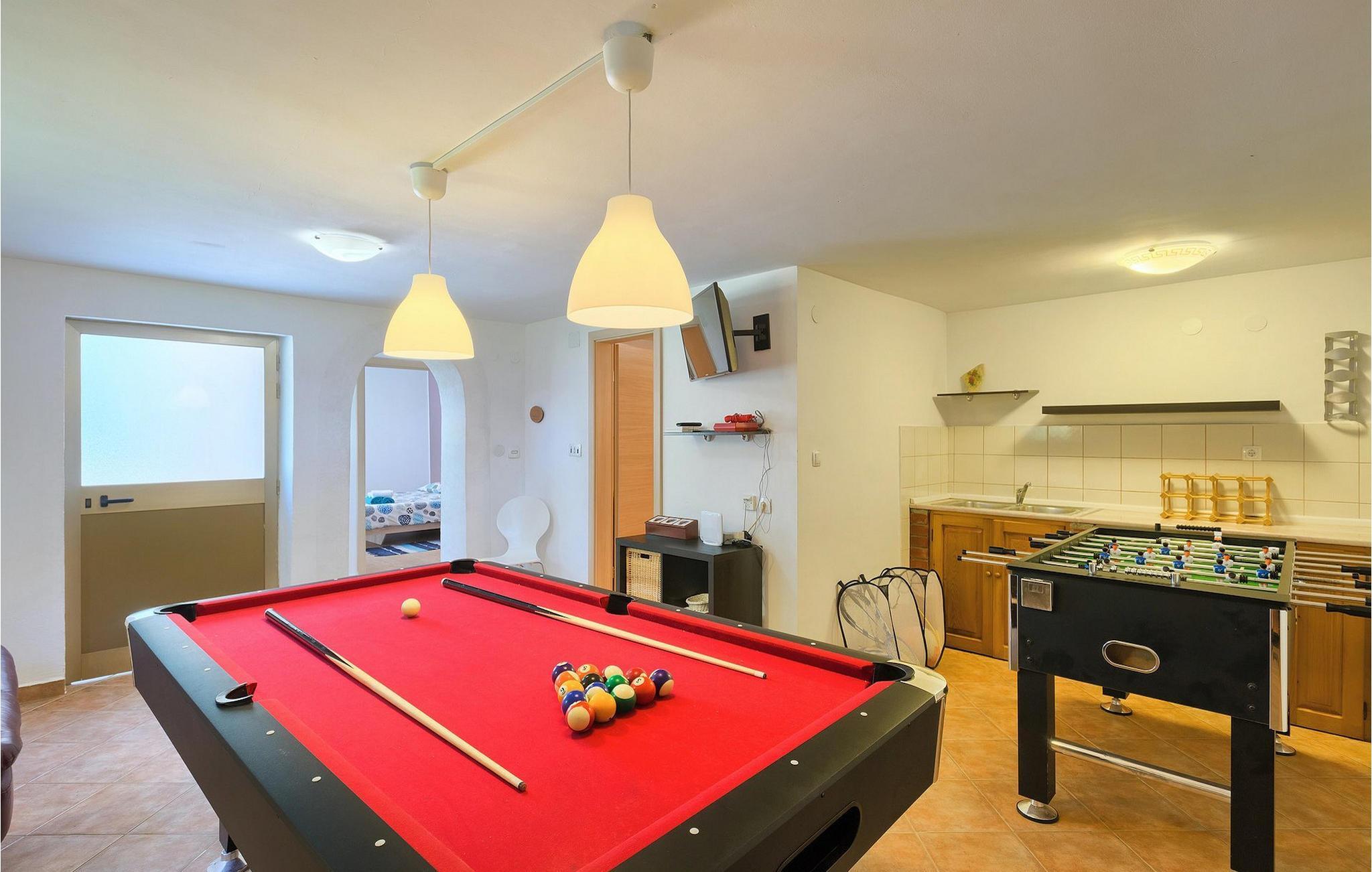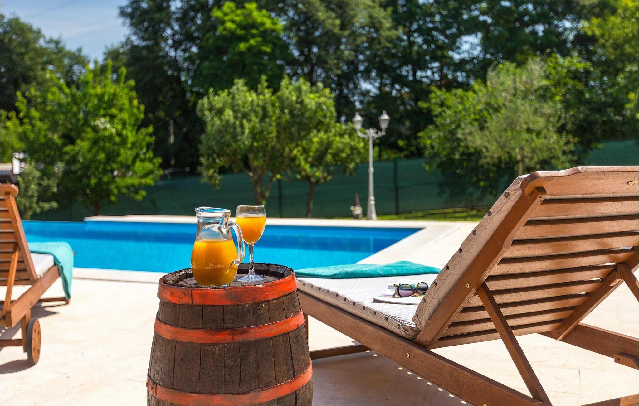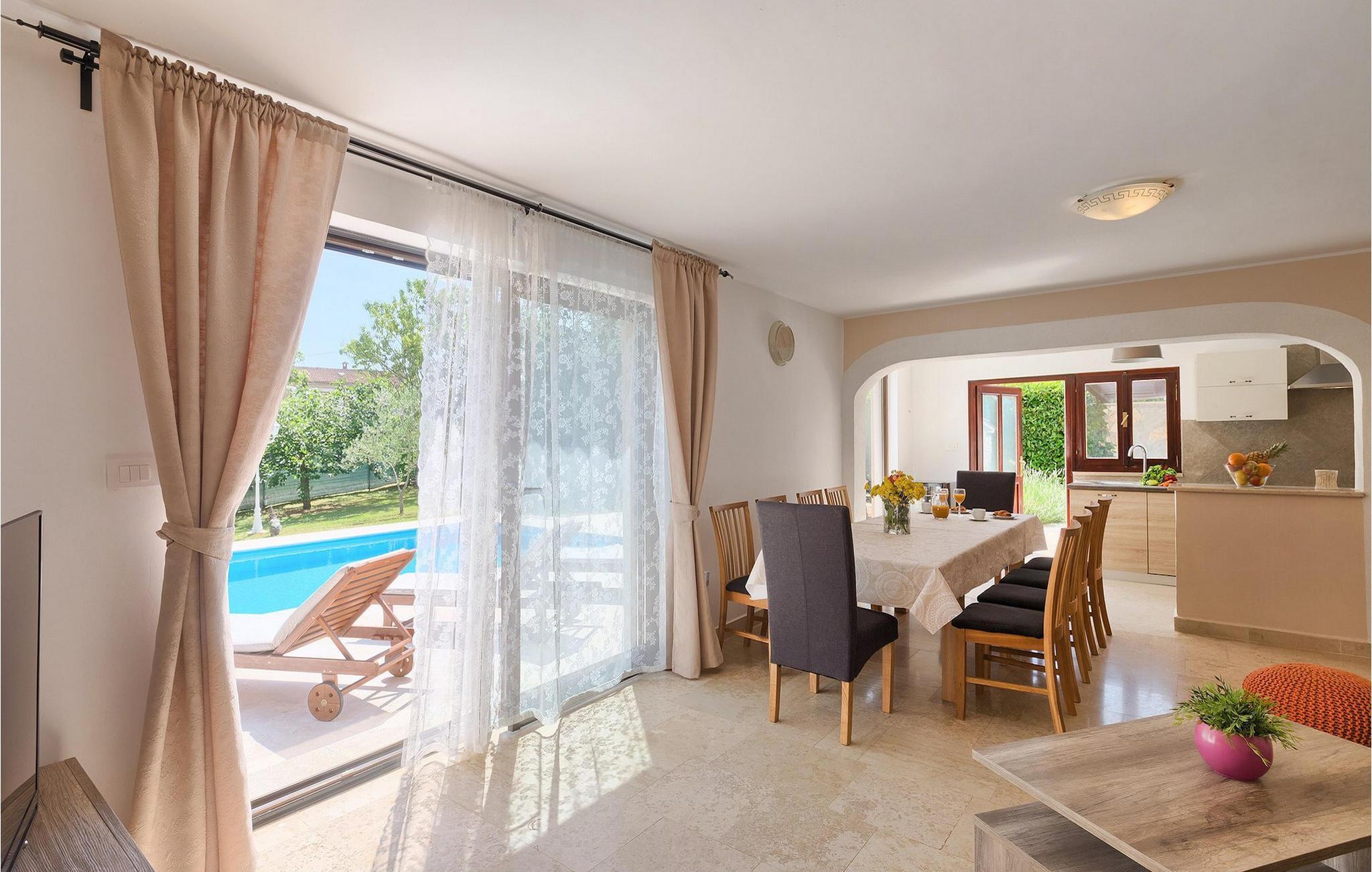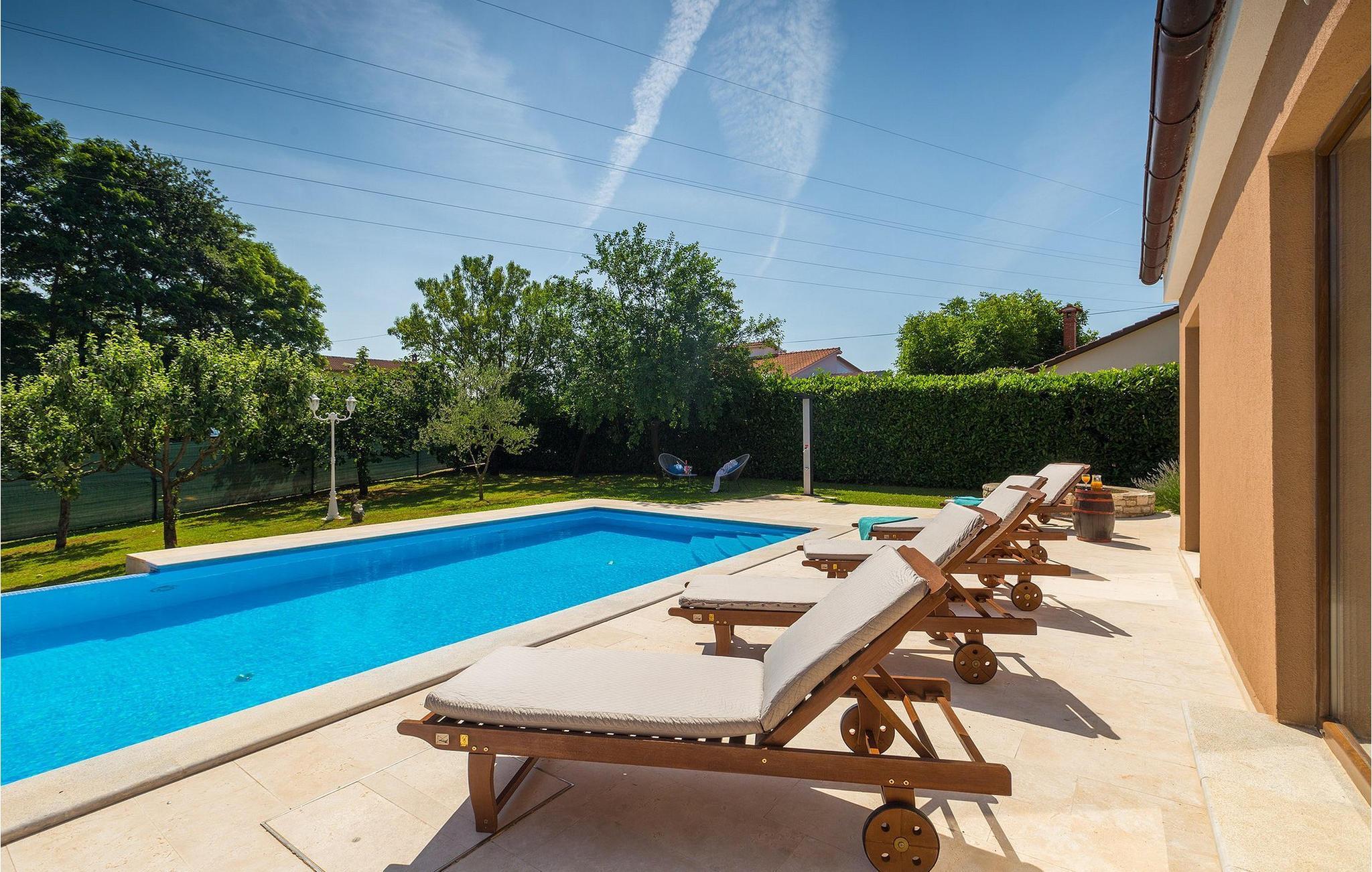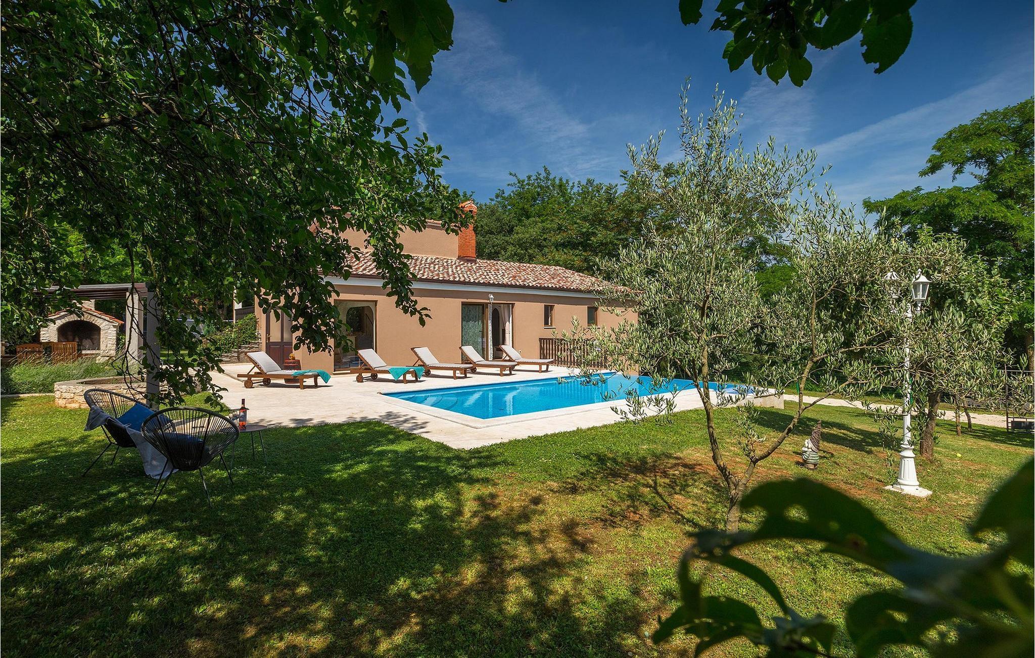 Die wunderschöne Villa Ferlini bietet alles, was Sie sich in Ihrem Urlaub wünschen und überhaupt vorstellen können. Die Villa bietet Platz für bis zu 8 + 2 Personen in ihren 4 Schlafzimmern (3 mit Doppelbett und eins mit zwei Einzelbetten). in der Villa werden sie einen schönen offenen Wohn-/Essbereich und Küche mit Balkontüren vorfinden, von wo aus Sie direkten Zugang zumwundervollen privaten Pool und dem fantastischen sorgfältig gepflegten Garten haben. Das 10000m2 große Grundstück bietet unzählige Möglichkeiten zur Entspannung, egal ob sie auf einer der Sonnenliegen neben dem privaten Pool ausruhen oder ein Buch auf der Bank im Garten lesen möchten. Auch die Kinder können besonders viel Spaß haben: Die Villa verfügt über einen Kinderspielplatz, Trampolin, Netz für Badminton und Volleyball sowie einen Basketballkorb, aber auch einen kleineren runden Pool mit Luftdüsen. Wenn Sie jedoch etwas Spaß im in der Villa selbst haben möchten, ist das kein Problem. In der Villa gibt es einen Billardtisch, Darts, Tischfußball sowie eine Sauna. Verpassen Sie die Gelegenheit nicht und bereiten Sie ein traditionelles Essen auf dem Grill im Freien für die ganze Familie zu. :)Im südlich-zentralen Teil der Halbinsel Istrien, liegt die mittelalterliche Stadt St. Vincent. Die alte Architektur der Stadt und den umliegenden Dörfern ist gut erhalten, während Weinberge und Oliven dieseRegion mit warmen, mediterranen Klima dominieren. St. Vincent und die Umgebung sind nicht nur für ihr historisches und kulturelles Erbe bekannt, sondern auch für guten Wein und traditionelle istrische Küche. Istrien ist ein einzigartiger und zauberhafter Ort, der Besucher und Siedler aus anderen Teilen der Welt seit jeher begrüßte. Die Stadt Pula mit dem römischen Amphitheater und der Nationalpark Brijuni mit einem 18-Loch-Golfplatz sind nur eine kurze Autofahrt entfernt. Die Adria Küste mit kristallklarem Meer und allen Arten von Wassersport-Aktivitäten sind auch nicht weit.