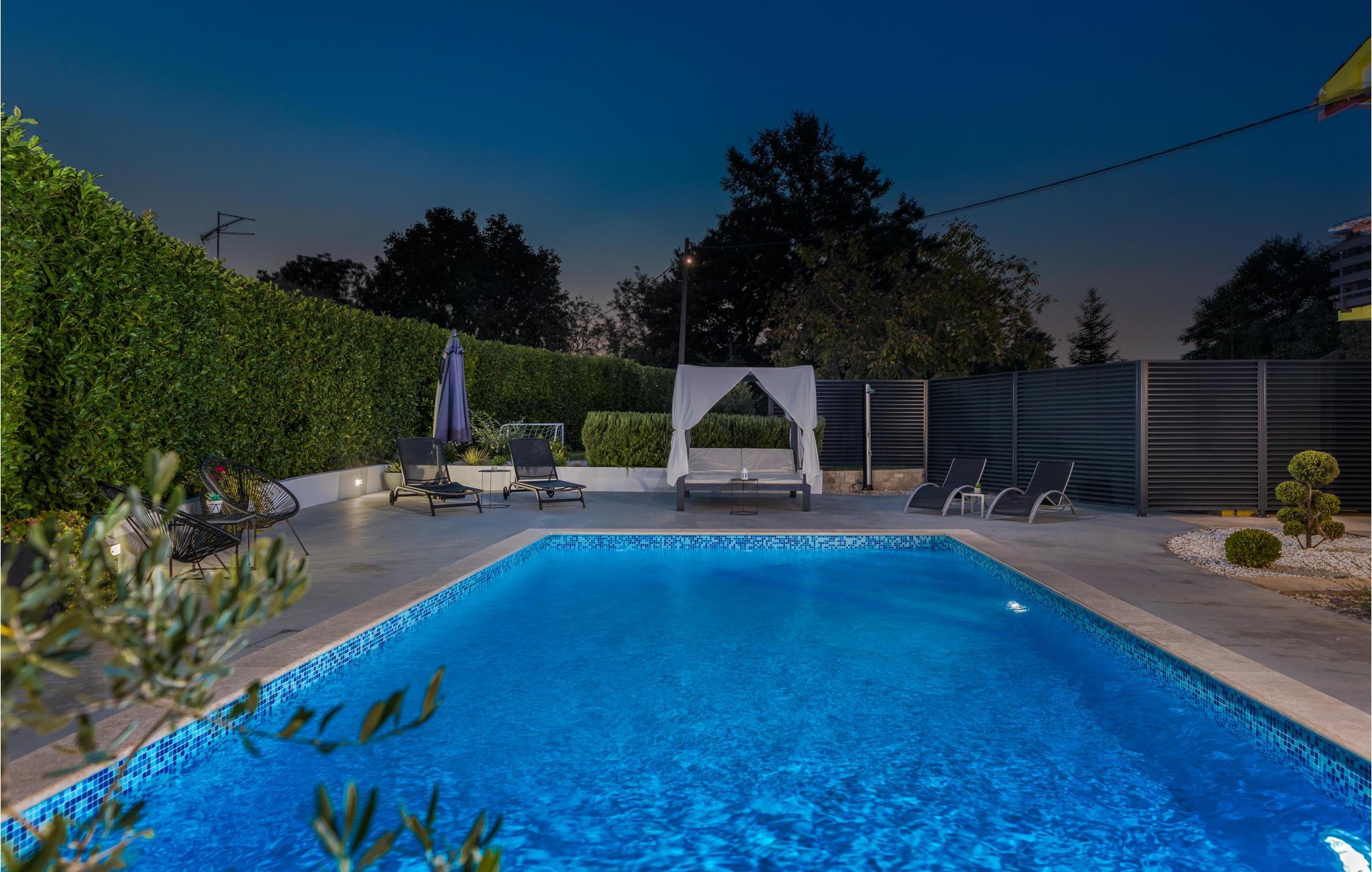 Diese geräumige und modern eingerichtete Ferienwohnung befindet sich im Erdgeschoss. Sie ist mit zahlreichen Details dekoriert, die ihr einen besonderen Charme verleihen. Drei Schlafzimmer stehen zur Verfügung, von denen eines besonders für jüngere Familienmitglieder geeignet ist. Vom Wohnraum aus kommen Sie auf die Terrasse, wo Sie Ihren Morgenkaffee genießen können. Nur ca. 50 m von der Unterkunft befindet sich ein kleiner Park für die Kleinsten. Wir empfehlen Ihnen von dieser Ferienwohnung aus, im kleinen Ort Režanci, die beliebten Orte Pula, Rovinj, Porec und Pazin zu besuchen. Auf dem Grundstück steht Ihnen ein Swimmingpool zur Verfügung.