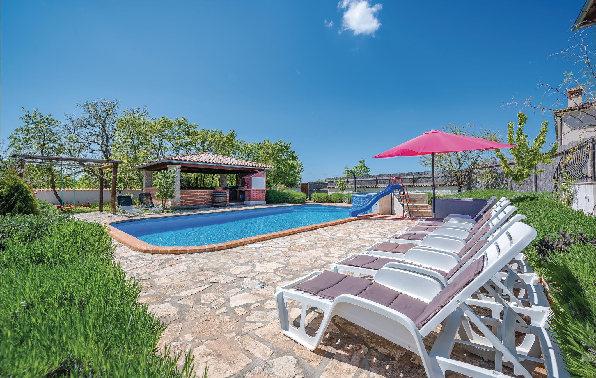 Dieses Ferienhaus wird Ihre Bedürfnisse komplett zufriedenstellen. Die Einrichtung ist passend zur ländlichen Umgebung. Es besteht aus fünf Schlafzimmern, Wohnzimmer, Küche, Esszimmer, 3 Badezimmer und schönen Terrassen. Die Bäder in den Schlafzimmern sind offen. Für die Kleinsten stehen Ihnen eine Schaukel und Rutsche zur Verfügung, sowie Trampolin, PlayStation3 und Karaoke. Die Erwachsenen entspannen im Hydromassage-Becken. Zur Unterhaltung sorgen der Billardtisch, Tischfußball, Darts, Volleyballfeld sowie ein Swimmingpool für Jung und Alt. Unternehmen Sie Radtouren, Spaziergänge in der schönen Natur oder Reittouren auf der nahe gelegenen Ranch. Für zusätzlichen Spaß stehen Ihnen ein Minigolfplatz und ein Sandfeld für Fußball und Handball zur Verfügung.