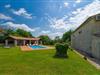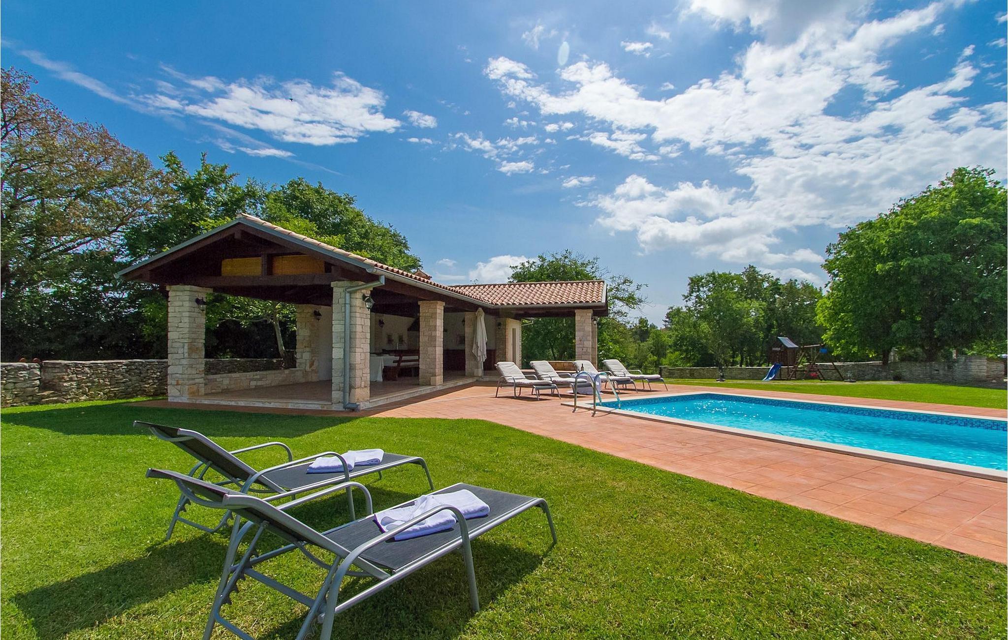 Der Außenbereich umfasst einen komplett eingezäunten großen grünen Garten mit Pool und Liegestühlen ideal zum Entspannen und Genießen in der heißen kroatischen Sonne.