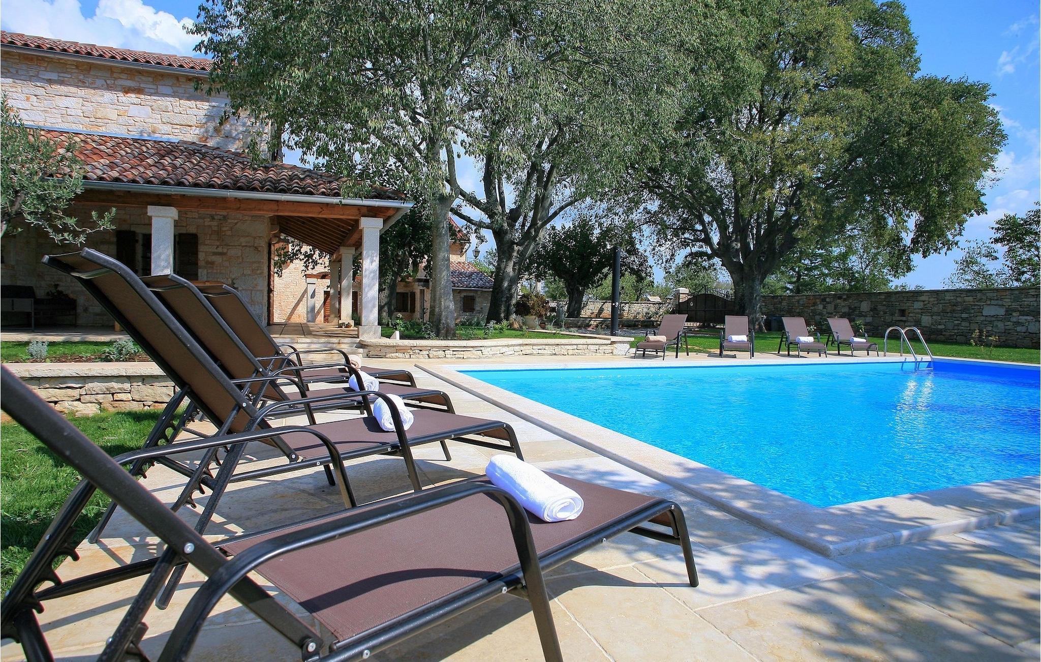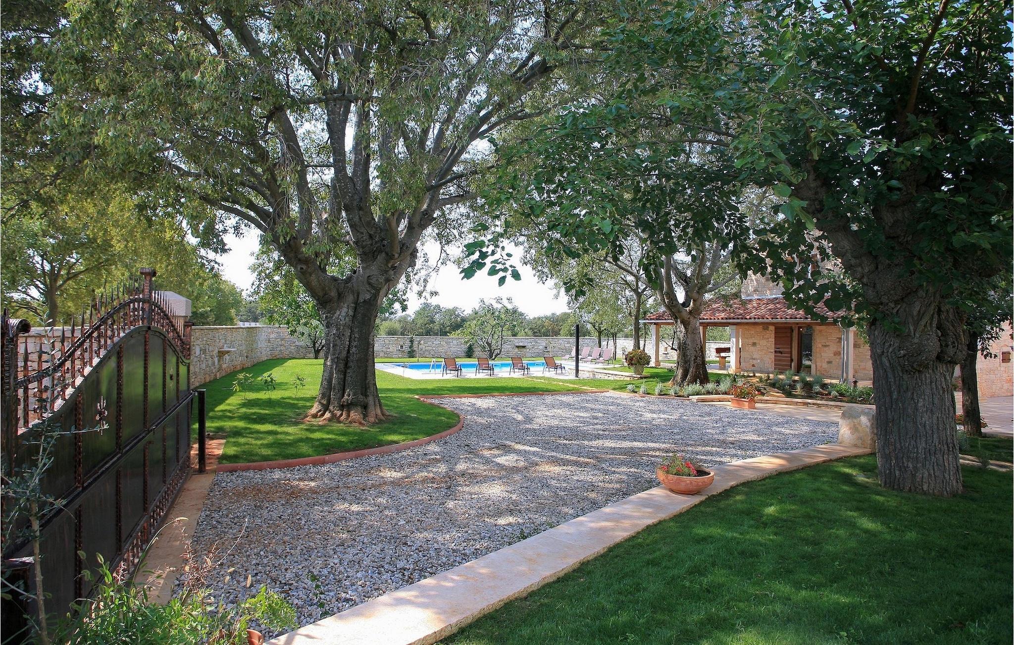 Die Villa Stancija Salamon befindet sich in dem kleinen Dorf Svetivincenat, in Zentralistrien. Diese schöne, neu renovierte Steinvilla bietet absolute Privatsphäre. Sie verfügt über einen gepflegten Garten und alte Bäume, die viel natürlichen Schatten spenden, wo Sie sich entspannen können, während Sie Ihr Lieblingsbuch lesen oder Ihr morgendliches Yoga-Training machen. Auf der anderen Seite, am großen Swimmingpool, können Sie einfach die Seele baumeln lassen und in der Sonne liegen. Nur wenige Schritte entfernt befindet sich die schöne überdachte Terrasse, auf der Sie laue Sommernächte bei einem Glas Malvazija genießen können. Neben der Villa befindet sich eine 10.000qm große nicht eingezäunte Grünfläche, die sich perfekt für Familienspiele eignet. Das Anwesen besteht aus zwei Steinhäusern, die nur als eine Einheit zur exklusiven Nutzung vermietet werden und ist perfekt für diejenigen, die etwas Privatsphäre während ihres Urlaubs suchen. Jedes Haus hat zwei Schlafzimmer mit Doppelbetten, von denen einige ein eigenes Badezimmer haben. Das Erdgeschoss besteht aus einer voll ausgestatteten Küche, einem großen Essbereich und einem gemütlichen Wohnzimmer mit Kamin. Die Villa verfügt auch über eine private Taverne mit einem Holzkohlegrill, perfekt für ein Familientreffen und das Genießen der gemeinsamen Zeit. Die Villa Stancija Salamon schafft durch ihre rustikale und schicke Einrichtung eine angenehme Atmosphäre, in der Sie sich wie zu Hause fühlen können.Die grüne Kleinstadt Svetvincenat ist ein charmanter Standort für dieses eindrucksvolle Ferienhaus, das perfekt zu seiner wunderschönen Umgebung passt. Im Umkreis von 10 Gehminuten finden Sie einige Bars, eine Pizzeria, zwei Lebensmittelgeschäfte, eine Post und eine Apotheke sowie das Juwel von Svetvincenat, den Hauptplatz. Der Platz mit einer wunderschönen Renaissancekirche und einer Loggia aus dem 18. Jahrhundert wird von dem imposanten Grimani-Palast dominiert, einer gut erhaltenen mittelalterlichen Burg mit einem breiten Wohnturm, der von einer mit Kastanien und Kiefern gesäumten Rasenfläche umgeben ist.