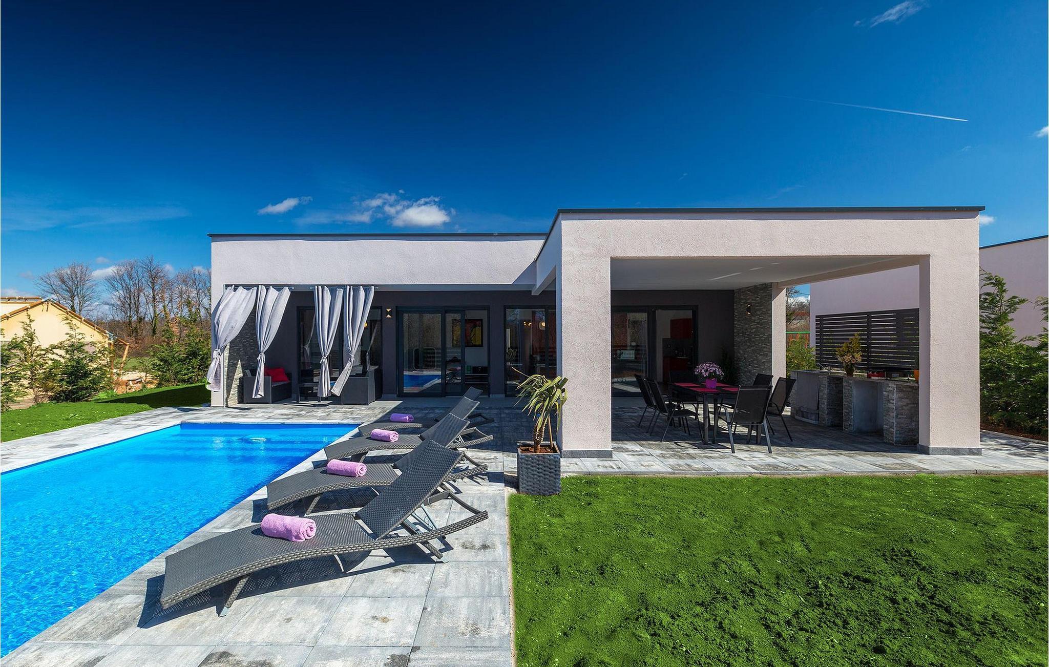 Diese schöne und stilvoll eingerichtete Villa ist die perfekte Wahl für einen Familienurlaub. Diese Villa, in einer ruhigen istrischen Ortschaft gelegen, ist eine ideale Unterkunft für 4 Personen in 90 Quadratmetern. Das große Sofabett im Wohnzimmer bietet Platz für noch 2 zusätzliche Personen. Der Wohnbereich der Villa hat direkten Zugang zum Privatpool im Garten der Villa, und ist dank der großen Glasfläche mit viel Licht durchflutet. Das Wohnzimmer ist mit dem Essbereich und der völlig ausgestatteten Küche verbunden. Die Küche ist jedoch nicht der einzige Platz, wo Sie Ihre Mahlzeiten zubereiten können; auf der geräumigen überdachten Terrasse vor der Villa stehen Ihnen ein Gasgrill, sowie ein Waschbecken und Geschirr zur Verfügung. Falls Sie Ihren Urlaub mit Kindern verbringen, außer im privaten Pool, können sie auch Spaß mit Badminton oder auf der Rutsche und der Schaukel haben. In der Villa gibt es insgesamt 2 Schlaf- und 2 Badezimmer. Ein Schlafzimmer verfügt über ein Doppelbett und hat ein eigenes Badezimmer. Das zweite Schlafzimmer hat 2 Einzelbetten. Beide Zimmer, sowie die ganze Villa, sind einfach aber stilvoll eingerichtet und bieten Ihnen einen vollkommend erholsamen Urlaub.Beide Villen, Sorella 1 und Sorella 2, befinden sich in einem ruhigen istrischen Dorf, das eine perfekte Mischung aus Ruhe und Entspannung weit weg von der Stadthektik ist. Doch die bekannten Urlaubsziele an der Küste, wie z.B. Pula und Rovinj, sind leicht zu erreichen. Zentralistrien ist eine wunderschöne Region mit vielen kleinen mittelalterlichen Städtchen mit guten Restaurants, Cafés, Weingütern und Geschäften. Svetvincenat und Vodnjan sind zwei solche Städtchen und sind innerhalb 10 km von der Villa entfernt. Während Sie Ihren Urlaub in der Ruhe dieser Zentralistrischen Ortschaft verbringen, können Sie die Gelegenheit nutzen, Fažana und die schönen umliegenden Strände zu besuchen oder die Möglichkeit nutzen, mit dem Boot zu einem der Nationalparks in Kroatien - Brijuni zu fahren.