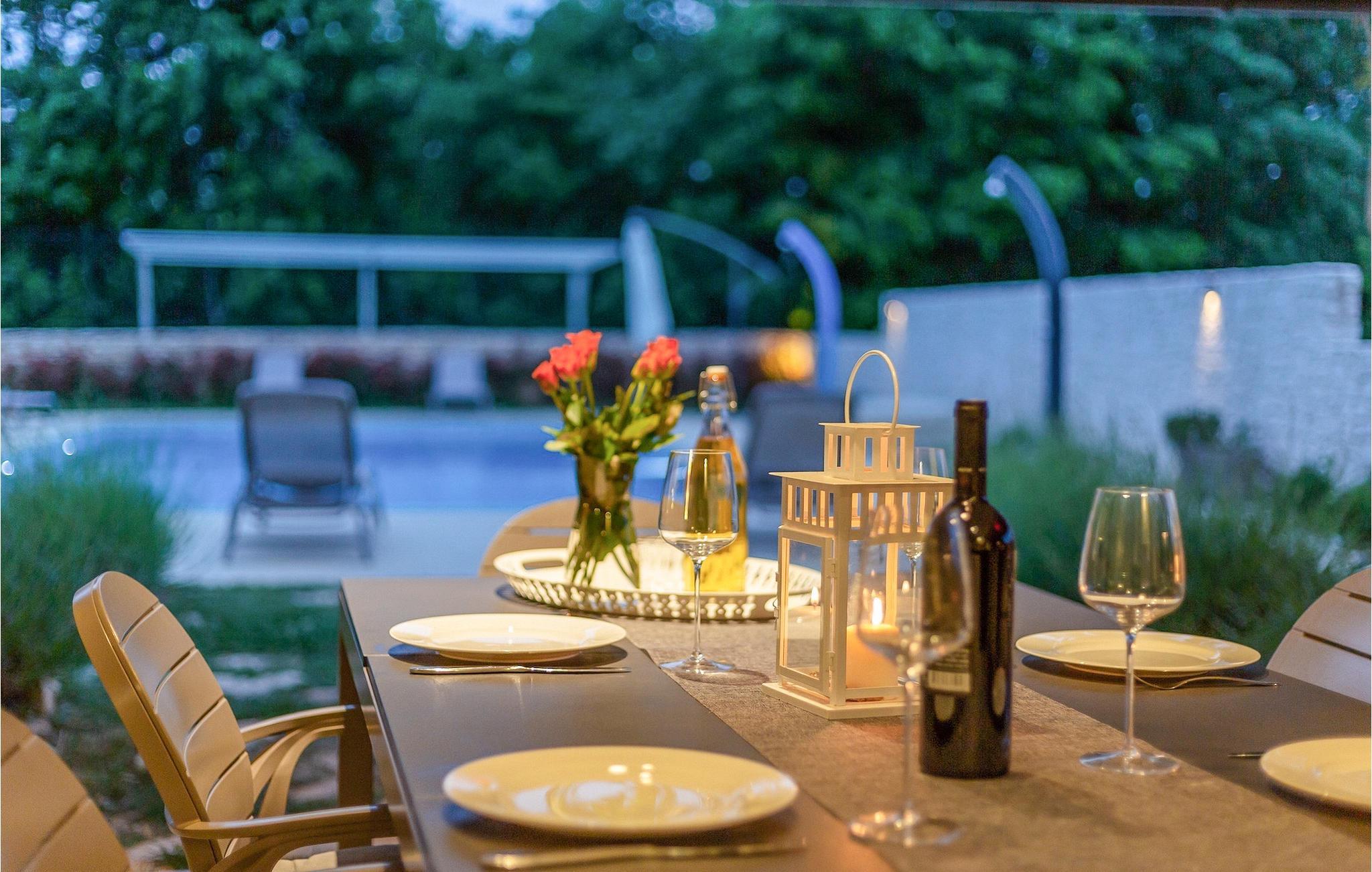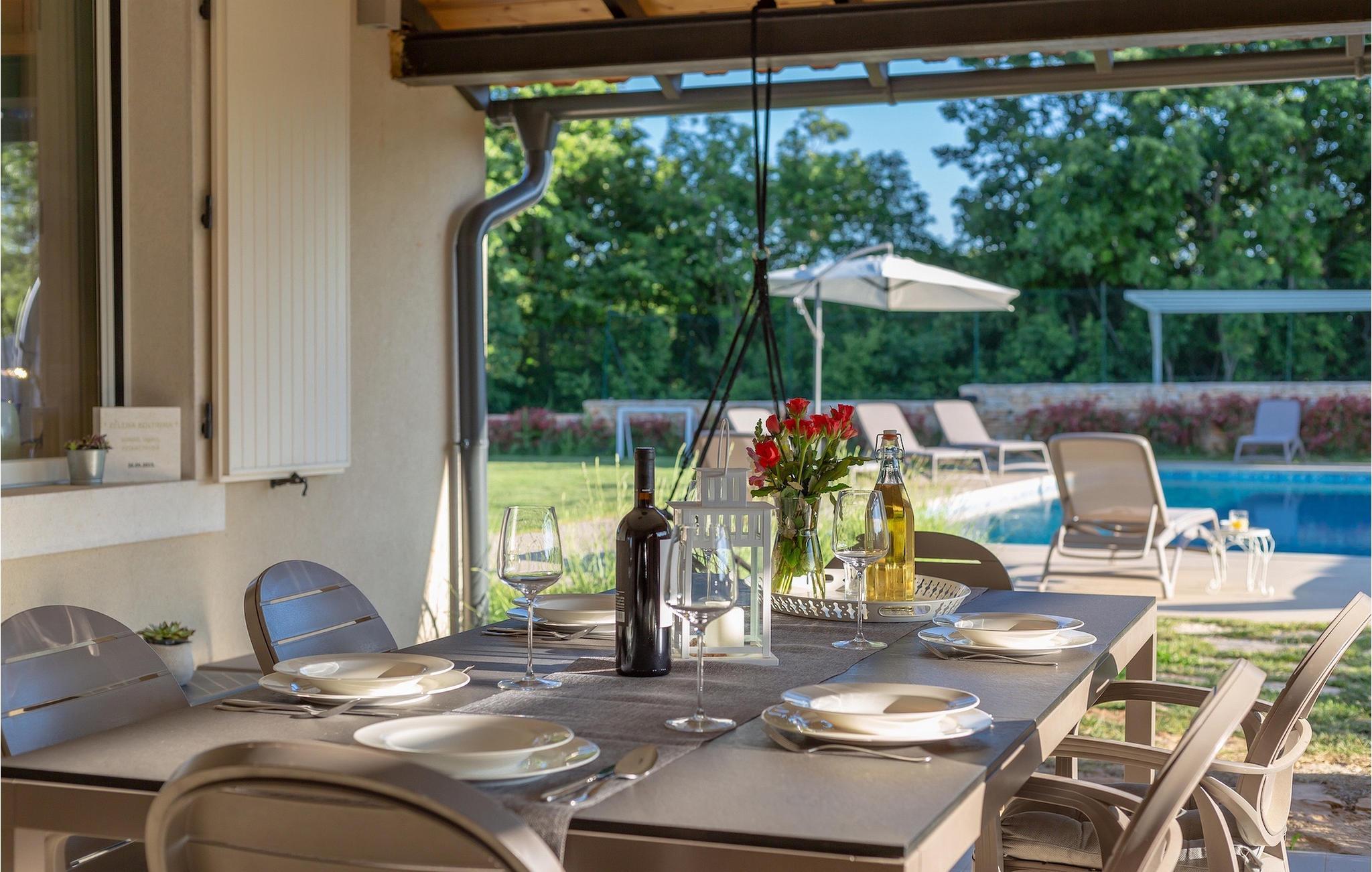 Villa My Koltrina ist die ideale Wahl für einen erholsamen Familienurlaub in einer Villa in ruhiger Lage in Zentralistrien, die aber gleichzeitig nicht zu weit von größeren touristischen Städten entfernt ist. Diese wunderbare Villa mit wunderschönem 72m2 großem privaten Pool wurde mit viel Aufmerksamkeit und Liebe zum Detail eingerichtet, um ihren Gästen eine warme und einladende Atmosphäre zu bieten, ohne auf Geräumigkeit und Luxus verzichten zu müssen. Die Villa bietet Platz für maximal 10 Personen. Ein Schlafzimmer und der lichtdurchflutete offene Wohnbereich mit einer eleganten, völlig ausgestatteten Küche und Essbereich befinden sich im Erdgeschoss. Vom Wohnbereich aus haben Sie direkten Zugang zum Pool und Garten. Außen-Whirlpool für 6 Personen am Pool, Stereo-Bose-Freespace-Open-Air-Audiosystem, Außen-Eismaschine und Profi-Tischfußball im Entertainment-Bereich. Die anderen drei Schlafzimmer mit eigenem Bad befinden sich auf der ersten Etage. Eines der Schlafzimmer verfügt über einen schönen Balkon mit Blick auf den Poolbereich und die Umgebung, wo Sie ruhige Sommerabende genießen können. Für zusätzliche Entspannung gibt es den Indoor-Jacuzzi, eine Sauna und Fitnessgeräte im Untergeschoss, während das Dachgeschoss mit einem Schlafsofa einen friedlichen Rückzugsort bietet.
