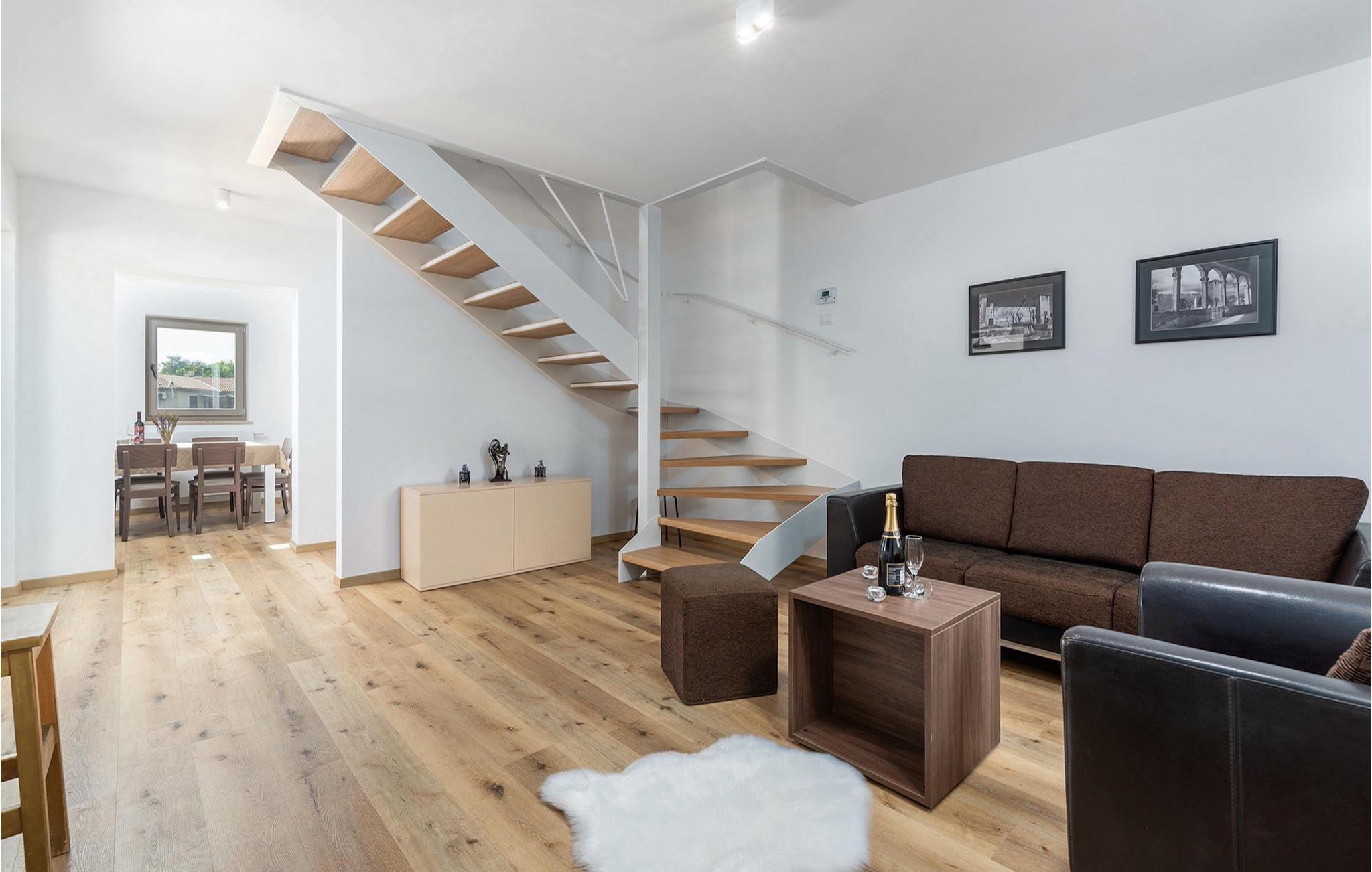 Das Erdgeschoss besteht aus einer voll ausgestatteten offenen Küche, einem Wohnzimmer, einem Arbeits-/Kinderzimmer, einem Schlafzimmer mit Doppelbett, einem Badezimmer und einer Toilette. Im ersten Stock gibt es ein Hauptschlafzimmer mit eigenem Bad und zwei komfortable Doppelzimmer und ein Badezimmer. Buchen Sie die Villa Branko Istrien und erleben Sie einen unvergesslichen Urlaub in Istrien! Villa Branko Istria ist keine Partyvilla und Jugendgruppen sind nicht erlaubt.Das kleine, malerische Dorf Pusti liegt nur einen Kilometer entfernt von dem alten mittelalterlichen Stadtdenkmal Svetvincenat, dem dominantesten Ort im südlichen Teil Zentralistriens. Svetvincenat wird Sie mit dem Schloss Morosini / Grimani, dem Renaissanceplatz, der Gastfreundschaft der Einheimischen, einer großen Auswahl an traditioneller istrischer Küche, Weinen und extra nativen Olivenölen beeindrucken.