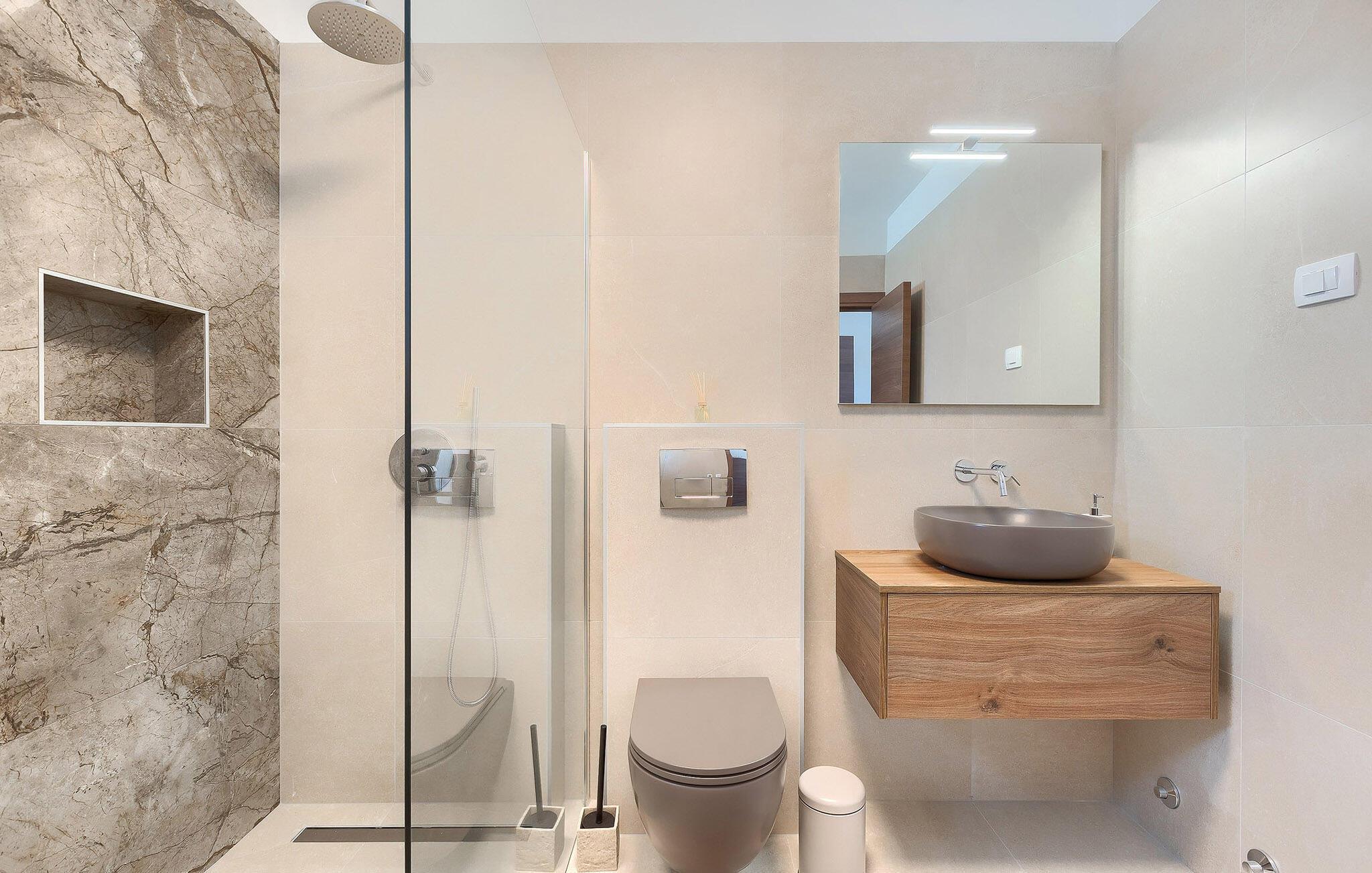Badezimmer (nr. 1) - WC. Warmes und kaltes Wasser. Dusche