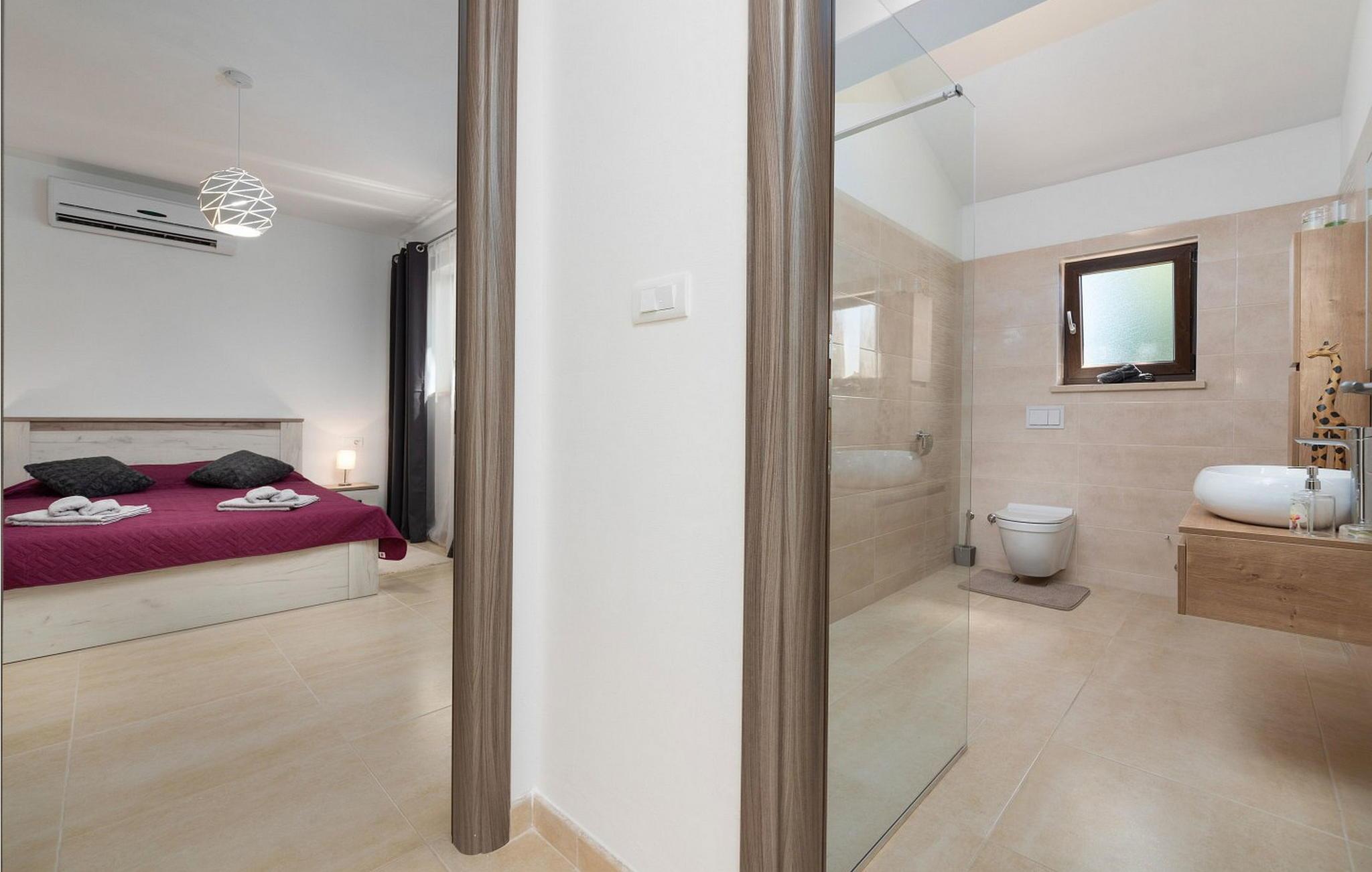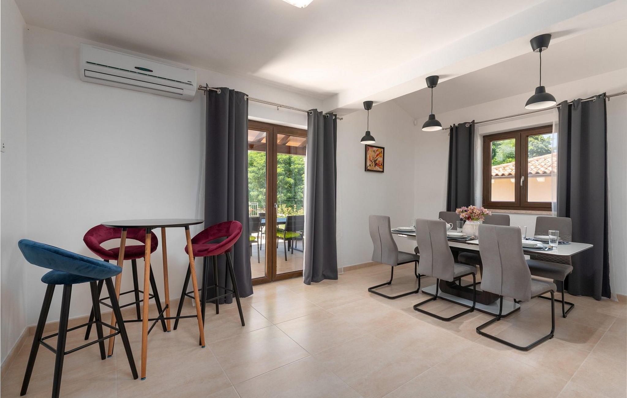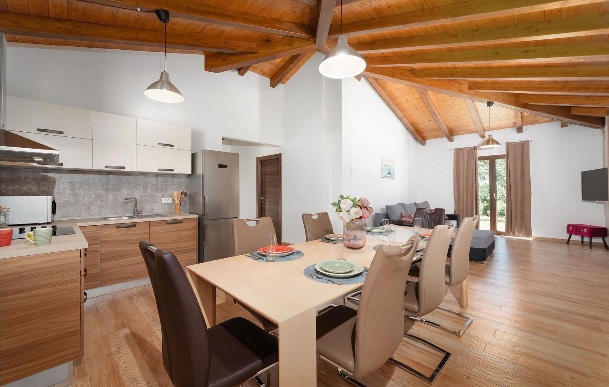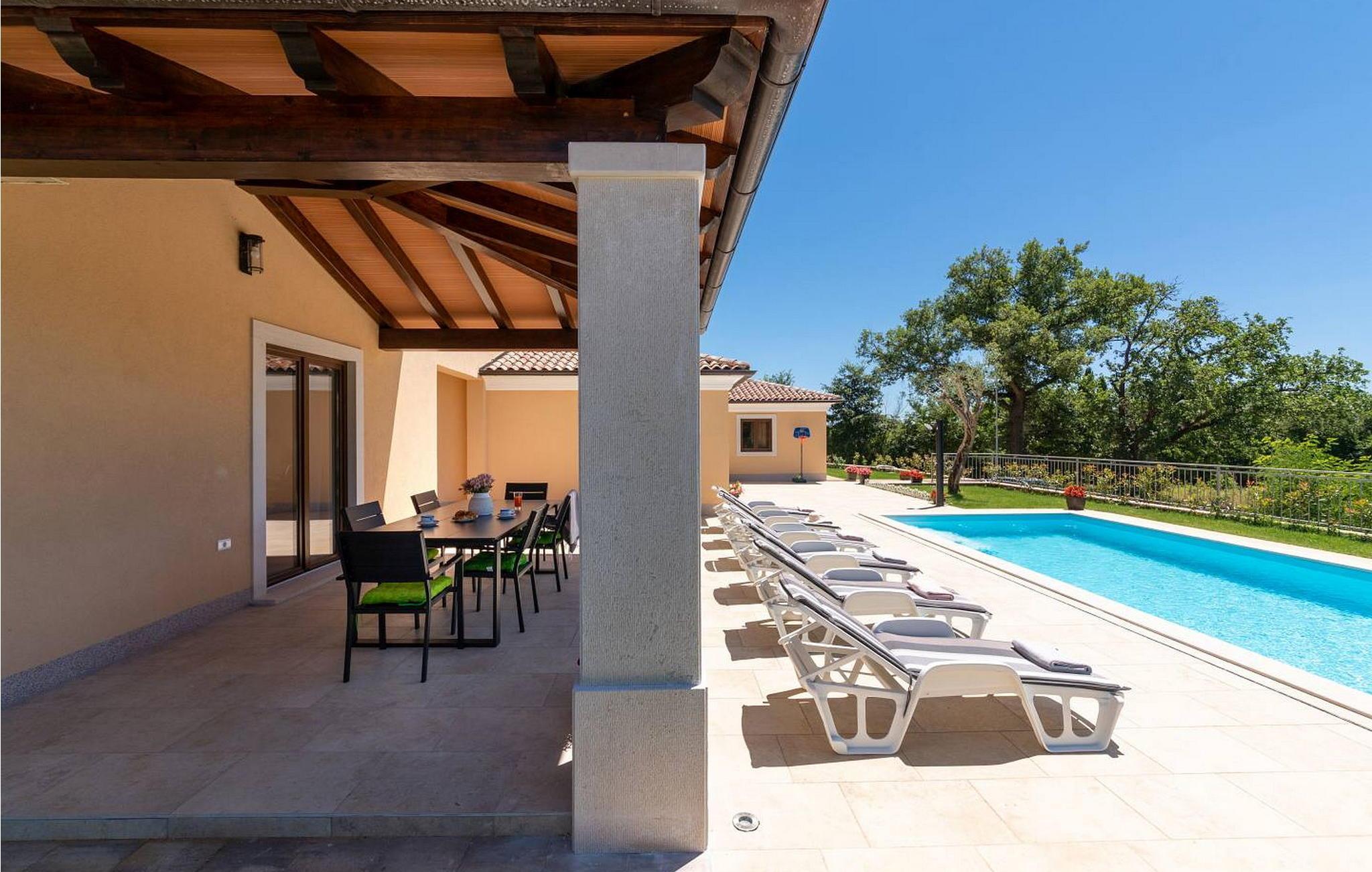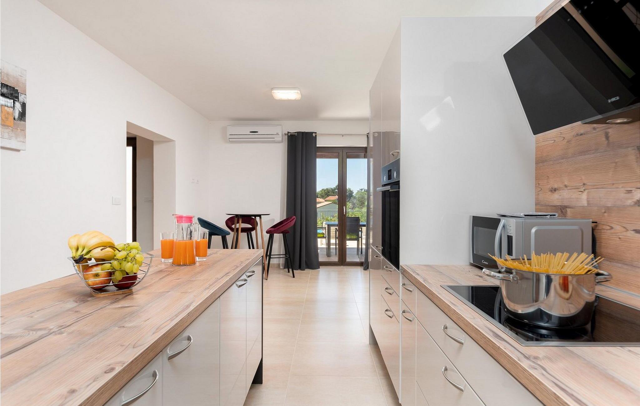 Willkommen in der Villa Re, einer neu erbauten Oase in Zentralistrien, nur eine kurze Fahrt von der bezaubernden Stadt Rovinj entfernt. Diese Villa liegt auf einem geräumigen, umzäunten Grundstück von 800 m² und verfügt über einen gepflegten Rasen, einen glitzernden Pool für erfrischende Bäder und eine überdachte Terrasse, auf der Sie Ihre Mahlzeiten am Esstisch genießen können. Die Sommerküche eignet sich perfekt zum Zubereiten köstlicher Festmahle und es stehen Ihnen zwei Parkplätze zur Verfügung. Im charmanten Dorf Svetvincenat finden Sie Cafés, eine Pizzeria und einen Supermarkt für Ihre täglichen Bedürfnisse, während der nächste Strand nur 17 km entfernt ist. Rovinj mit seiner malerischen Altstadt und der atemberaubenden Aussicht auf die Küste ist während Ihres Aufenthalts ein Muss. Die Villa Re ist der ideale Rückzugsort für einen unvergesslichen und erholsamen Urlaub.