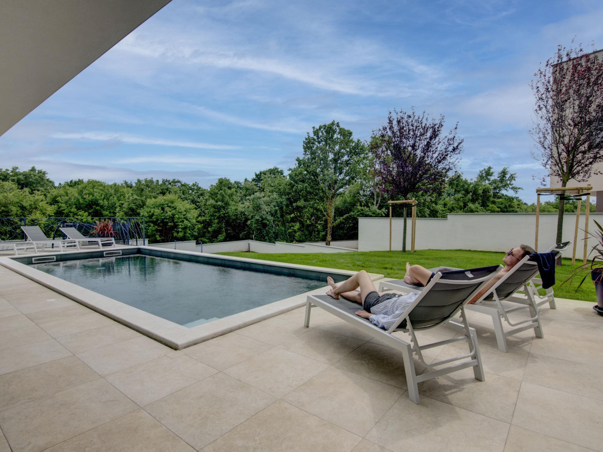 Štokovci 6 km von Savicenta: Schöne Villa "Lina", auf 2 Stockwerken. Sonnige Lage, 18 km vom Meer. Zur Alleinbenutzung: Grundstück 600 m2 (eingezäunt), Garten mit Blumen, Schwimmbad eckig (9 x 4 m, 140 cm tief, saisonale Verfügbarkeit: 01.Mar. - 15.Nov.) mit Innentreppe. Sprudelbad, Tischtennis, Badminton, Terrasse (20 m2), Gartenmöbel, Grill, Poolpflege durch den Besitzer/Gärtner. Im Hause: Internetzugang, Billard, Trampolin, Klimaanlage, Waschmaschine, Wäschetrockner. Parkplatz (für 3 Autos). Einkaufsgeschäft 6 km, Restaurant 6 km, Bushaltestelle 6 km, Kieselstrand 18 km, Felsstrand 18 km.