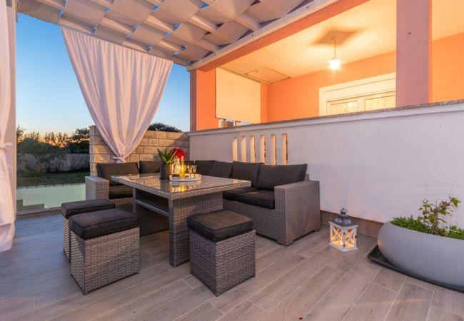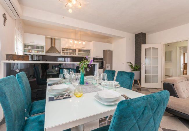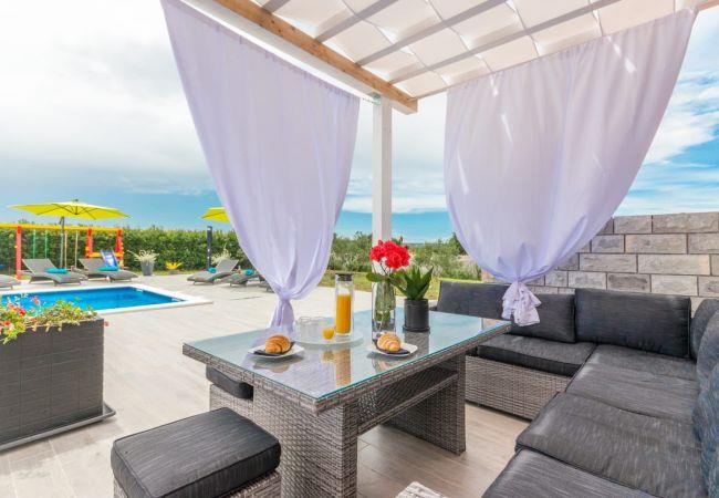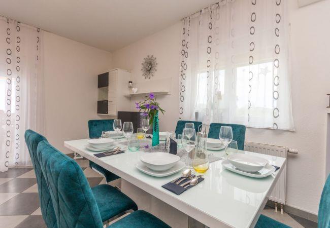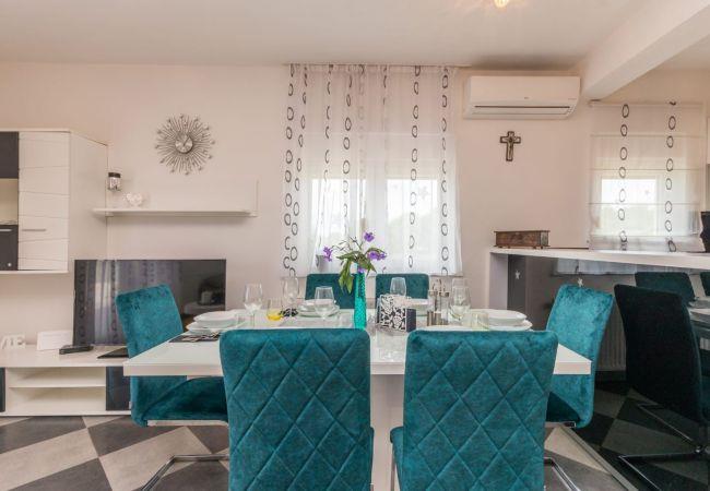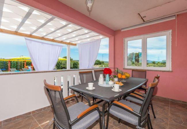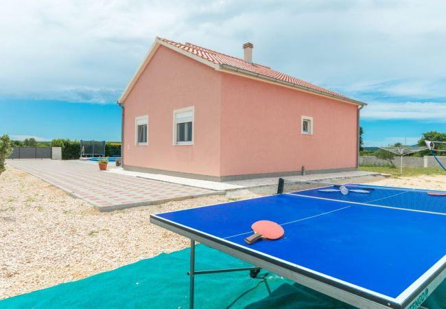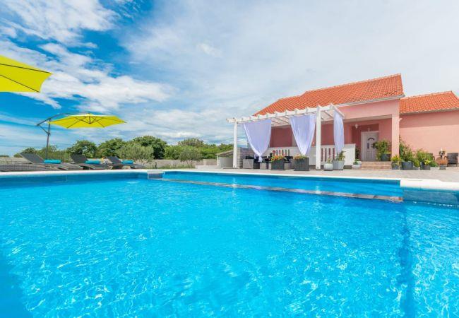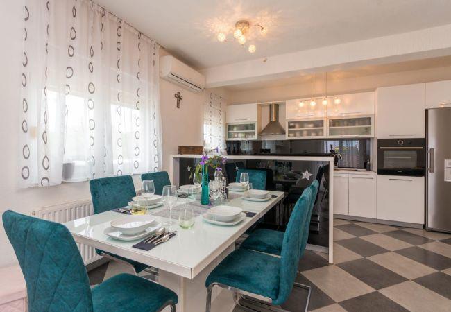 Villa Maris, gelegen im malerischen Dorf Tinj in der Nähe von Benkovac, ist perfekt für einen Familienurlaub oder einen Ausflug mit Freunden. Dieses wunderschöne Ferienhaus kann bis zu 8 Gäste beherbergen und bietet Komfort und Funktionalität in jeder Ecke.