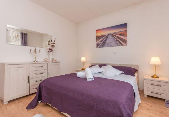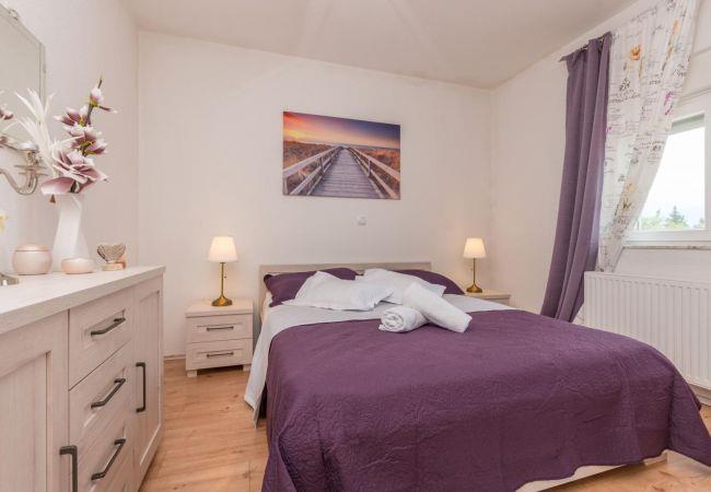 Die Villa verfügt über drei Schlafzimmer: Zwei Räume haben Doppelbetten mit einer Größe von 160x200 cm, während das dritte Zimmer ein Doppelbett mit einer Größe von 140x200 cm hat. Ein zusätzliches Bett befindet sich im Wohnzimmer, wo das Sofa ausgezogen und in ein komfortables Bett verwandelt werden kann. Die Villa verfügt über ein Badezimmer, das mit einer Dusche ausgestattet ist.