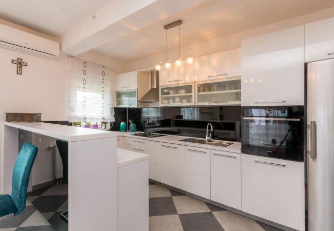 Nur 10 km von der Villa entfernt liegt die Stadt Biograd na Moru, wo Gäste schöne Strände, Küstenspaziergänge, zahlreiche Restaurants und Cafés sowie Wassersportarten wie Segeln, Tauchen und Kajakfahren genießen können.