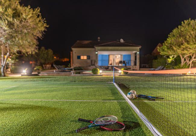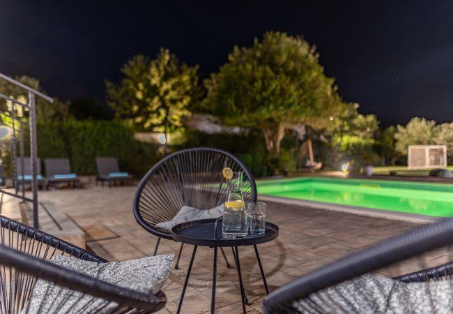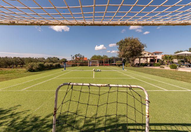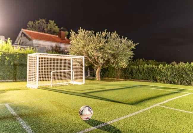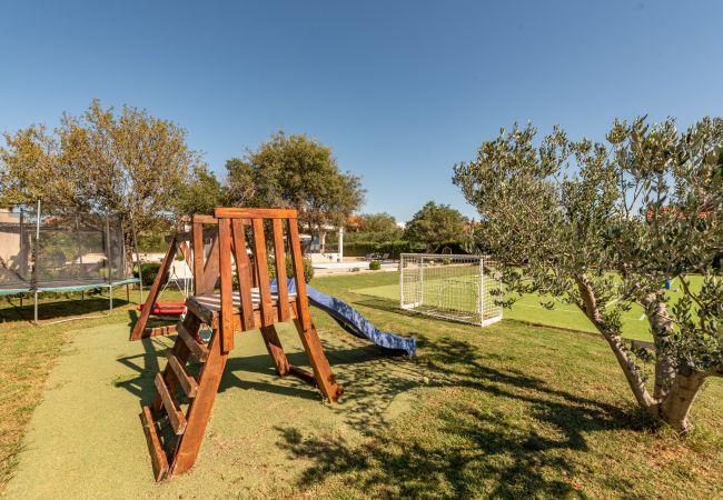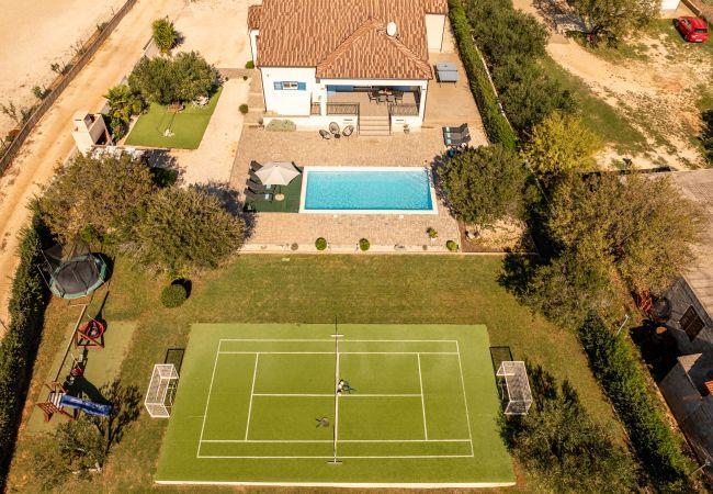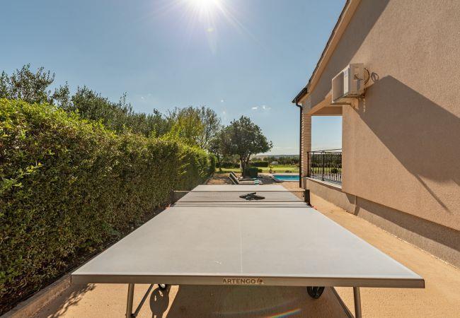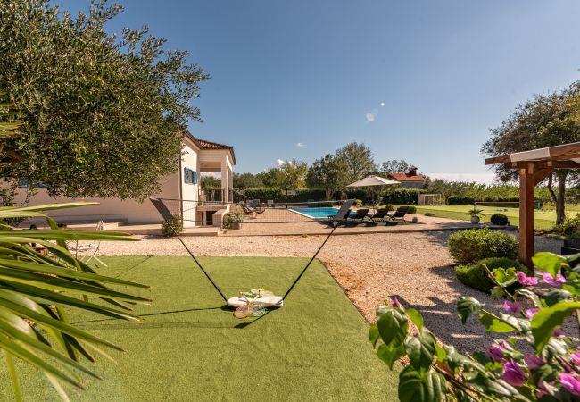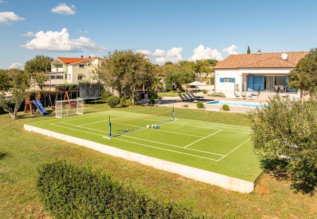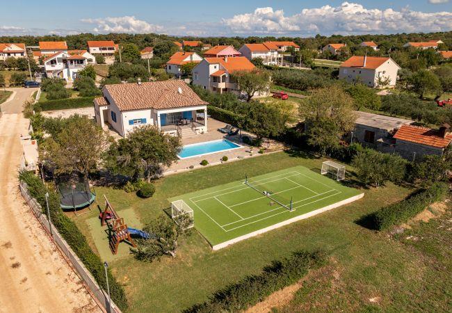 Die Villa besteht aus drei Schlafzimmern mit Doppelbetten, zwei Badezimmern, einer voll ausgestatteten Küche und einem geräumigen Wohnzimmer, das Platz für bis zu acht Gäste bietet. Sie ist ideal für Familien mit Kindern und bietet zahlreiche Annehmlichkeiten wie einen Spielplatz, einen Tischtennistisch und Billard. Der private Pool und die Terrasse mit Blick auf die Natur bieten Entspannung und Genuss an der frischen Luft. Die Umgebung ist perfekt für Spaziergänge und Erkundungstouren. Hier genießen Sie völlige Privatsphäre und Komfort, während sich die freundlichen Gastgeber um Ihren unvergesslichen Aufenthalt kümmern.
