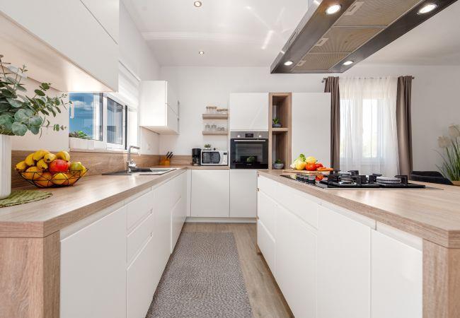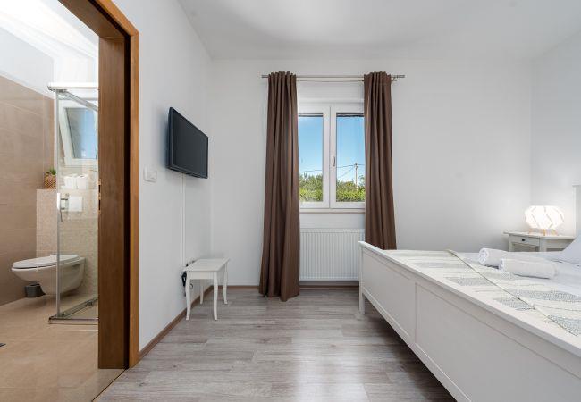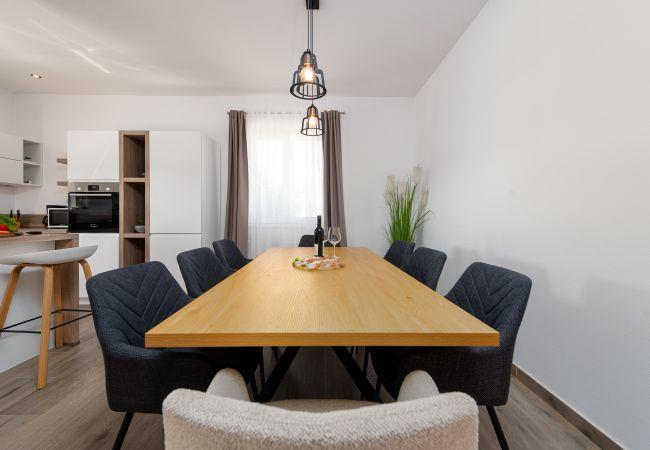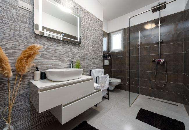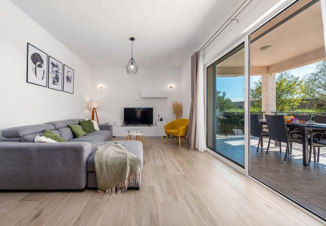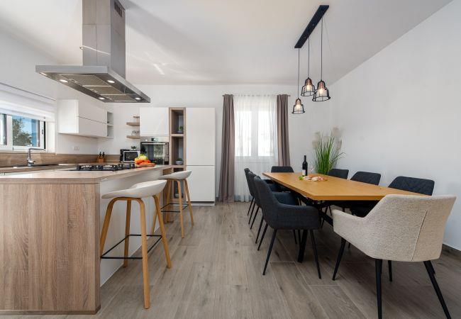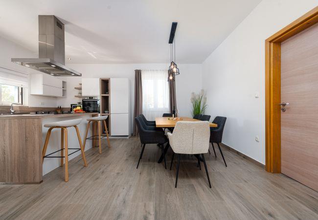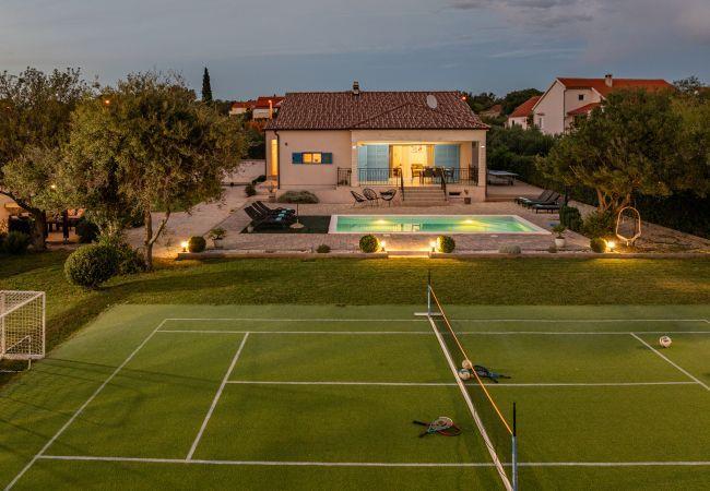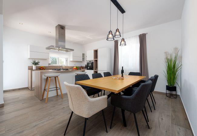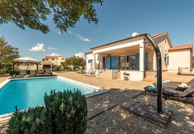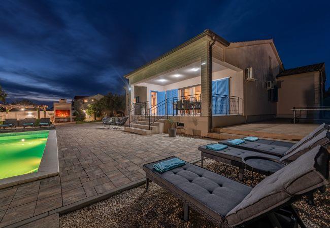 Casa Kamber befindet sich im ruhigen Ort Tinj, in der Nähe der beliebten Touristenziele Biograd na Moru und Zadar. Diese moderne Villa mit privatem Pool und großzügiger Terrasse ist die perfekte Wahl für Familien, die einen komfortablen und ruhigen Urlaub suchen. Sie ist ideal für Familien, Freundesgruppen oder Paare und bietet Platz für bis zu 8 Personen.