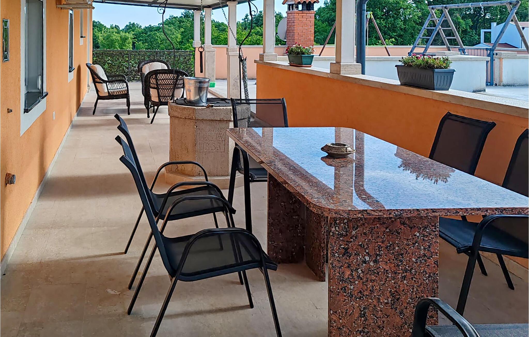 Im Außenbereich erwartet Sie ein herrlicher Pool, in dem Sie sich nach Lust und Laune unter dem blauen Himmel erfrischen können. Tanken Sie neue Energie auf der Sonnenliege und genießen Sie kroatische Spezialitäten unter dem Sonnenschirm.