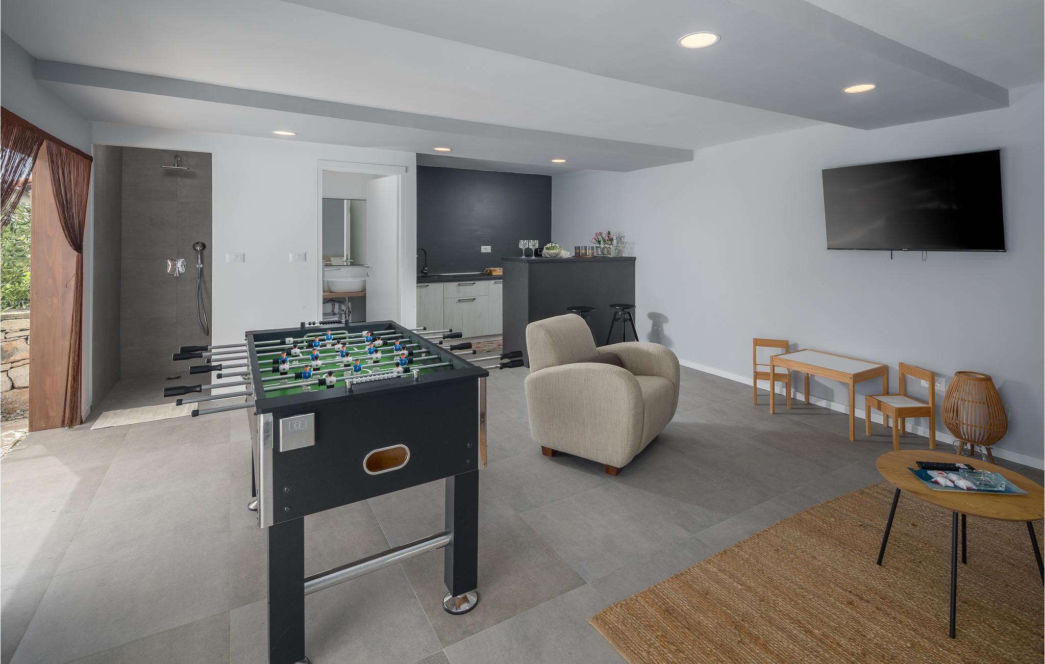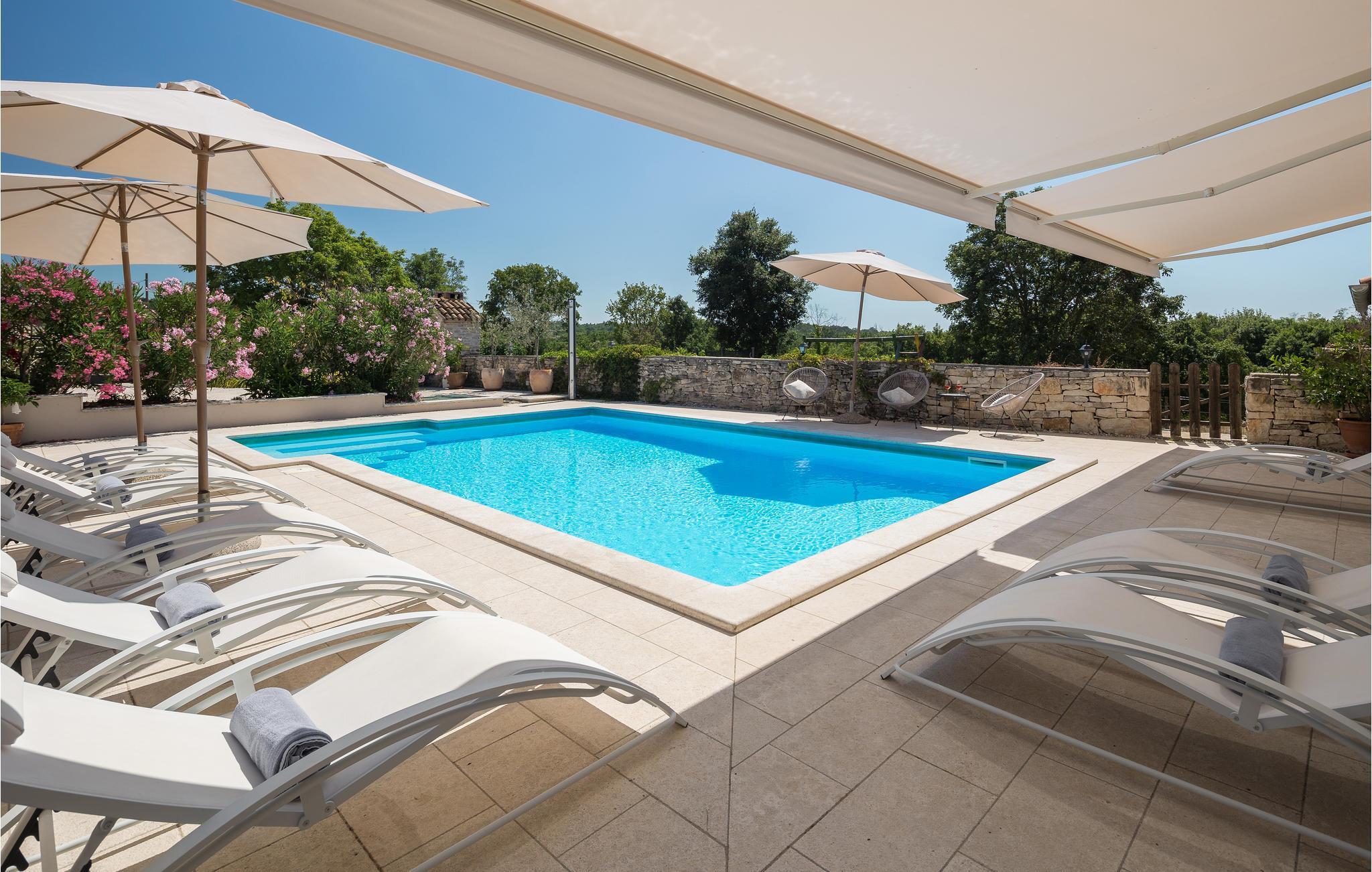 Dieses authentische Steinhaus liegt im Ort Jakovici, im Inland von Istrien. Es wurde vor vielen Jahren gebaut und unter Beibehaltung des traditionellen Looks renoviert. Das Innere ist der heutigen Lebensweise angepasst und bietet alles, was man für einen Urlaub benötigt. Im Erdgeschoss sind das Wohnzimmer, Küche, Esszimmer, Schlafzimmer und Bad, während sich im Obergeschoss drei Schlafzimmer und zwei Bäder befinden. Der große Hof besteht aus zwei Teilen. Der erste, vollständig geschlossene Abschnitt besitzt Pool, Sonnenterrasse und Grill. Danach kommt eine Rasenfläche zum Spielen von Badminton oder Volleyball.