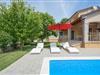 Dieses Ferienhaus mit Swimmingpool liegt im kleinen Dorf Kmacici, in der Nähe von Tinjan, einer Ortschaft im Landesinneren. Das Haus ist geschmackvoll und zeitgemäß eingerichtet. Im Erdgeschoss befinden sich ein großes Wohnzimmer, Küche und Esszimmer. Über den Flur erreichen Sie das Bad und ein Schlafzimmer. Zum 1.Stock führt eine Innentreppe, wo sich noch 2 Schlafzimmer und ein Bad befinden. Verbringen Sie Ihre Zeit auf dem geschlossenen Rasengrundstück mit Pool oder auf der überdachten Terrasse mit Grill. In ca. 15 Fahrminuten erreichen Sie die Strände im Ferienort Porec.