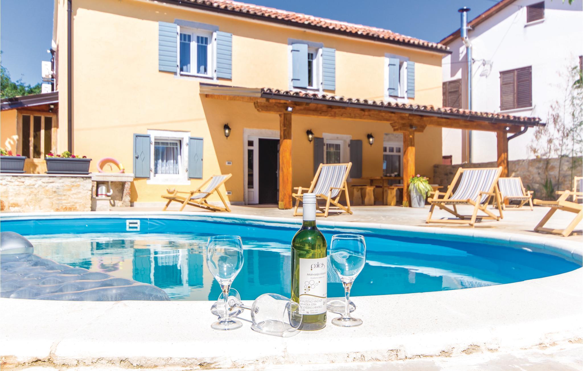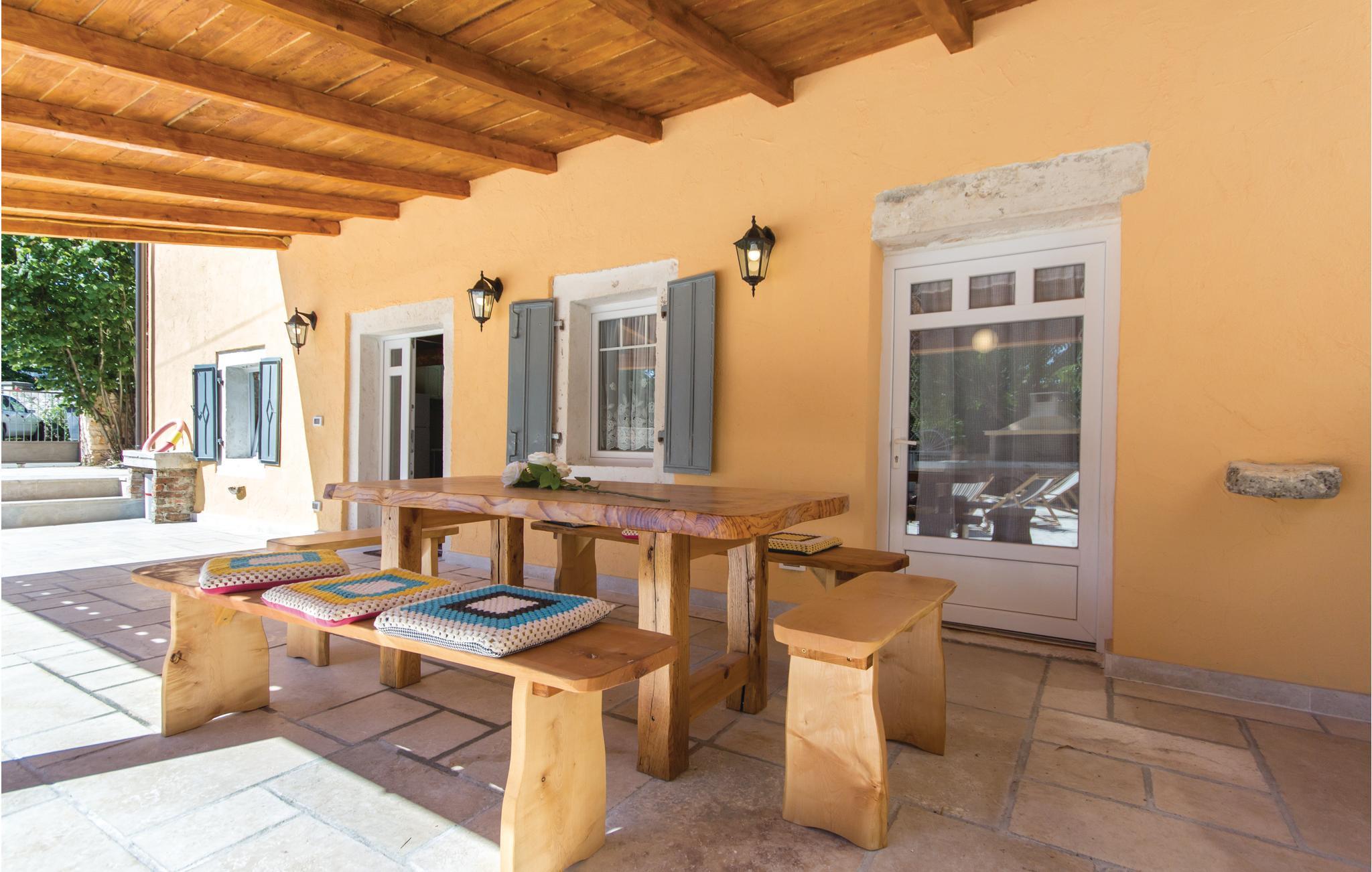 Dieses Ferienhaus mit Swimmingpool und Sonnenbereich befindet sich in Gregorci, einer kleinen Ortschaft im Innenland von Istrien. Die Innenausstattung ist im traditionellen Stil mit viel Holz und Stein. Im Erdgeschoss sind Küche, Ess-, Wohnbereich und Bad untergebracht. Iim Obergeschoß die drei Schlafzimmer und noch ein Bad. Außer den zwei Klimaanlagen im Haus gibt es in jedem Schlafzimmer einen Ventilator an der Decke. Bereiten Sie köstliche Fisch- und Fleischgerichte am gemauerten Grill zu und besuchen die Istrische „Konoba“ (Taverne), wo Sie traditionelle istrische Spezialitäten kosten können.