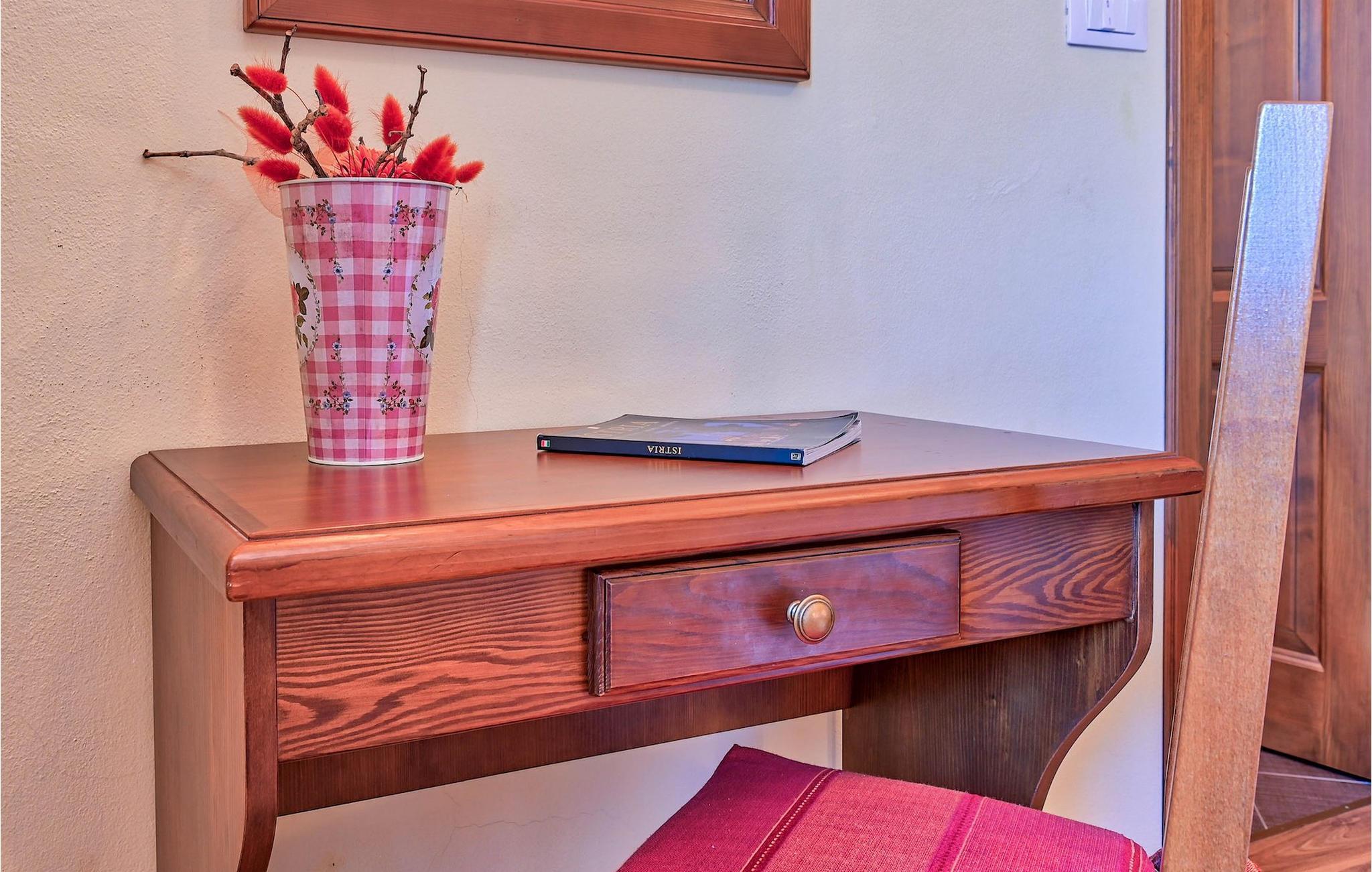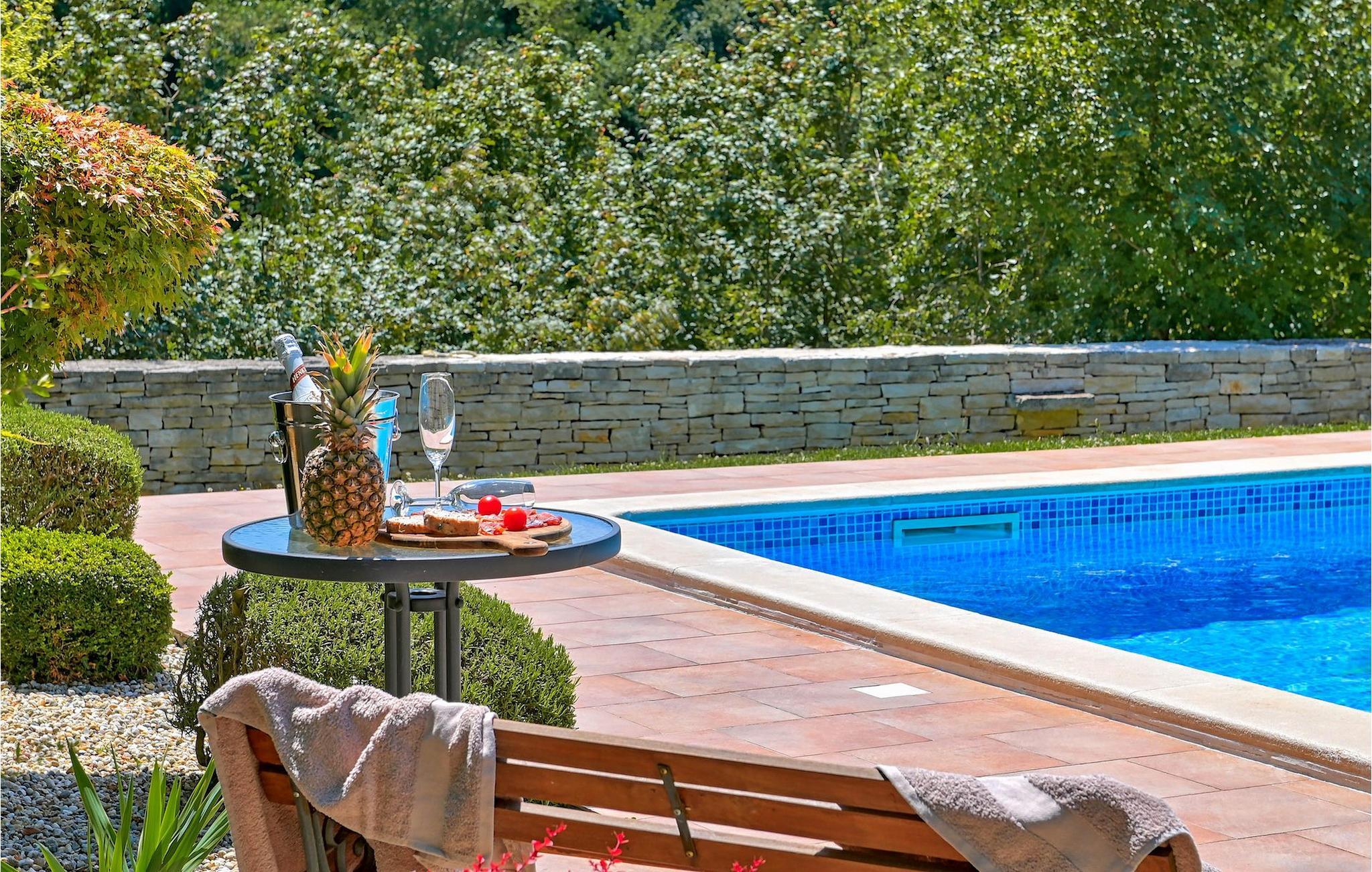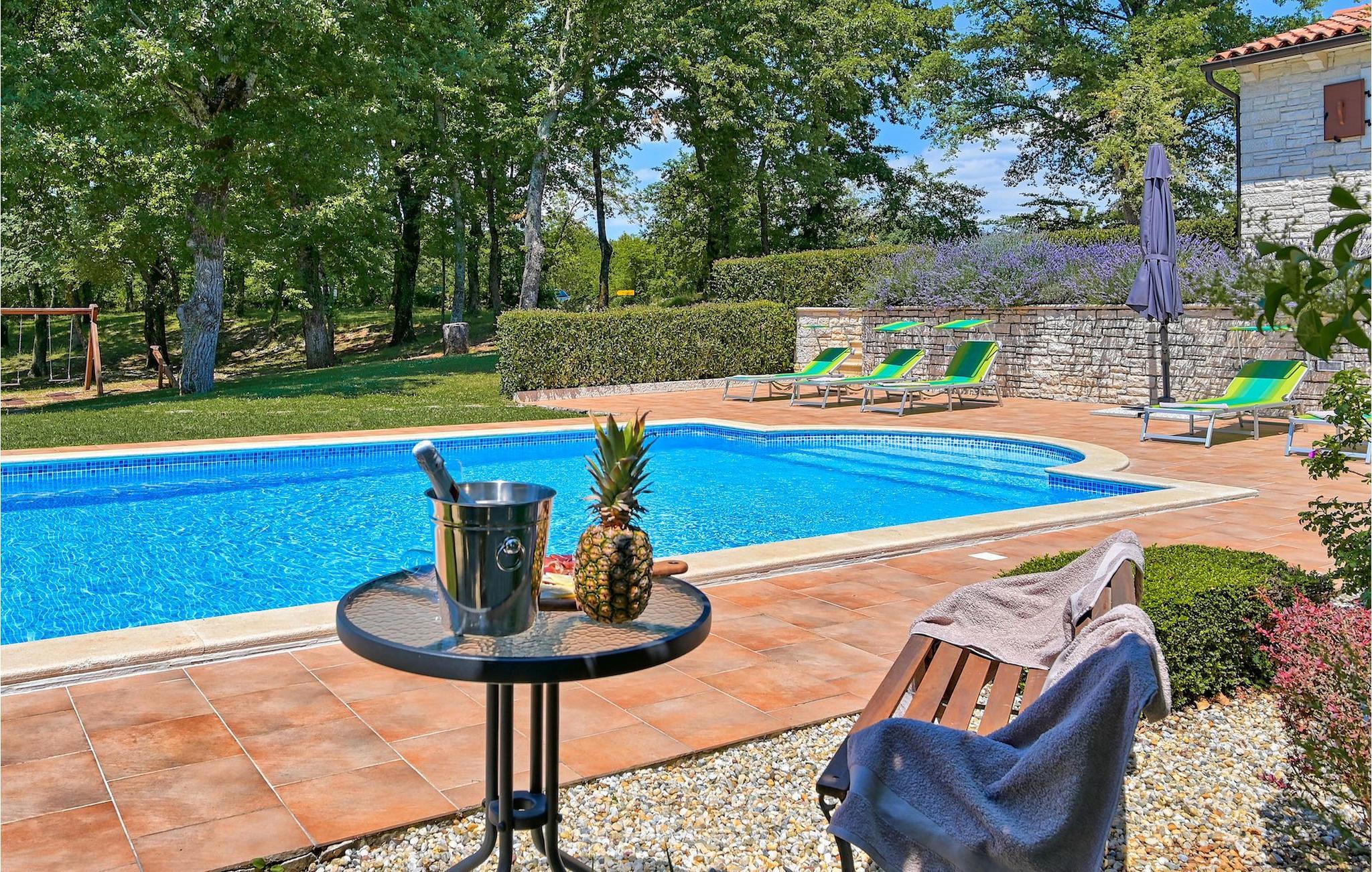 Wenn Sie Ihren Urlaub in einer charmanten Villa im Grünen verbringen möchten, ist Villa Kata die perfekte Wahl für Sie. Die Villa liegt in einem schönen Dorf Kringa in der Nähe von Porec und bietet Platz bis zu 8 Personen. Im Erdgeschoß dieser Villa finden Sie eine voll ausgestattete Küche, wovon aus sich ein großzügiger Wohnraum mit einem Kamin erstreckt. Daneben befindet sich auch ein Schlafzimmer mit eigenem gemütlichen Bad. Oben befinden sich die restlichen zwei Schlafzimmer mit Doppelbetten, wobei jedes Zimmer ein eigenes Bad hat. Der ganze Innenraum strahlt Wärme von Farbtönen aus, die sehr beruhigend und entspannend wirken. Aus einem Schlafzimmer können Sie eine schöne Terrasse betreten, wovon aus Sie einen atemberaubenden Blick auf die wunderschöne Umgebung genießen können. Jedoch werden Sie Ihre Zeit gerne draußen verbringen, denn diese Villa bietet eine 3900m2 große Grünfläche. Im Außenbereich erwartet Sie ein großzügiger Pool mit Sonnenliegen und einer Außendusche, sowie ein Grill und Gartenmöbel. Aber das ist noch nicht alles! Das wichtigste Merkmal dieser Villa ist ein Spielplatz, wo Ihre Kinder Spaß haben können, während Sie sich am Pool entspannen.