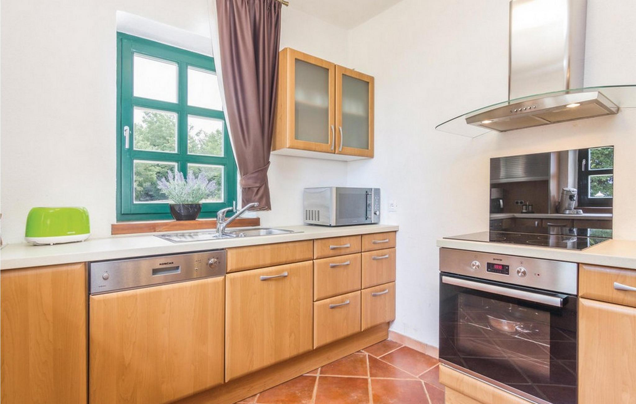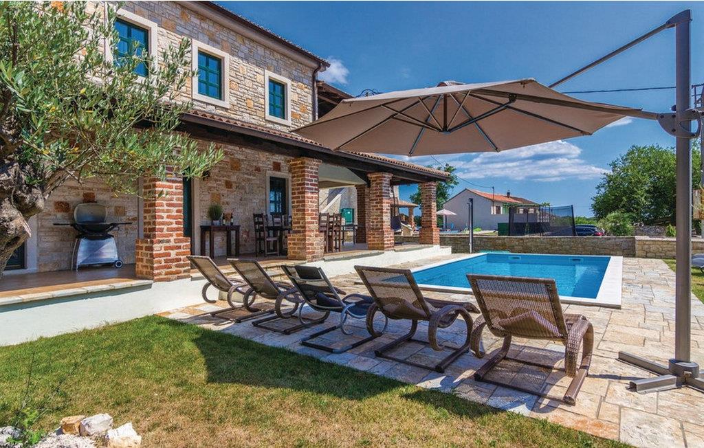 Die Villa Celine Istria befindet sich in der Stadt St. Lovrec im wunderschönen Istrien. Dieses schöne traditionelle istrische Steinhaus ist ideal für alle Natur- und Grünliebhaber sowie für diejenigen, die Ruhe und Entspannung suchen. Im Gegensatz zum Äußeren ist das Innere der Villa modern und minimalistisch. Die Villa verfügt über 4 Schlafzimmer mit Doppelbetten. Eines der Zimmer ist etwas weiter vom Rest getrennt und verfügt über ein eigenes Bad und einen Teil der Terrasse, was es perfekt für diejenigen macht, die absolute Privatsphäre genießen möchten. Außerdem gibt es 3 geräumige Badezimmer mit Badewanne, eines mit Duschkabine und ein separates WC. Außerdem finden Sie eine voll ausgestattete, charmante Küche mit Essbereich, ein gemütliches Wohnzimmer mit einem schönen Kamin und drei überdachte Terrassen, die sich ideal für eine Nachmittagspause eignen. Die Villa verfügt außerdem über eine Fußbodenheizung. Neben einem von Sonnenliegen (8) umgebenen Swimmingpool (32 m²), in dem Sie jeden Tag ein erfrischendes Bad nehmen können, gibt es im Innenhof auch eine Grillecke und Gartenmöbel, wo Sie in völliger Privatsphäre bei einem guten Glas Wein entspannen können und bereiten Sie frisches Essen für Ihre Familie und Freunde zu. Für sportliche Gäste stehen ein Gewichthebergerät sowie eine Schaukel für die Kleinen und ein Parkplatz für drei Autos zur Verfügung. Sv. Lovrec ist eine der am besten erhaltenen mittelalterlichen Städte Istriens, berühmt für ihre massiven Mauern und Türme aus der venezianischen Zeit sowie zahlreiche kulturelle und historische Denkmäler. Die wunderschönen Restaurants, Tavernen und Pizzerien in wunderschöner Umgebung versprechen Ihnen Momente unvergesslicher kulinarischer Genüsse. Neben dem unvergesslichen Geschmack der traditionellen istrischen Küche bietet Ihnen St. Lovrec verschiedene Unterhaltungs- und Erholungsmöglichkeiten, wie Radwege, Wandermöglichkeiten, Reiten, Angeln im Süßwasser, Seilrutschen über der berühmten Paziner Höhle und verschiedene Wellness-, Spa- und Spa-Angebote Fitnesszentren. Gönnen Sie sich einen perfekten Urlaub in Sv. Lovrec und Villa Celine. *Hausmeister und Schlüsselübergabe vor Ort. Haustiere sind in dieser Unterkunft nach Ermessen des Eigentümers oder gegen eine Gebühr gestattet.
