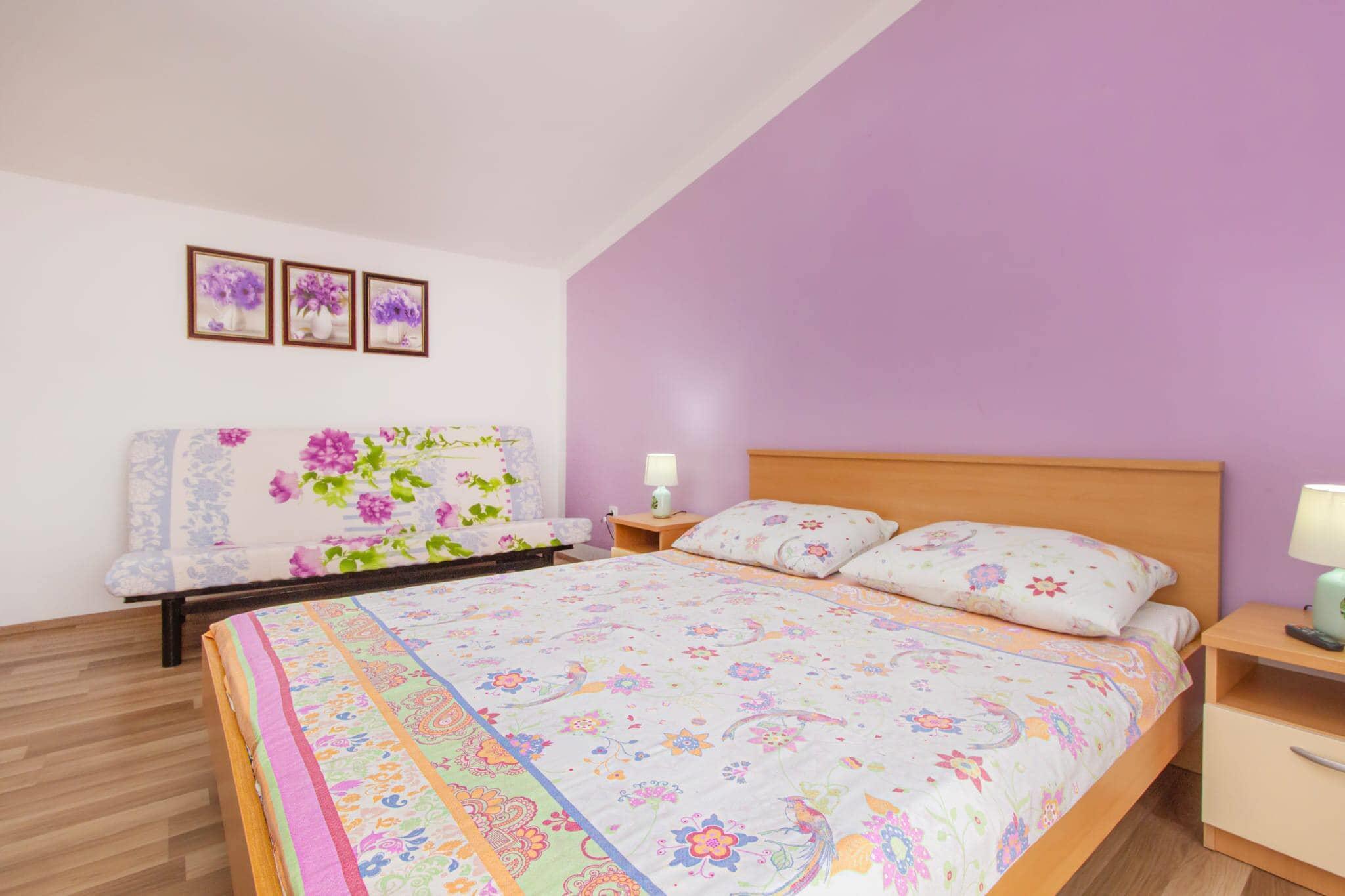 Dieses einladende Apartment bietet einen praktischen und komfortablen Rückzugsort für Familien oder kleine Gruppen und bietet ausreichend Platz für bis zu sechs Gäste. Die Schlafmöglichkeiten umfassen ein Schlafzimmer mit einem Queensize-Bett und einem Zustellbett sowie ein weiteres mit zwei Einzelbetten und einem Zustellbett. Gästen steht ein privater Balkon und ein gemeinschaftlich genutzter Garten zur Verfügung. Ein Haustier ist gegen eine Gebühr pro Nacht erlaubt. Ein Flachbild-Sat-TV, Klimaanlage und ein privater Parkplatz sind inklusive und machen dieses Apartment zu einer idealen Wahl für Sommeraufenthalte. Das Apartment liegt günstig in Tribunj, nur 200 Meter von der Adria und 450 Meter vom nächsten Sandstrand entfernt. Ein Supermarkt ist nur 210 Meter entfernt, und beliebte Restaurants wie die Konoba Bepo sind bequem zu Fuß erreichbar. Das Stadtzentrum von Tribunj ist 650 Meter entfernt und bietet eine Mischung aus Charme und Komfort. Für Natur- und Entdeckungsliebhaber ist der Nationalpark Krka 27 km, der Vrana-See 37 km und der Flughafen Zadar etwa 69 km entfernt. Zur weiteren Ausstattung gehört eine voll ausgestattete Küche mit Herd, Backofen, Mikrowelle und Kaffeemaschine – ideal für die Zubereitung Ihrer Mahlzeiten während Ihres Aufenthalts. Die Wohnung verfügt außerdem über wichtige Haushaltsgegenstände wie ein Bügelbrett, einen Erste-Hilfe-Kasten und Reinigungsmittel. In den Wintermonaten steht Ihnen eine Heizung zur Verfügung, die nach Verbrauch abgerechnet wird. Gäste können den gemeinschaftlichen Grillplatz im Garten nutzen, der das gemütliche und funktionale Ambiente dieser Wohnung unterstreicht.