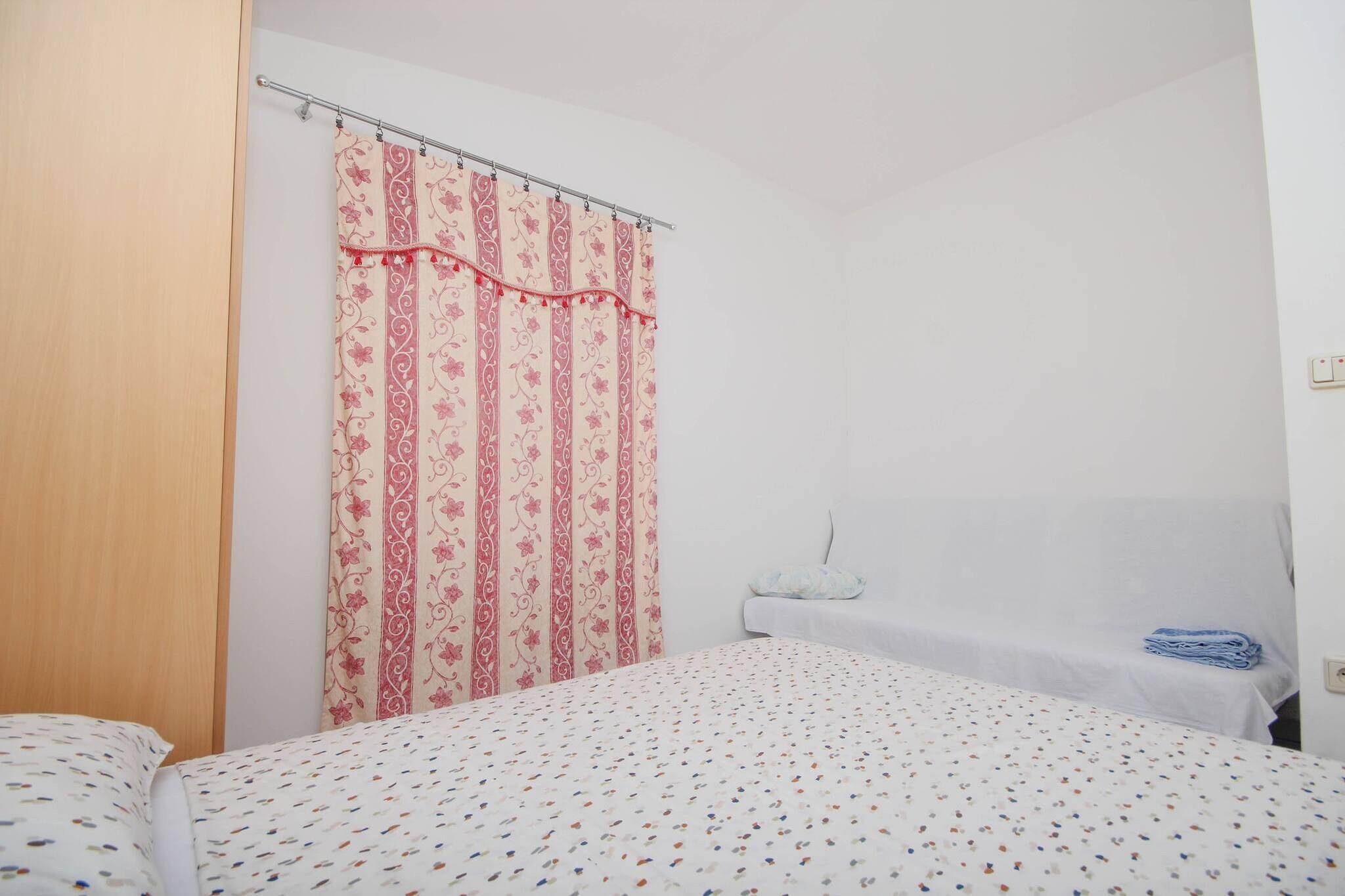 Diese charmante Ferienwohnung in Tribunj bietet auf 70 m² mit zwei Doppelzimmern Platz für bis zu vier Personen und ist somit ideal für Familien oder kleine Gruppen. Der Wohnbereich verfügt über ein gemütliches Sofa und einen Essbereich. Vom privaten Balkon oder der Terrasse genießen Sie den Blick auf den umliegenden Garten. Genießen Sie Mahlzeiten im Freien und Grillen mit Gartenmöbeln und gemeinschaftlich genutzten Garteneinrichtungen. Ein privater Parkplatz ist im Preis inbegriffen. Haustiere sind in der Wohnung nicht erlaubt, dafür bietet sie eine ruhige, rauchfreie Umgebung. Die Wohnung liegt günstig, nur 800 m vom Strand von Tribunj entfernt, und das Stadtzentrum ist fußläufig (900 m) erreichbar. In der Nähe finden Sie den Supermarkt Konzum (450 m) sowie verschiedene gastronomische Einrichtungen wie die Konoba Tic und die Sydney Caffe Bar, die alle in 5–10 Gehminuten erreichbar sind. Egal, ob Sie Sand- oder Felsstrände bevorzugen, beide Strandarten sind von der Wohnung aus erreichbar und sorgen für ein abwechslungsreiches Küstenerlebnis. Die Wohnung verfügt über eine voll ausgestattete Küche mit Kühlschrank, Gefrierschrank, Geschirrspüler, Backofen und allen notwendigen Küchenutensilien. Gäste können mit kostenlosem WLAN in Verbindung bleiben, sich vor Satellitenfernsehen entspannen und die Klimaanlage im gesamten Gebäude nutzen. Ein eigener Eingang sorgt für einen ruhigen und unabhängigen Aufenthalt. Reinigungsmittel werden bereitgestellt. Rauchen und Jugendgruppen sind nicht gestattet, um eine ruhige und familienfreundliche Umgebung zu gewährleisten.