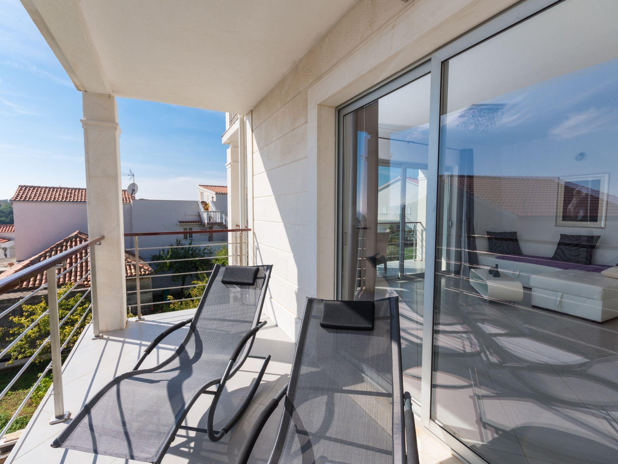Ferienwohnung bietet Platz für 5 Gäste. Die Betten sind in Schlafzimmern, die es 2 gibt, und in Wohnzimmer, innerhalb einer Gesamtfläche von 83m2, angeordnet. Die Gäste haben eine eigene Terrasse zur Verfügung, auf der sie in warmen Sommernächten genießen können. Das Apartment bietet Meerblick. In der Unterkunftseinheit besteht die Möglichkeit des Mitbringens von Haustieren gegen Aufpreis. IM PREIS INBEGRIFFEN: Kurtaxe, Endreinigung, Klimatisierung, Parkplatz, Internet, Bügeleisen, Bügelbrett, Föhn. UNVERBINDLICHE ZUSÄTZLICHE KOSTEN: Haustiere (12,00 € pro Nacht). Die Verfügbarkeit zusätzlicher Dienstleistungen in Ihrem reservierten Termin und die Preise derselben (falls nicht aufgeführt) müssen im Voraus überprüft werden. Zusätzliche Dienstleistungen die in der Zahlungsaufforderung nicht aufgeführt sind werden direkt beim Vermieter bezahlt, angenommen der Gast nutzt auch diese.