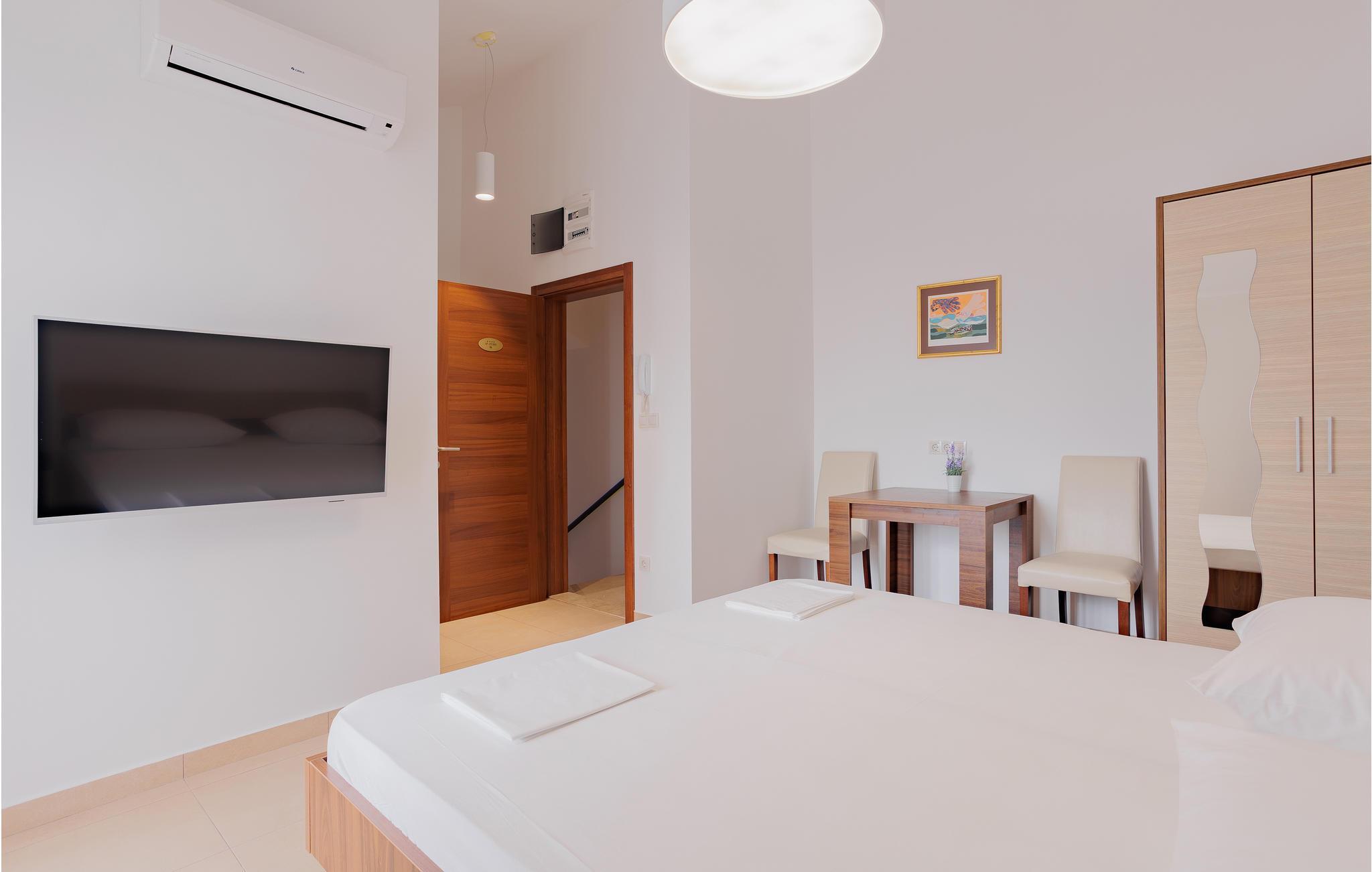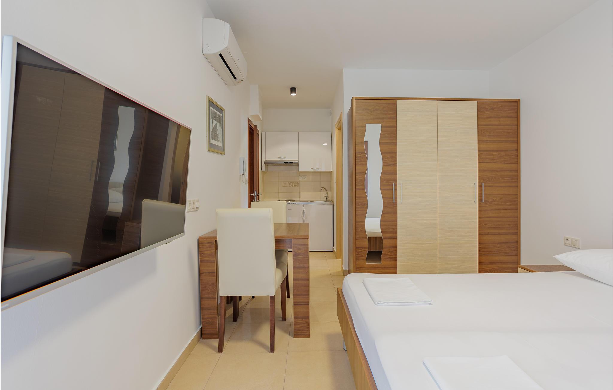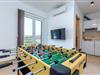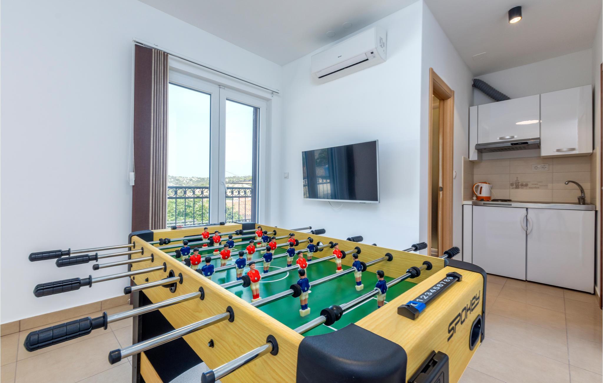 Hier können Sie ein wunderbares Familientreffen veranstalten. Kommen Sie mit den Verwandten oder vielen Freunden in dieses riesige Ferienhaus und erleben Sie einen wunderbaren Urlaub in Dalmatien. In dieser Unterkunft finden Sie viele, gut ausgestattete Zimmer mit mehreren Badezimmern und Küchen, sodass Sie sich nicht in die Quere kommen und gemütlich Ihre Tagesabläufe kombinieren können. Im Außenbereich gibt es ebenso viel Platz zum Sonnen oder um im Schatten die gemeinsamen Mahlzeiten einzunehmen. Für eine schnelle Erfrischung zwischendurch sorgt der Pool. Für die spielfreudigen Urlauber stehen einige Geräte zur Vergnügung bereit.