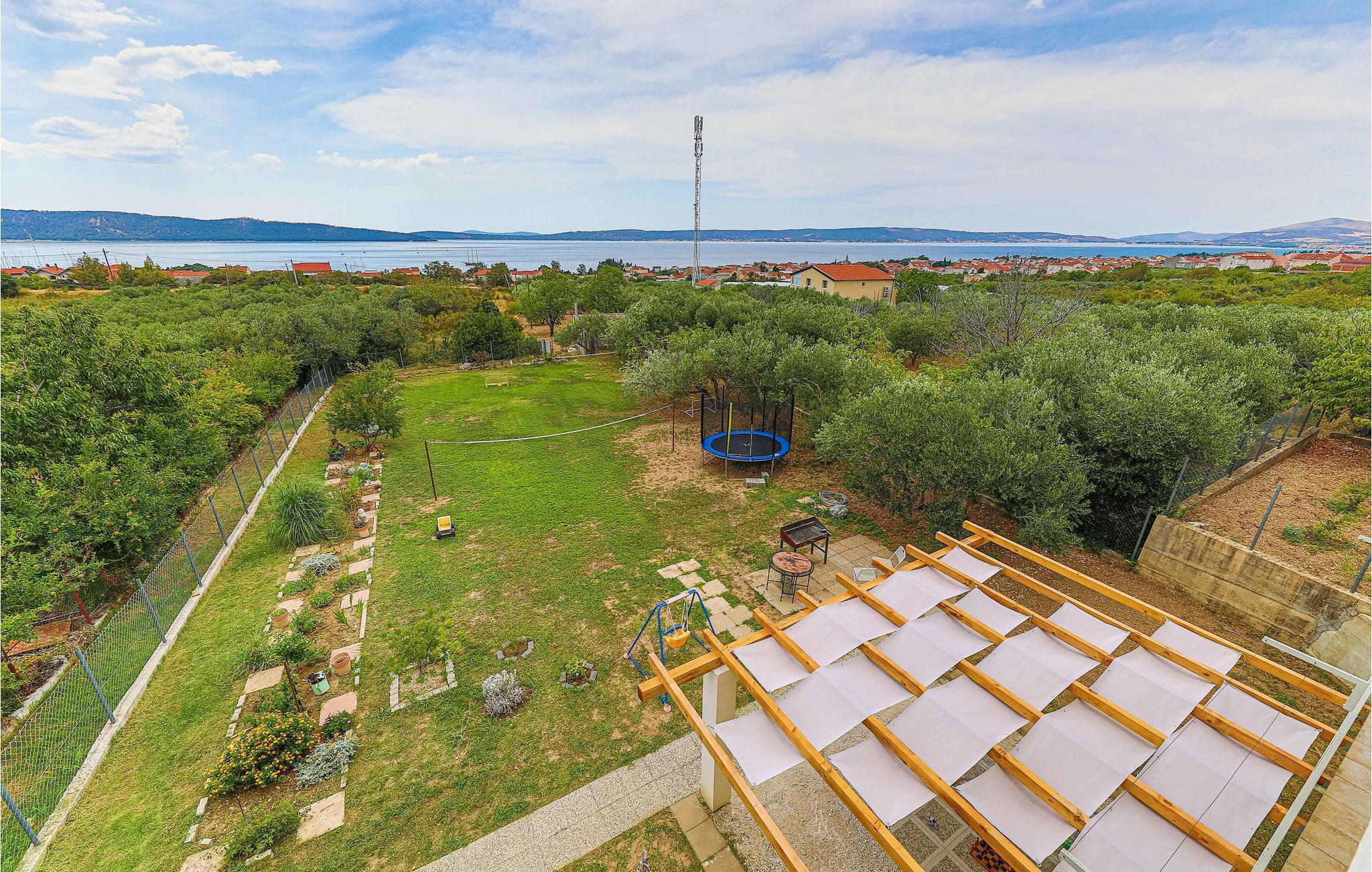 Ein gemütliches Ferienhaus mit großzügigem Grundstück erwartet Sie im Ort Kaštel Gomilica, bei Trogir. Die geschmackvoll eingerichteten Innenräume bestehen aus einer Wohnküche, zwei Schlafzimmern, einem Badezimmer, einer zusätzlichen Toilette sowie einer Terrasse, von der sich eine schöne Aussicht auf das Meer bietet. Auf dem großen Grundstück sind neben der Sitzgarnitur auch Kindespielgeräte. Durch die Nähe der Verkehrsstraße erreichen Sie bequem die nächsten Strände sowie die sehenswerte Altstadt von Trogir, die UNSECO zum Weltkulturerbe erklärt wurde.