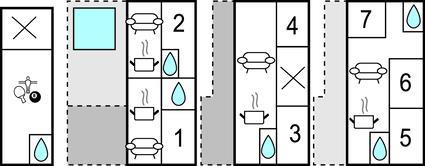 Badezimmer (nr. 6) - WC. Warmes und kaltes Wasser. Dusche
