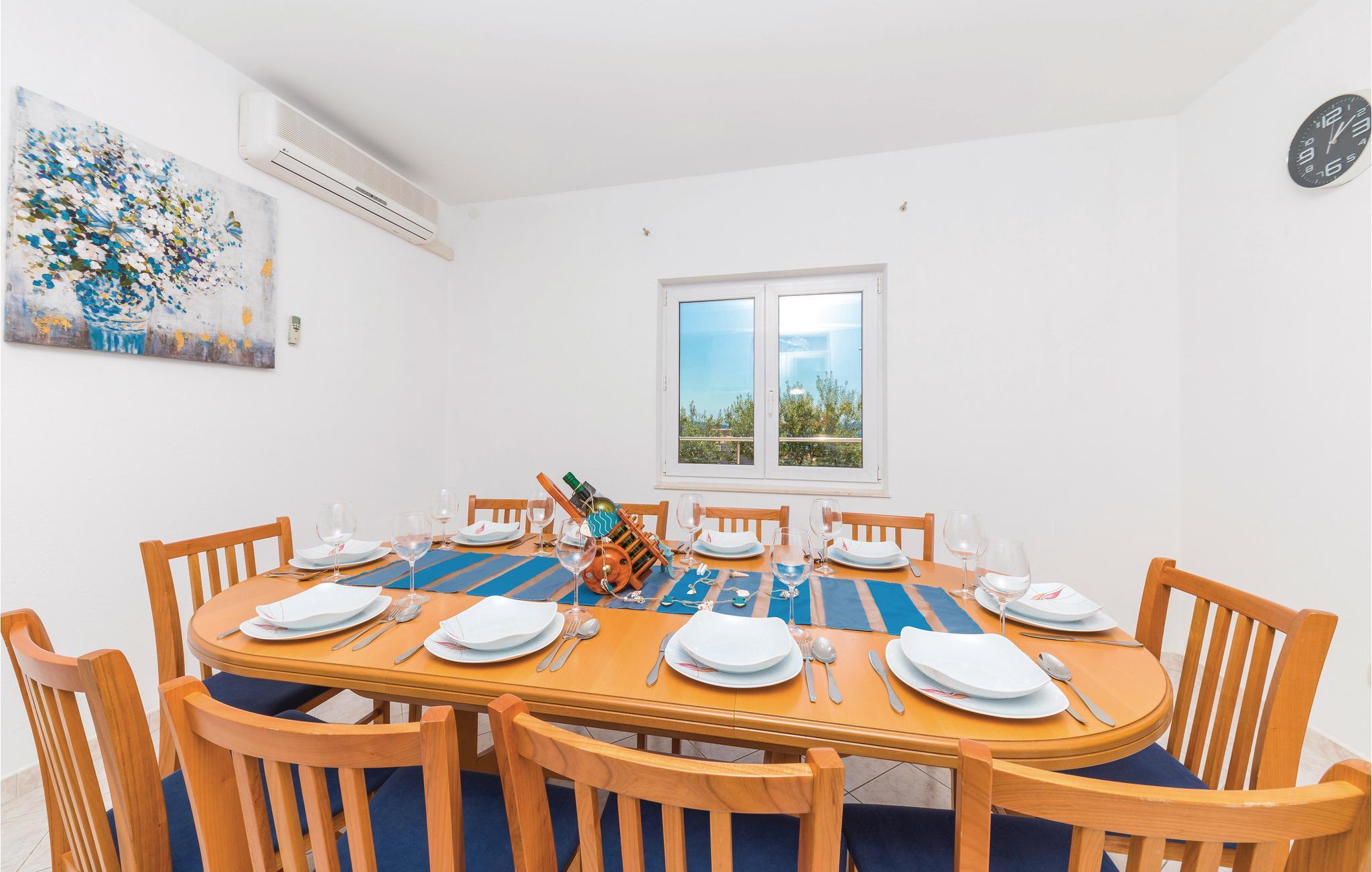 Dieses Ferienhaus mit Pool besteht aus vier Schlafzimmern, drei Badezimmern, Wohnzimmer, zwei Esszimmern und einer Küche. Die Wohneinheit im ersten Stock ist mit Außentreppen erreichbar. Das Grundstück ist umzäunt und der Pool mit Sonnenbereich liegt gleich in der Nähe des Fitness- und Unterhaltungsraums. Der Pool verfügt über eine Gegenstromanlage und unweit davon ist die komplett ausgestattete Küche, so dass man einfach zu gekühlten Getränken kommen kann. Die Kinder können sich mit Trampolin, Tischtennis, Schaukel und mehr beschäftigen.