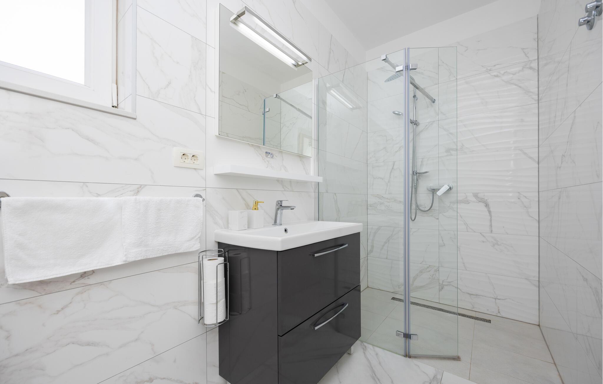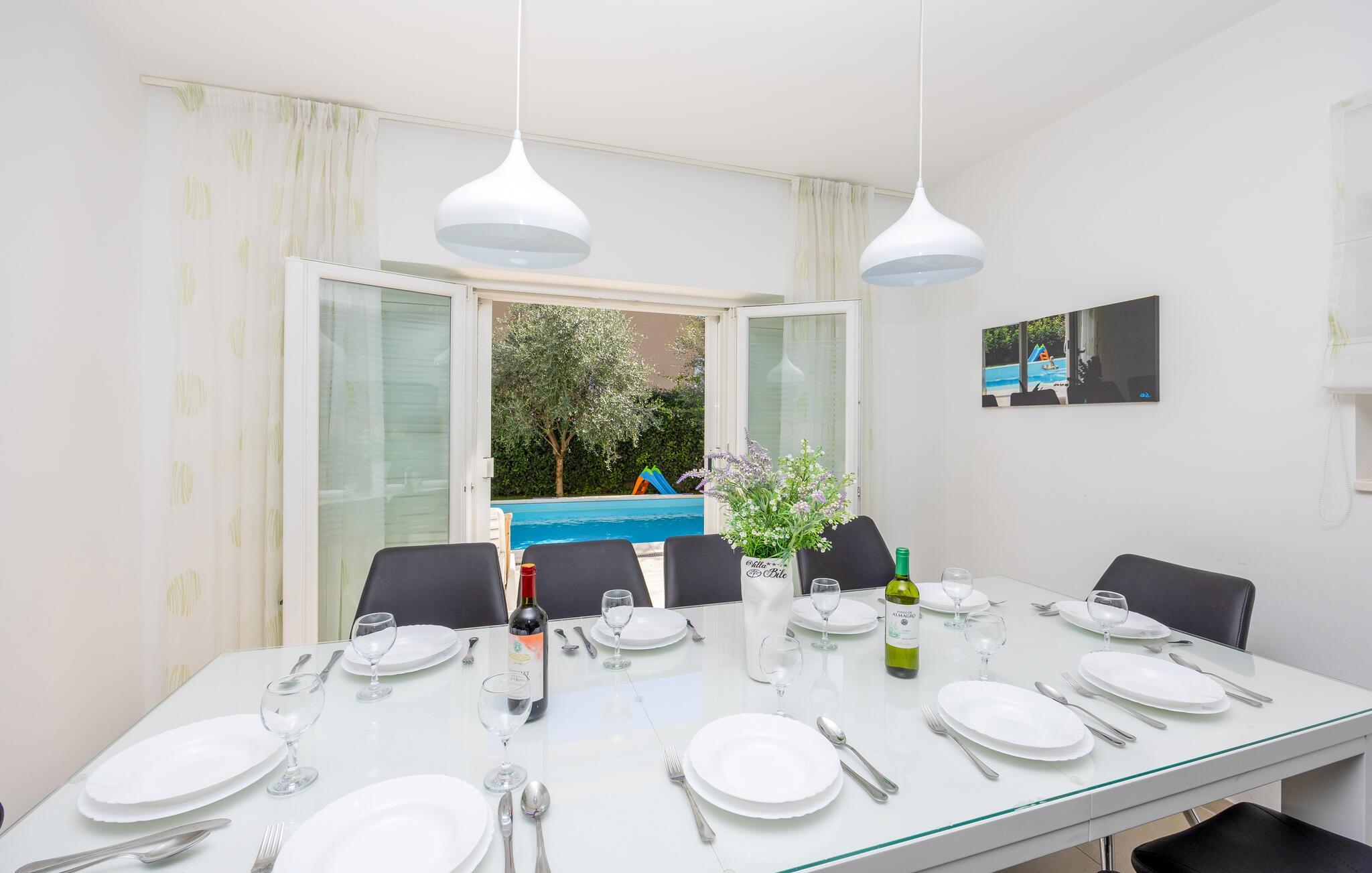 Das modern gestaltete Ferienhaus mit Pool erstreckt sich über drei Etagen. Neben der großzügigen Liegewiese gibt es einen Außengrill, wo Sie leckeres Essen zubereiten können, während Ihre Kinder das Spiel genießen. Im Erdgeschoss sind Fitness und Sauna. Das Haus liegt in einer grünen Wohngegend und fußlänglicher Entfernung von der Küste. Der schöne Kiesstrand ist auch nur 190 m vom Haus entfernt. Die historische Stadt Trogir, ein UNESCO-Weltkulturerbe, ist 8 km entfernt und bietet viel Unterhaltung für alle Generationen.