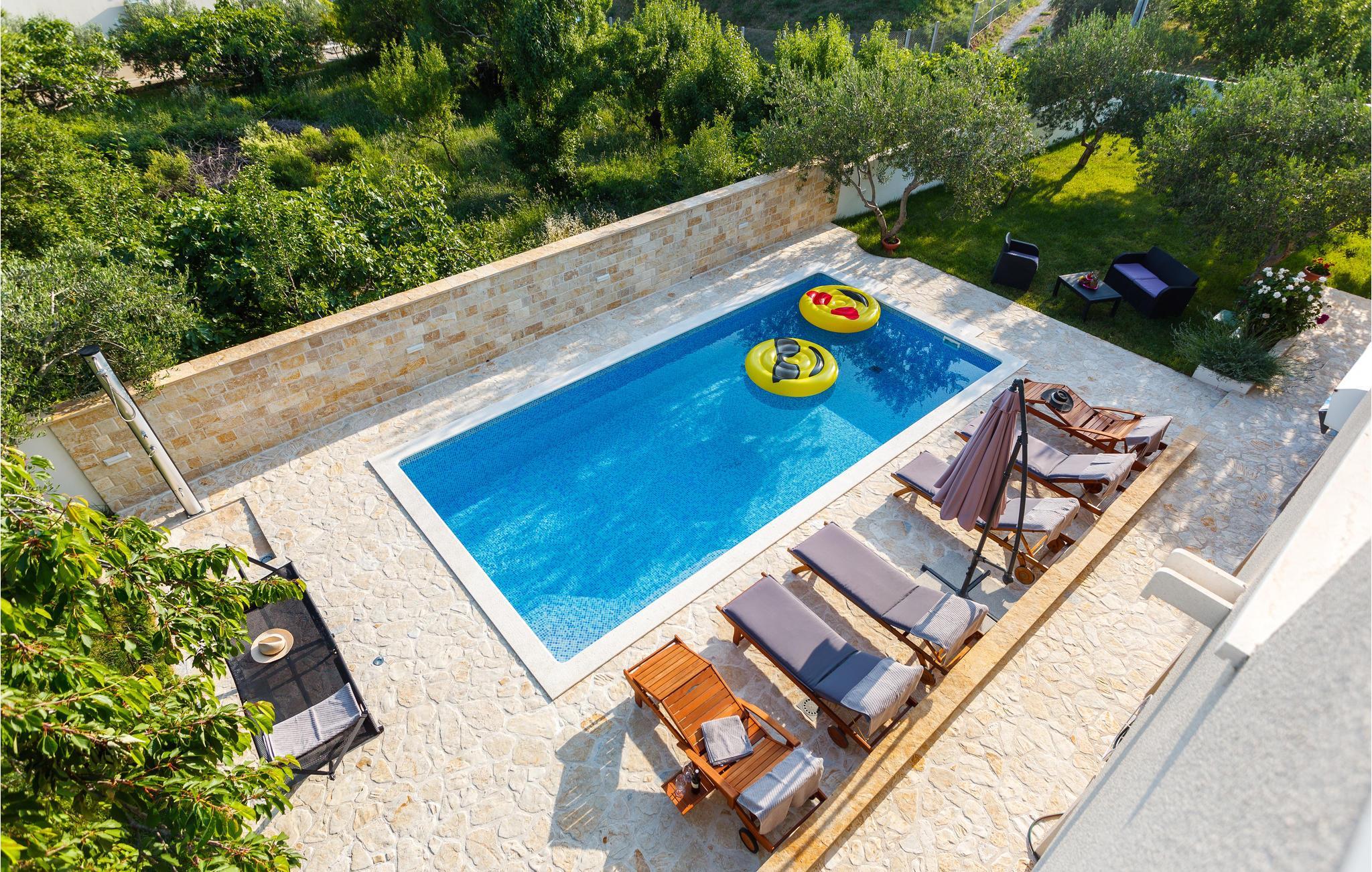 Das Haus liegt in einer ruhigen Umgebung weniger als 10 Autominuten von den nächsten Stränden und der historischen Stadt Split entfernt, die mit Sehenswürdigkeiten wie dem Palast des römischen Kaisers Diokletian viele Möglichkeiten für einen aktiven Urlaub und ein reiches Kultur- und Nachtleben bietet. Die kleine historische Stadt Trogir liegt ebenfalls in der Nähe.