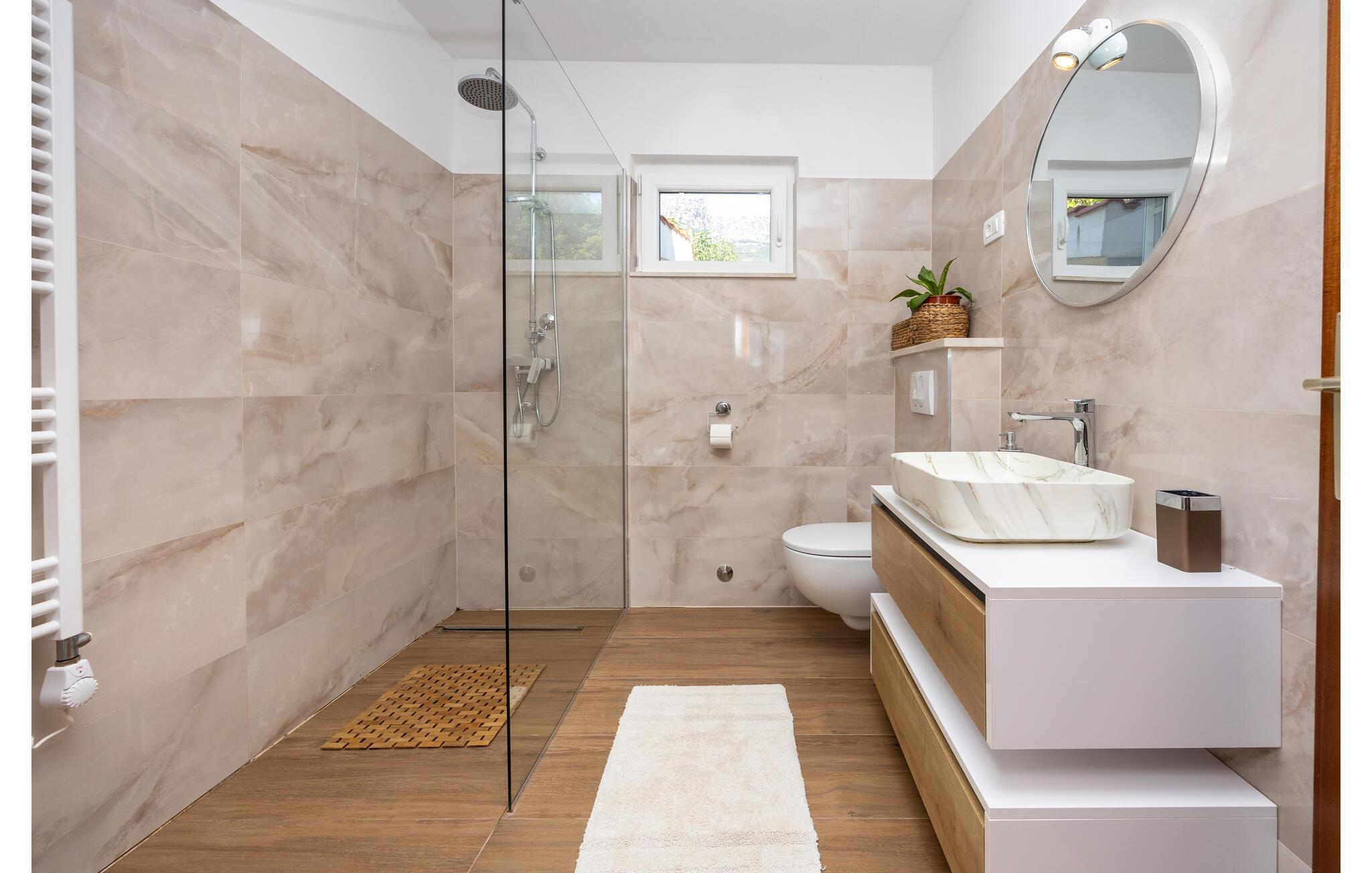 Dieses schöne Ferienhaus befindet sich auf einem großen Grundstück und besteht aus zwei Wohnungen. Es eignet sich für Familien oder Paare, die ihren Urlaub gemeinsam in Kroatien verbringen möchten. Das Haus ist ideal gegelegen, um die vielen Sehenswürdigkeiten wie das Zentrum der antiken Stadt Solin mit historischen Stätten aus der Römerzeit in ca. 1,8 km Entfernung zu besichtigen. Zum Baden und Schwimmen lockt der etwa 1 km entfernte Kieselstrand, an dem Cafés und Strandbars für Unterhaltung sorgen. Besuchen Sie unbedingt die Stadt Split, mit zahlreichen Kultur- und Unterhaltungsmöglichkeiten für Jung und Alt. Besonders der Palast des Diokletian wird Ihnen in Erinnerung bleiben.