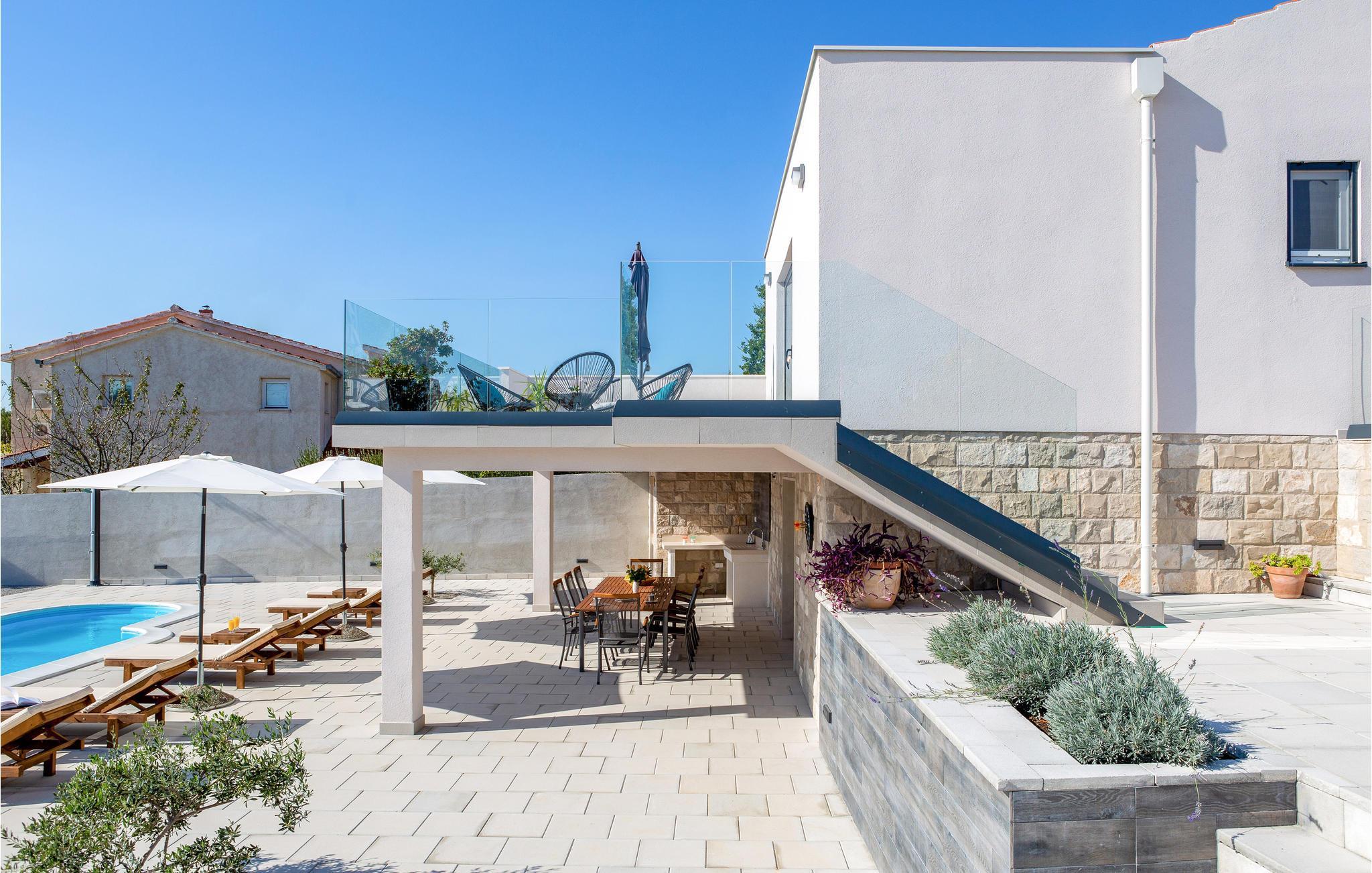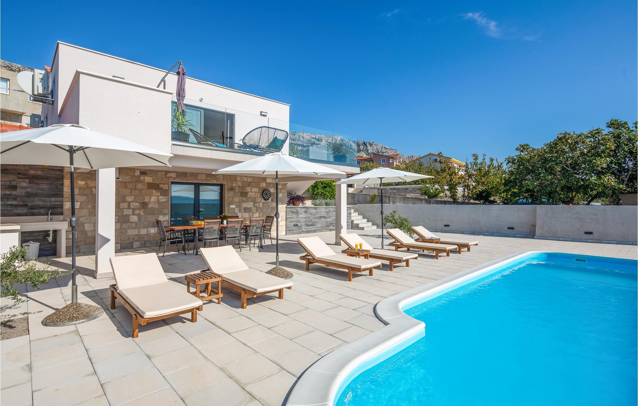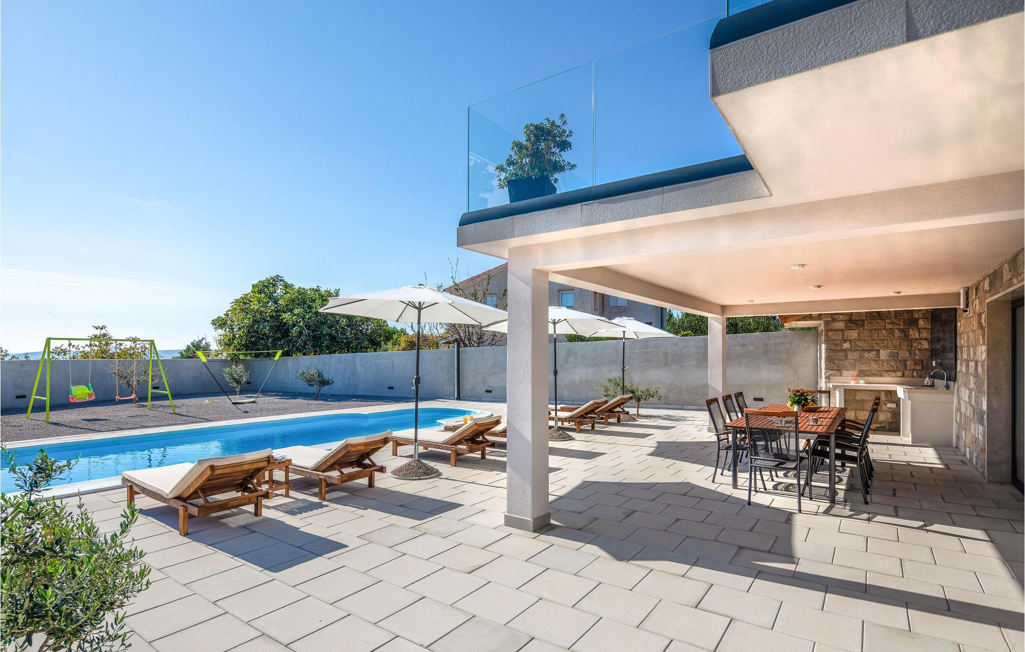 Ferienhaus mit Pool und tollem Blick auf das Meer.