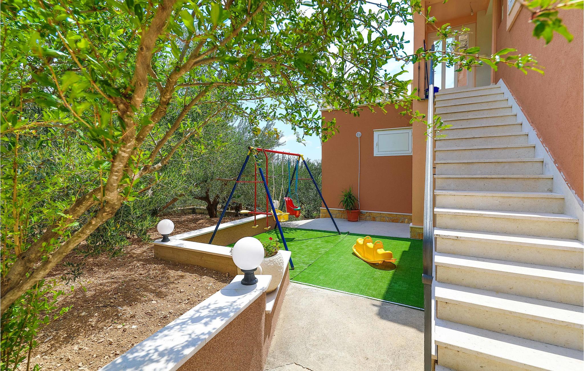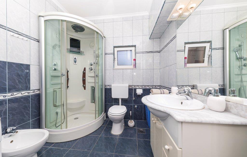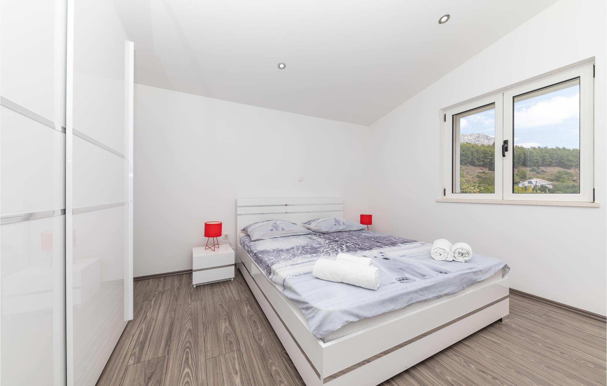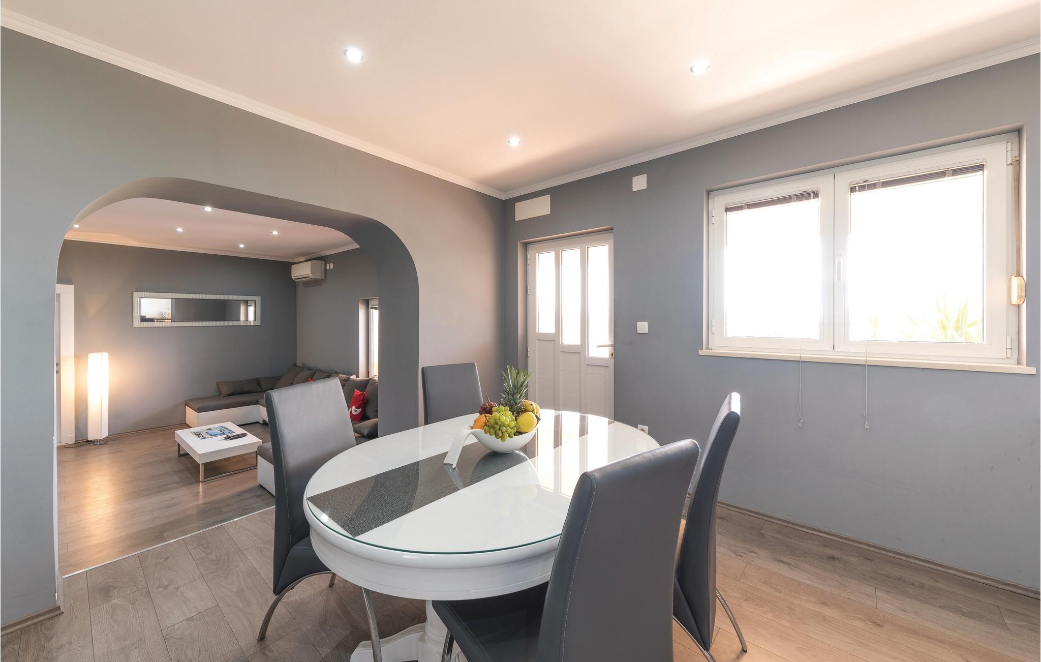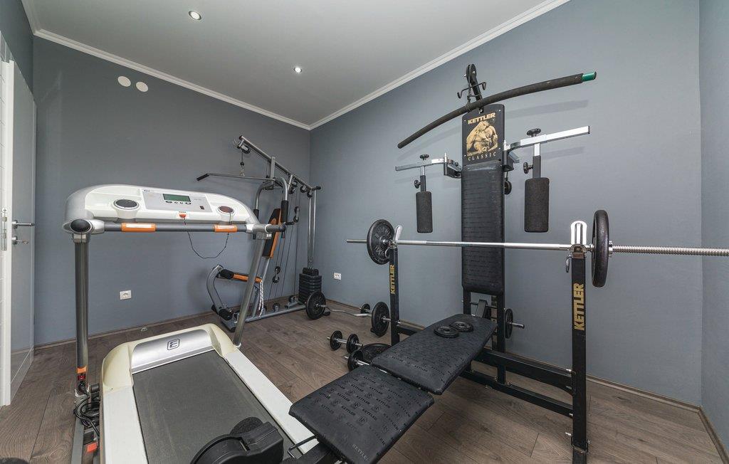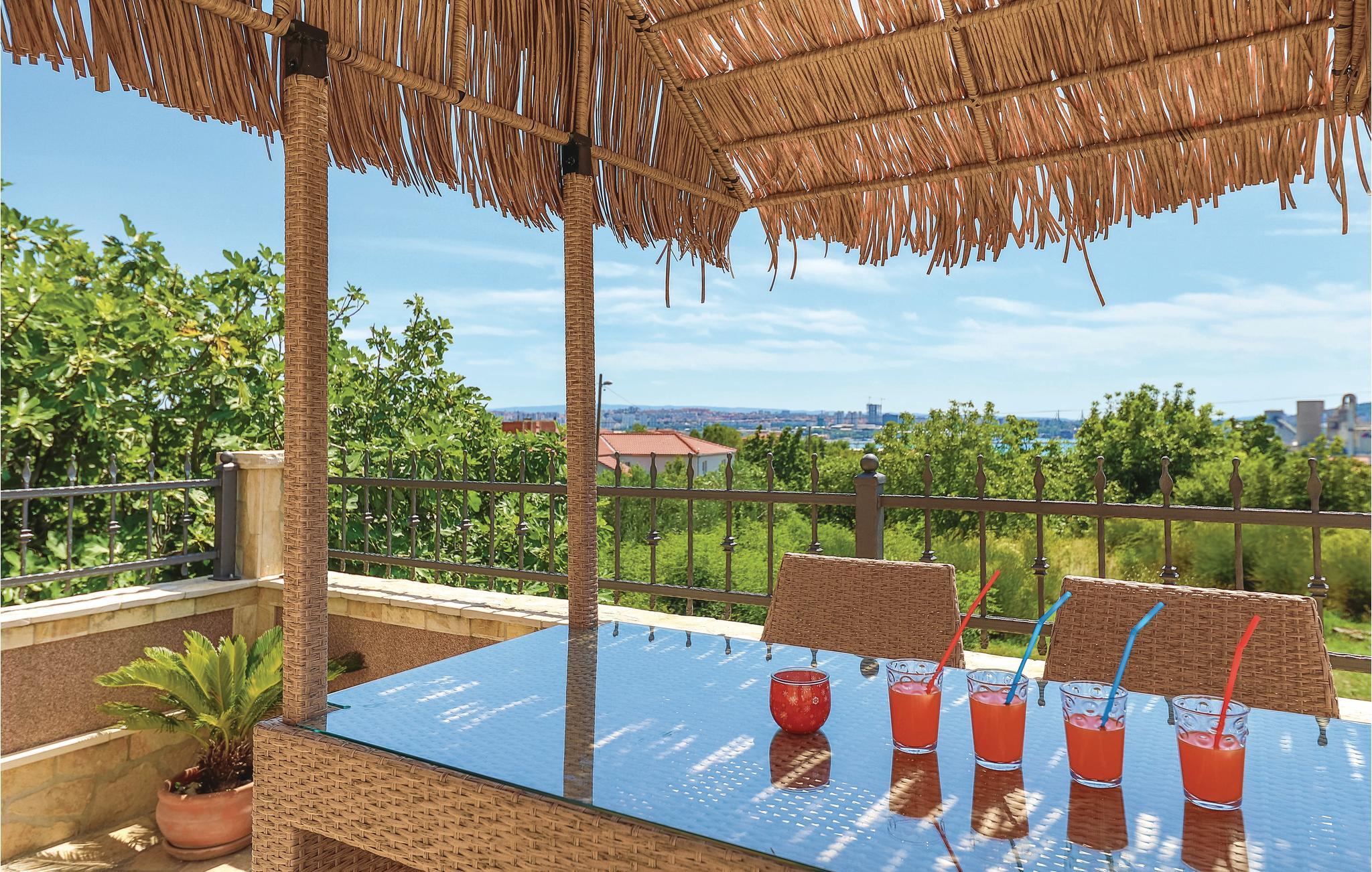 Dieses Ferienhaus ist ideal für diejenigen, die das Meer und die schöne Aussicht genießen möchten. Das Haus besteht aus zwei Wohnungen, die über Außentreppen zugänglich sind. Die geräumige Erdgeschosswohnung besteht aus drei Schlafzimmern, zwei Badezimmern, einem Fitnessraum sowie großem Wohnzimmer mit Küche und Essbereich, von dem sich ein Blick auf dem Pool bietet. Im ersten Stock gibt es ebenfalls eine geräumige Terrasse mit drei Schlafzimmern, zwei Bädern, einer Wohnküche und schöner Terrasse mit Panoramablick auf die Bucht von Kaštel. Zusätzlicher Komfort wird auf dem umzäunten Grundstück mit Pool- und Sonnendeck geboten. Der nächste Strand ist etwa 1,5 km weit entfernt und Sie können die kulturellen Zentren wie Split und Trogir mit dem Auto erreichen.