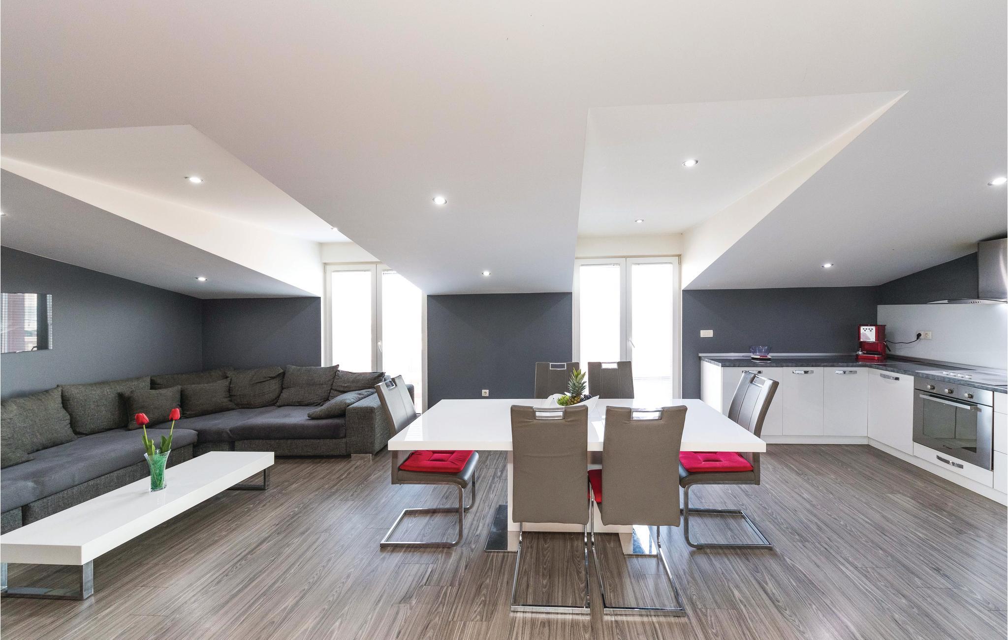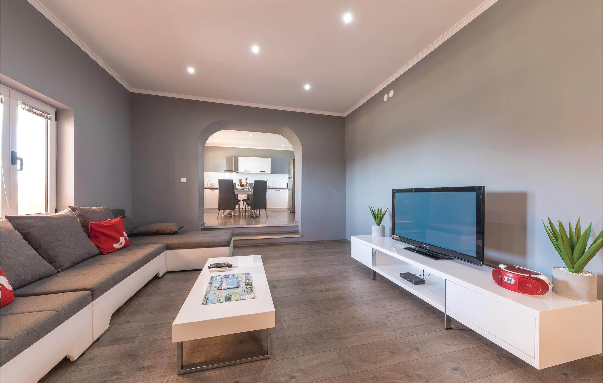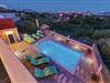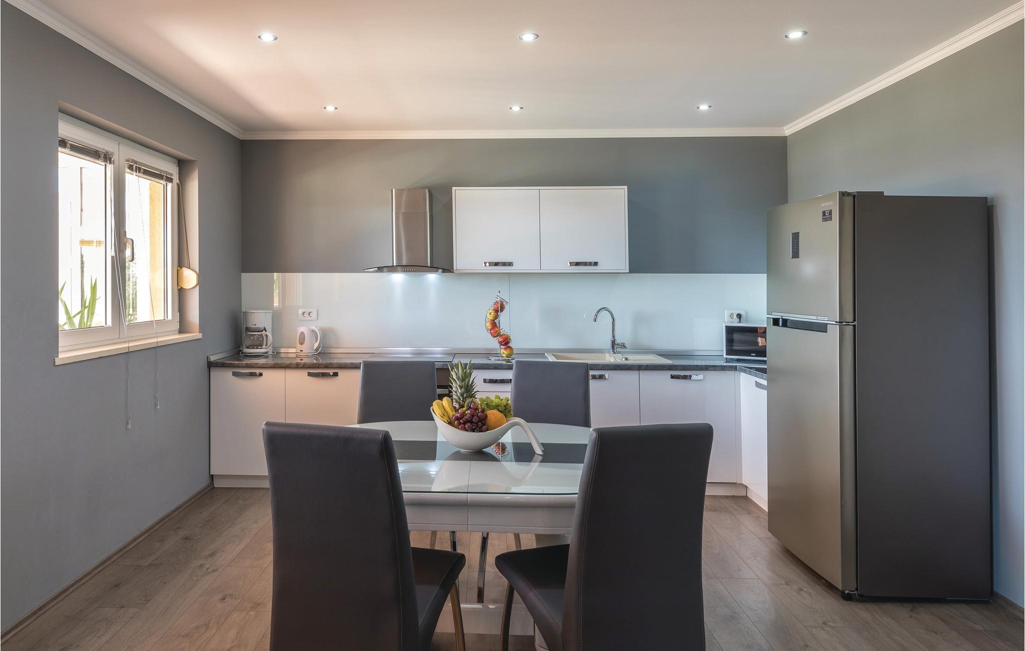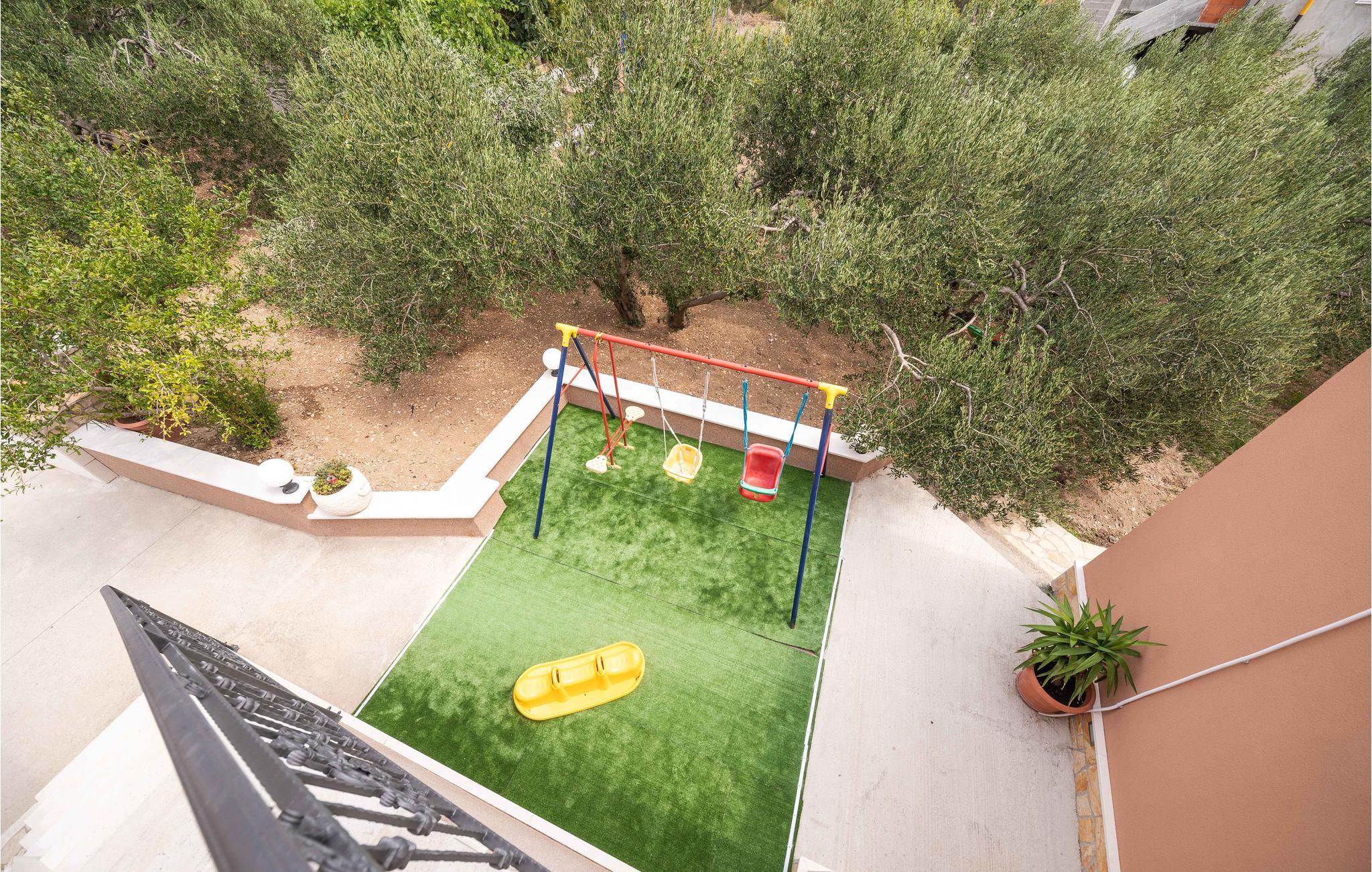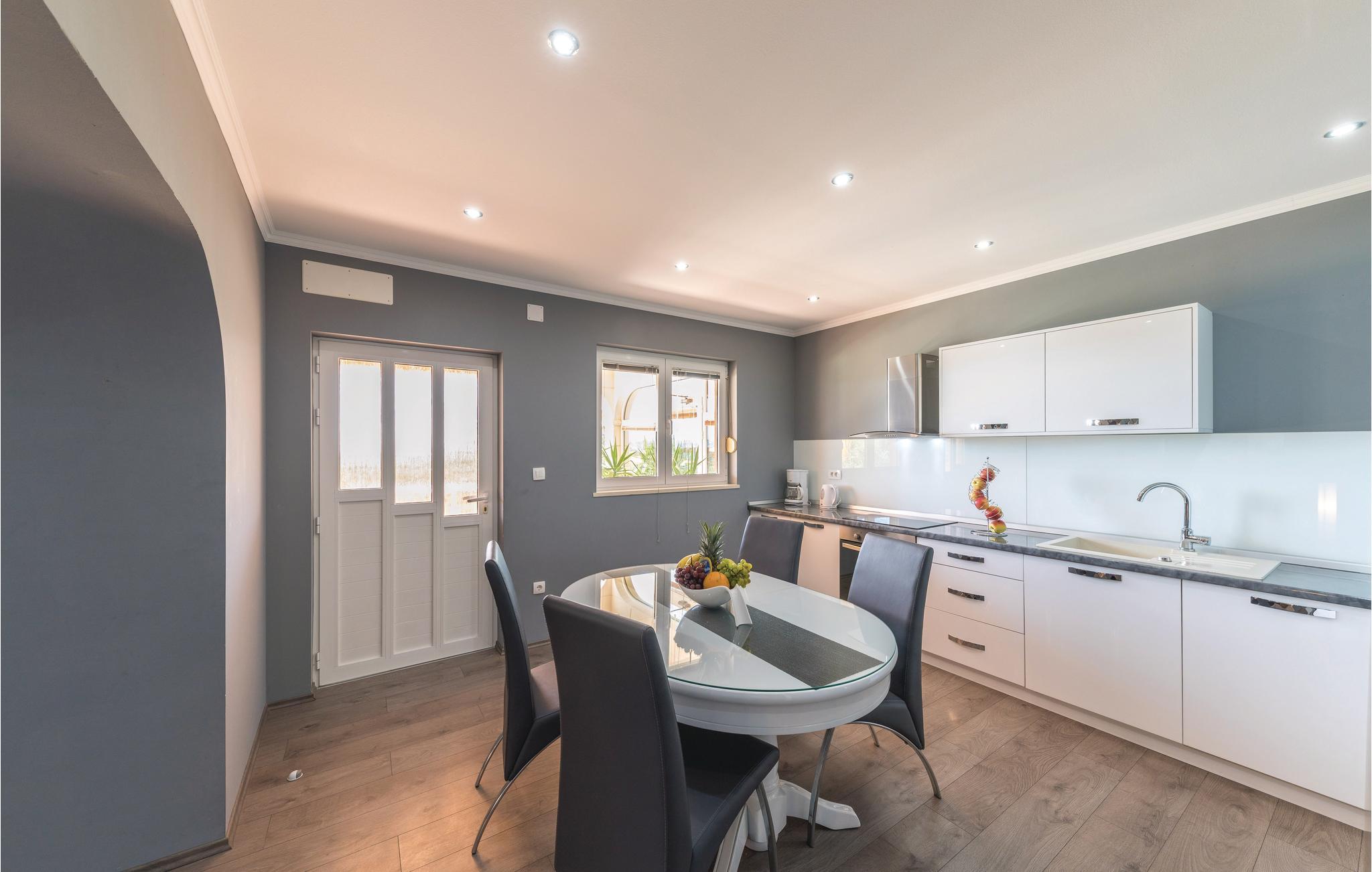 Dieses Ferienhaus ist ideal für diejenigen, die das Meer und die schöne Aussicht genießen möchten. Das Haus besteht aus zwei Wohnungen, die über Außentreppen zugänglich sind. Die geräumige Erdgeschosswohnung besteht aus drei Schlafzimmern, zwei Badezimmern, einem Fitnessraum sowie großem Wohnzimmer mit Küche und Essbereich, von dem sich ein Blick auf dem Pool bietet. Im ersten Stock gibt es ebenfalls eine geräumige Terrasse mit drei Schlafzimmern, zwei Bädern, einer Wohnküche und schöner Terrasse mit Panoramablick auf die Bucht von Kaštel. Zusätzlicher Komfort wird auf dem umzäunten Grundstück mit Pool- und Sonnendeck geboten. Der nächste Strand ist etwa 1,5 km weit entfernt und Sie können die kulturellen Zentren wie Split und Trogir mit dem Auto erreichen.