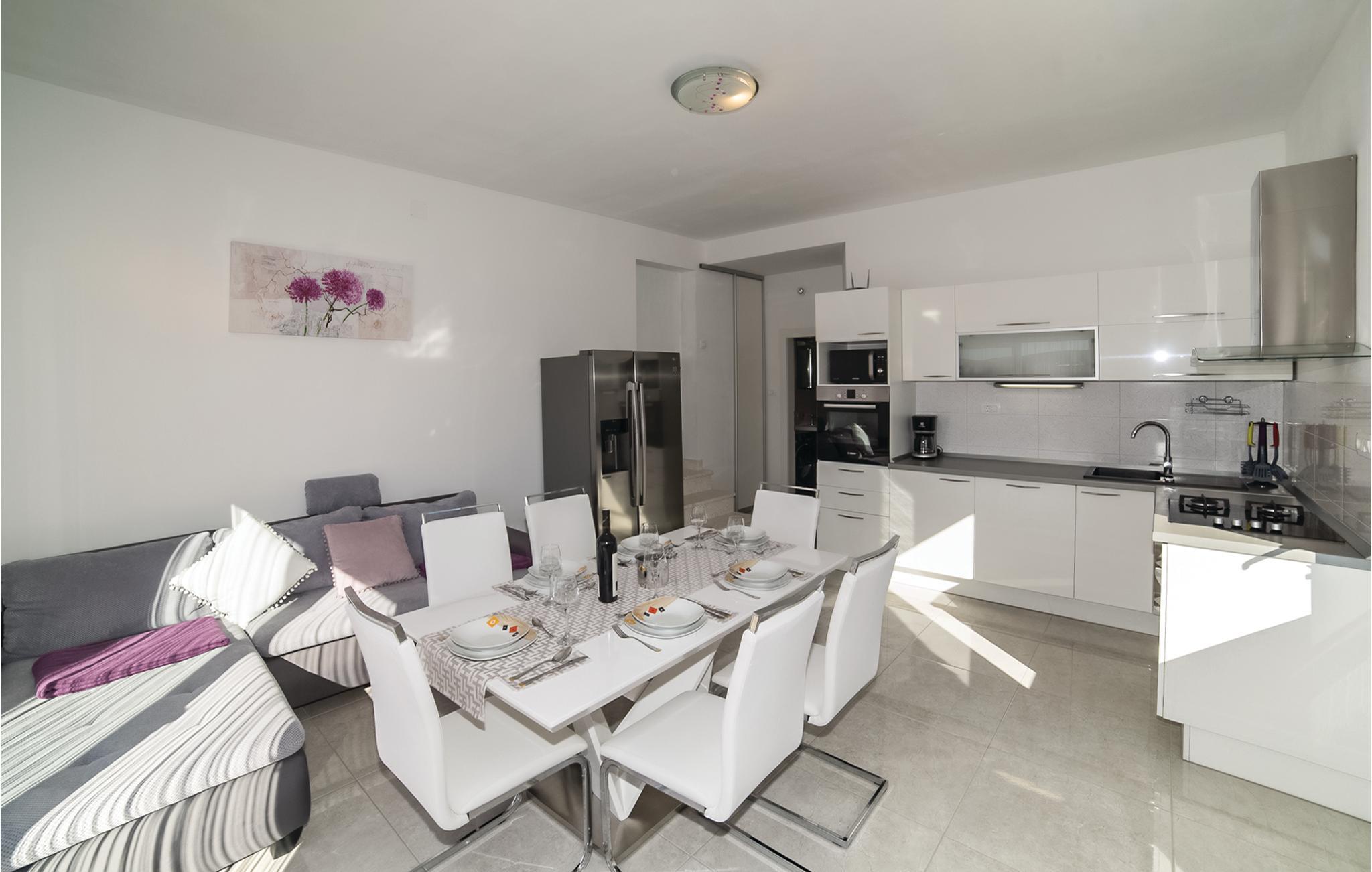 Dieses charmante Ferienhaus mit Pool und gepflegtem Garten beherbergt eigentlich zwei schön eingerichtete Wohnungen mit Terrassen. Von den Räumen im Erdgeschoss gelangen Sie direkt zum Pool und zur Terrasse mit Grillplatz sowie in den Garten. Im Garten wird auch Saisongemüse angepflanzt und es sind ein Badmintonnetz sowie Tischtennistisch vorhanden. Durch die nahe gelegene Verkehrsstraße und Bahnlinie sind Sie verkehrstechnisch bestens an Split und Trogir angebunden. Diese Städte sind reich an Freizeitangeboten. Zwei von insegamt vier verfügbaren Parkplätze sind überdacht.