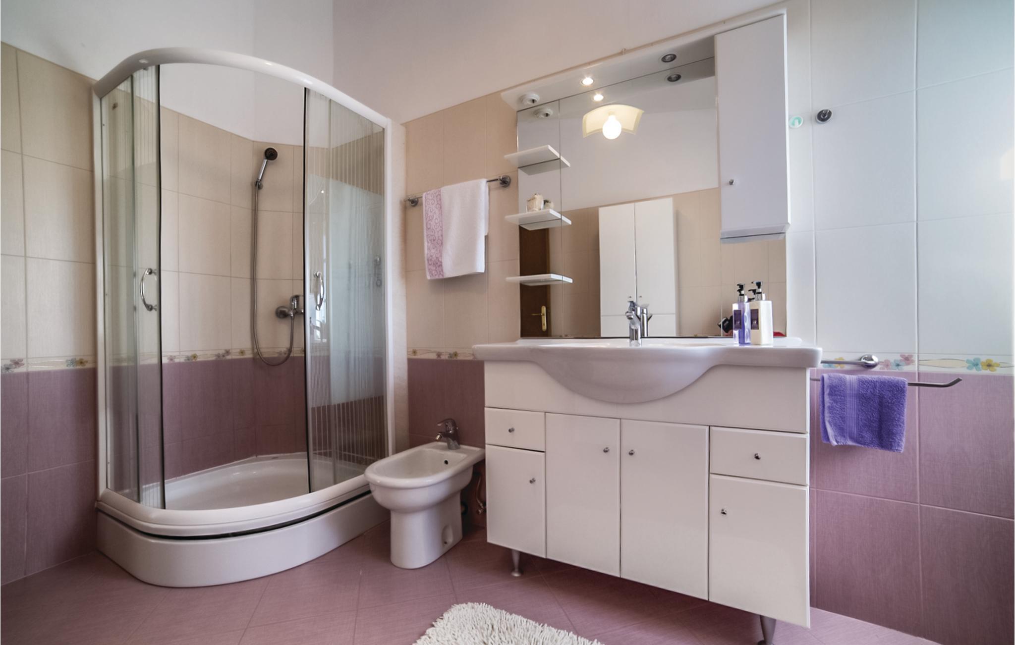 Badezimmer (nr. 2) - WC. Warmes und kaltes Wasser. Dusche