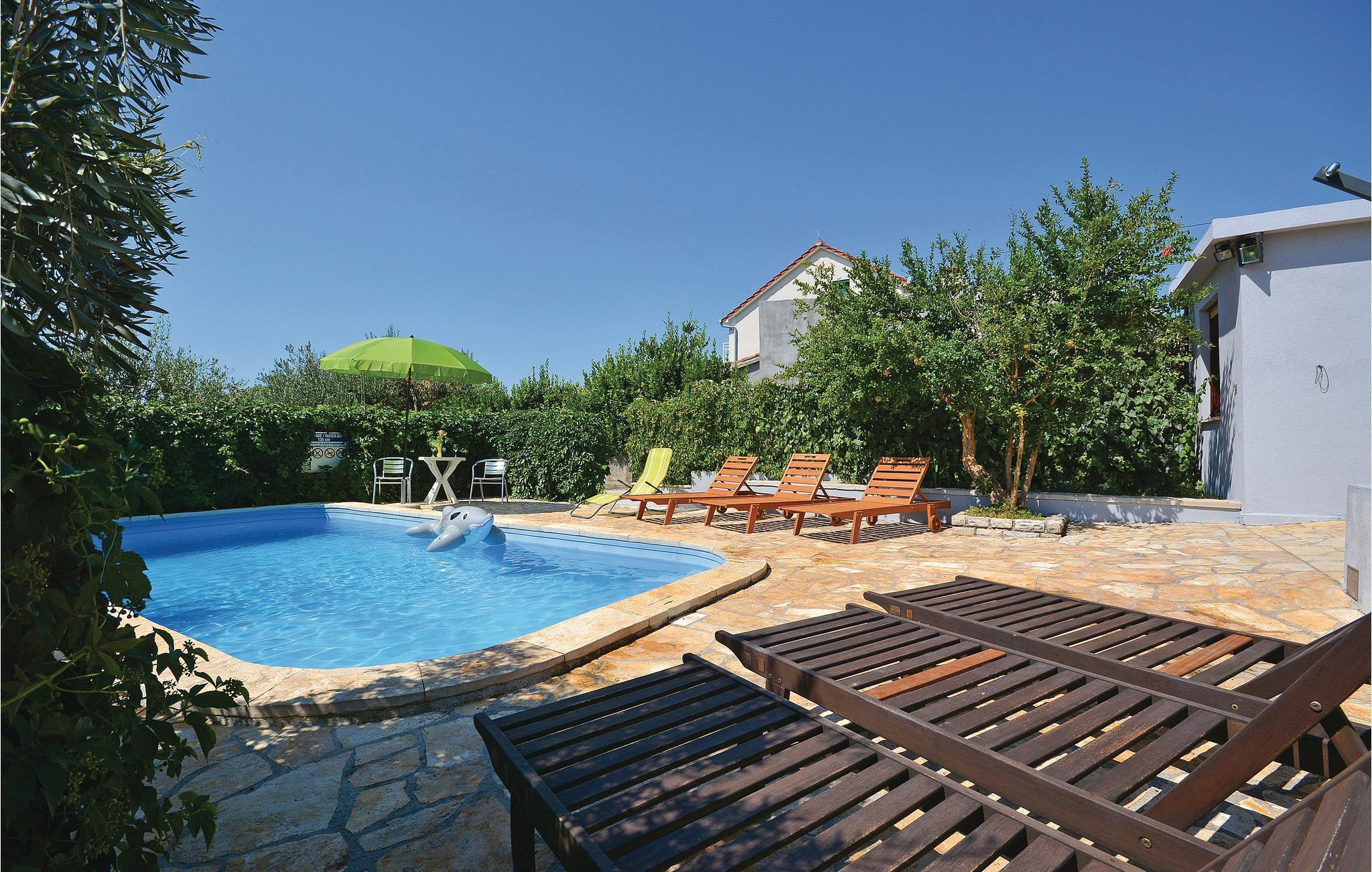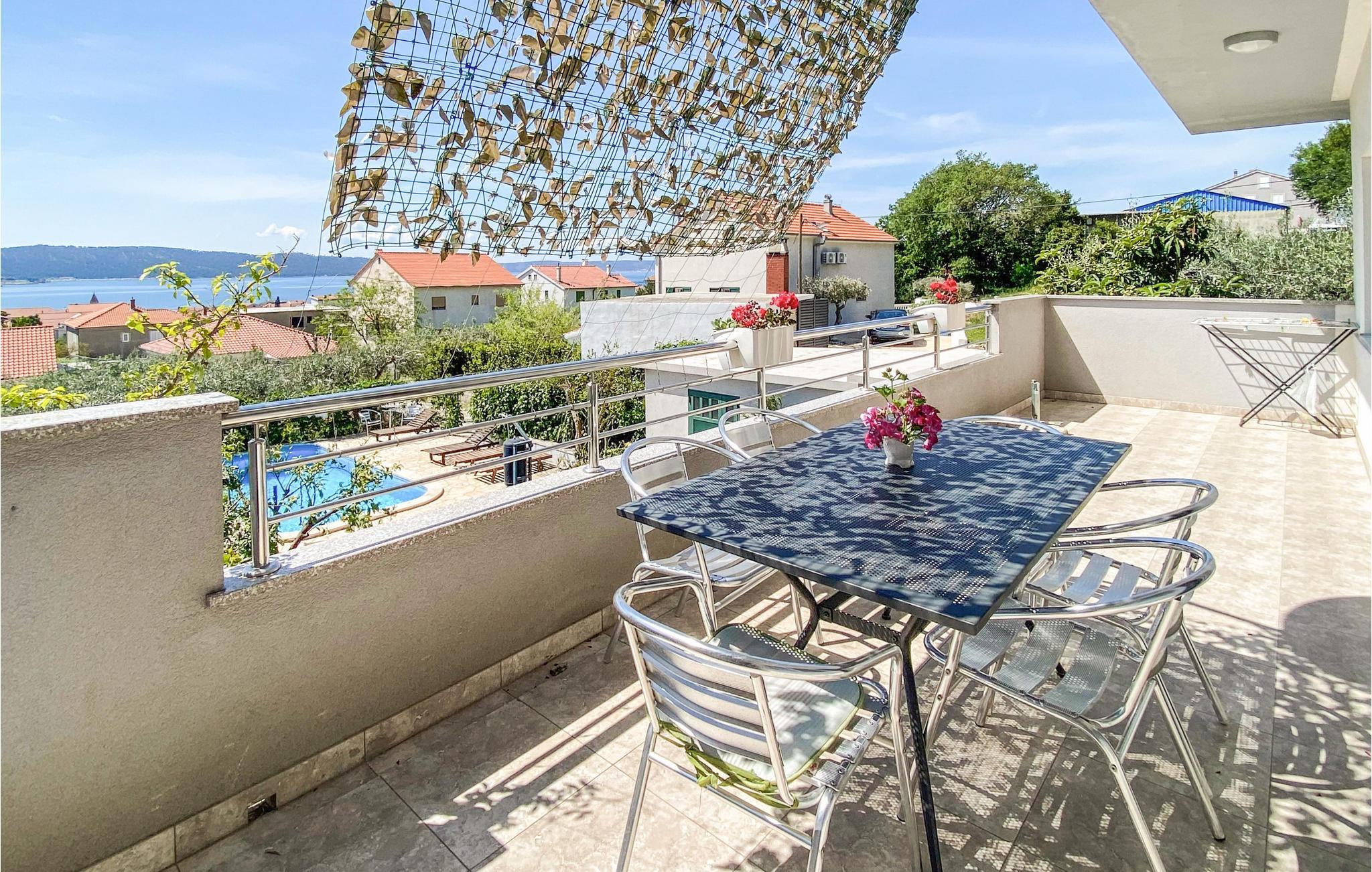 Diese großzügige Ferienwohnung befindet sich im 1. Stock eines Familienhauses. Im Garten vor dem Haus steht den Gästen gemeinsam ein Pool zur Verfügung. Ein Schlafzimmer und die Küche grenzen an eine verkehrsreiche Straße. Dieses Appartment hat eine grosse Terrasse, von der aus Sie auf die 8 Km entfernte Stadt Split blicken können. In Split finden Sie Unterhaltungsmöglichkeiten sowie historische und kulturelle Sehenswürdigkeiten, wie z.B. den antiken Diokletianischen Palast.