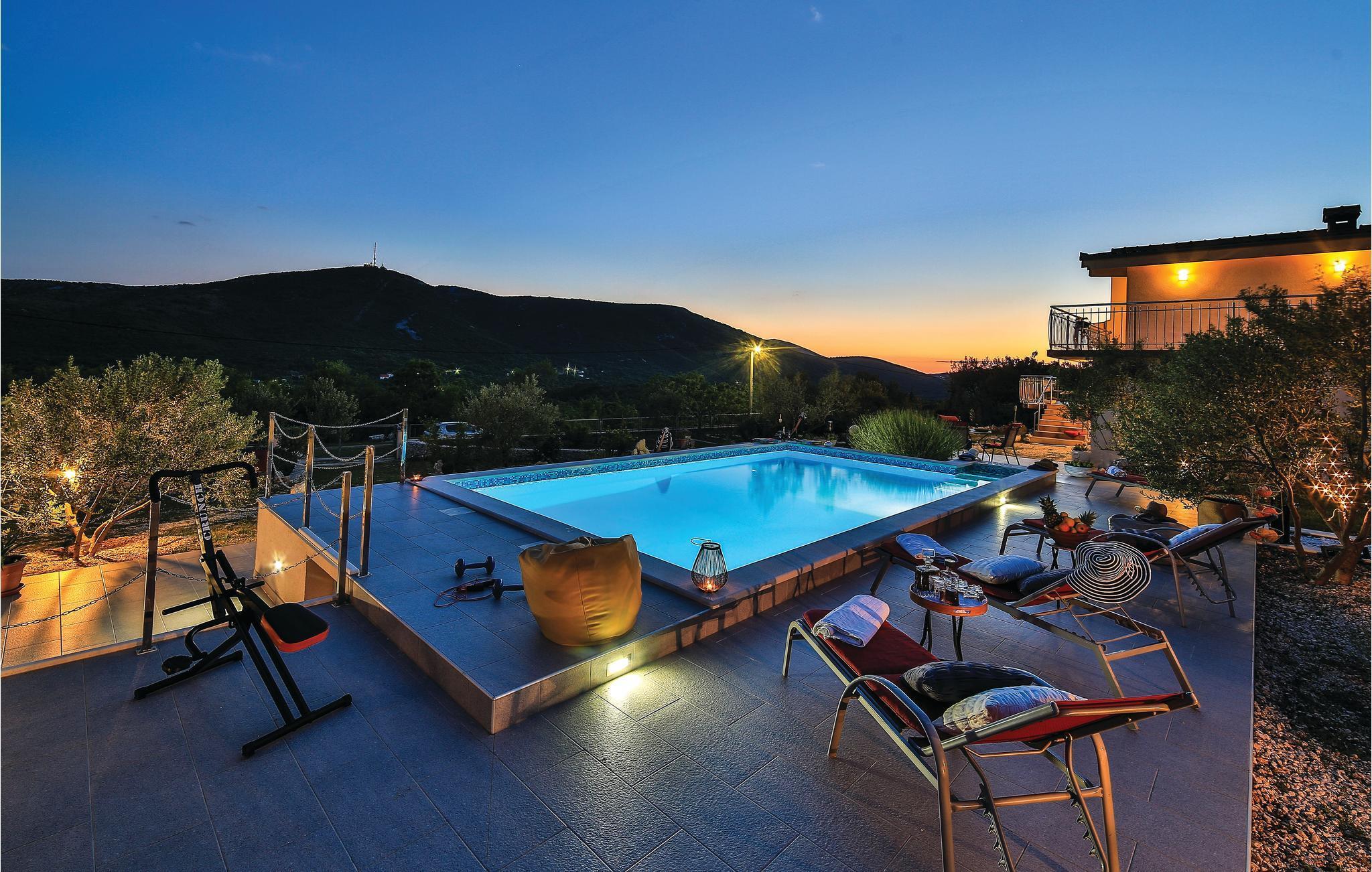 Verbringen Sie einen unvergesslichen Urlaub in diesem, mit viel Liebe zum Detail ausgestatteten Ferienhaus mit Pool. Ein besonderes Ambiente verleiht die charmante Küche mit tollen Details und einem großen Tisch für sechs Personen. Auch wenn die Geräumigkeit dieses charmanten Ferienhauses keine Wünschen offen läßt, liegt das Highlight im Außenbereich mit großem Pool (Wassertiefe von 120-150 cm), in dem Sie an heißen Sommertagen Ihre Runden schwimmen. Besuchen Sie das wunderschöne Trogir mit kleinen und schmalen Gassen, romantischen Steinhäusern sowie kulturhistorischen Denkmälern.