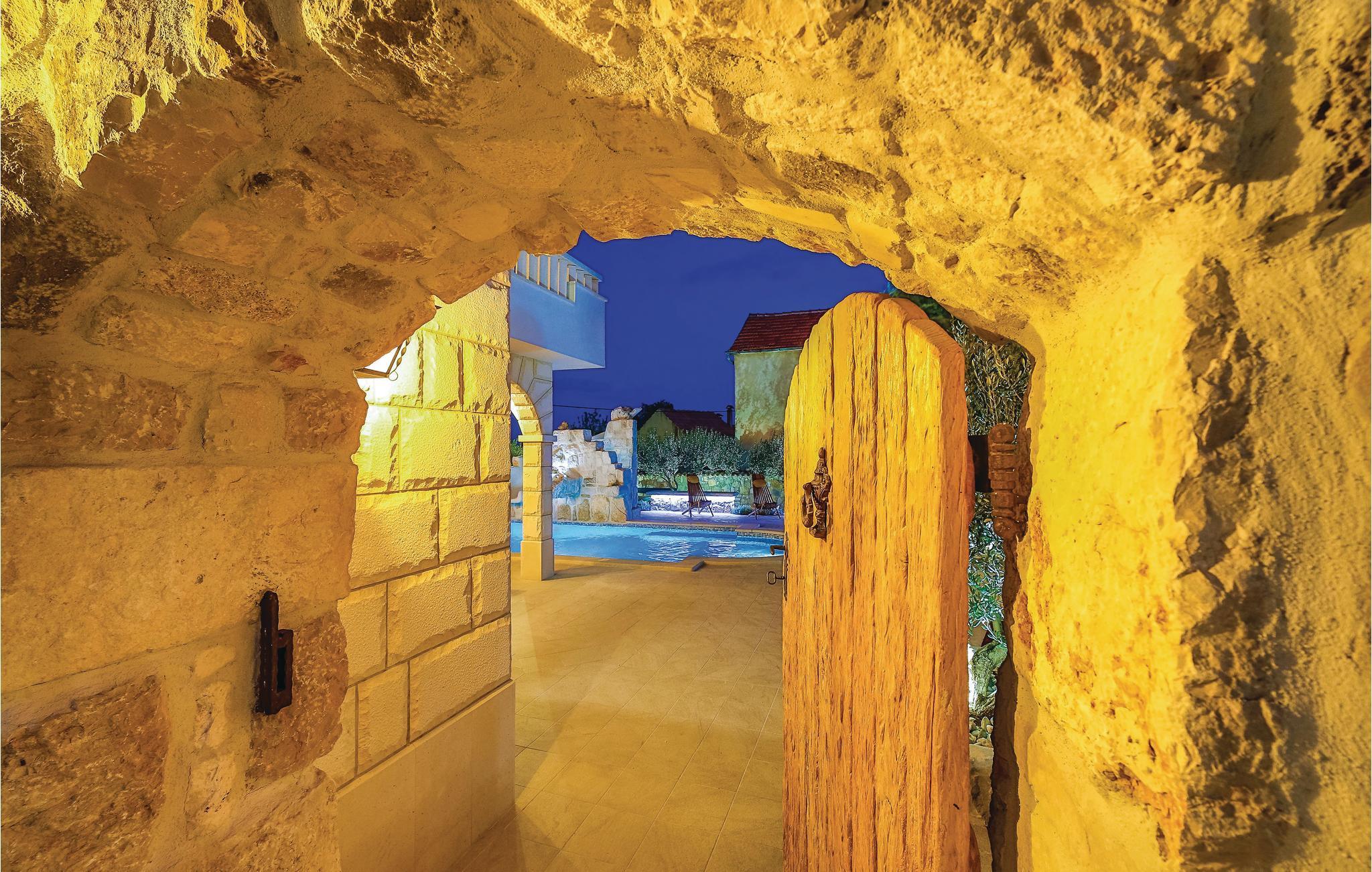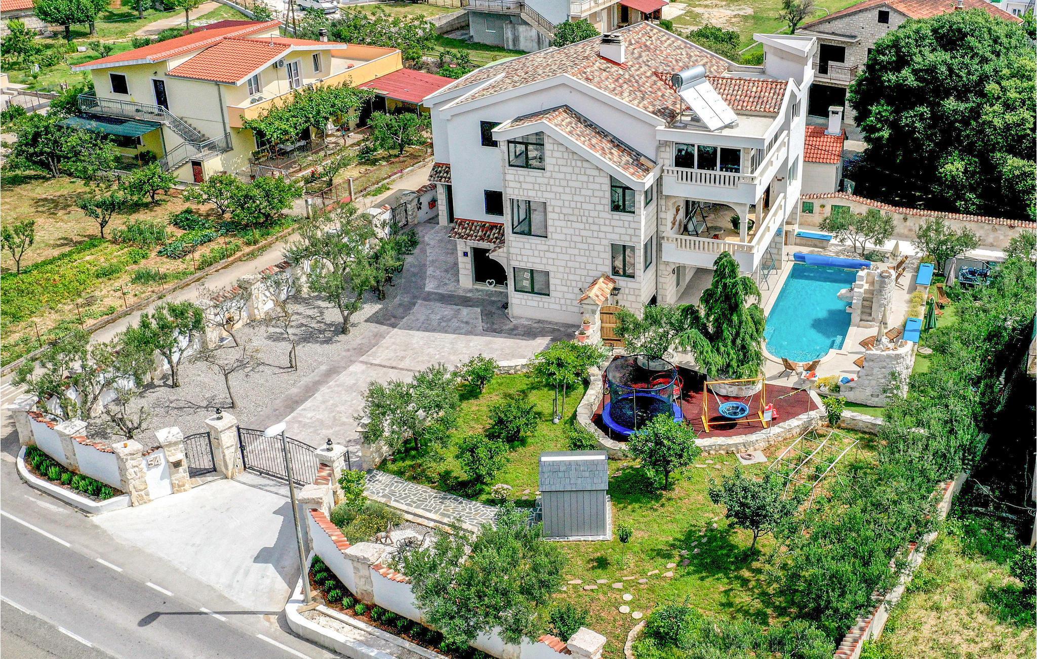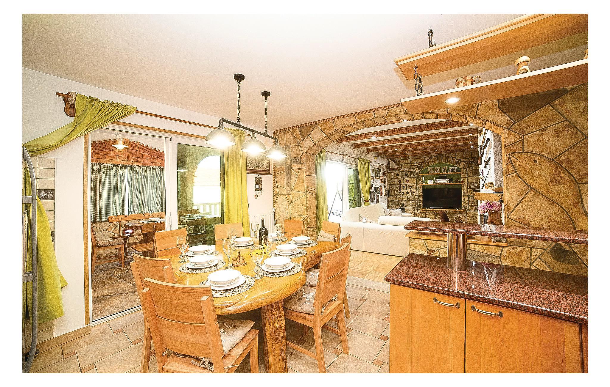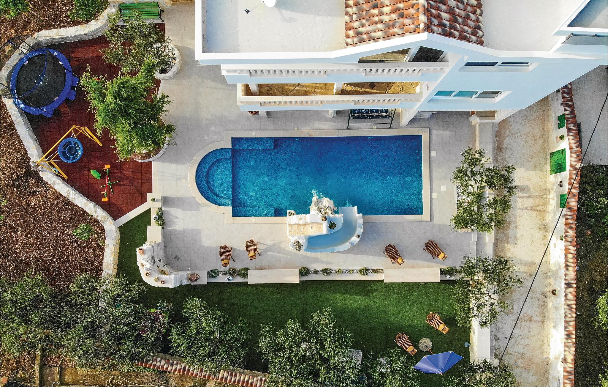 Dieses gemütliche Ferienhaus mit Pool und einzigartigem Interieur befindet sich im Ort Plano, nahe Trogir. Die Annehmlichkeiten wie beheizter Pool, Wasserrutsche und verschiedenen Unterhaltungsmöglichkeiten bieten zusätzliche Erholung für die ganze Familie. Die Innenräume verteilen sich über das Erdgeschoss und den ersten Stock. Am Grill auf der Terrasse können Sie Ihre Lieblingsgerichte zubereiten und dabei den schönen Meerblick genießen. In der Nähe gibt es ein kleines Geschäft und ein Restaurant. Empfehlenswert ist auch ein Besuch der Altstadt von Trogir sowie Split und Solin.