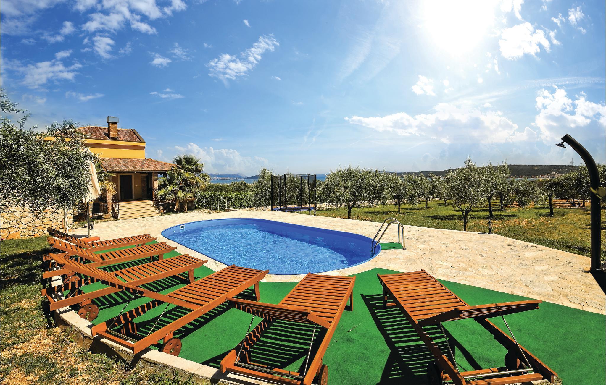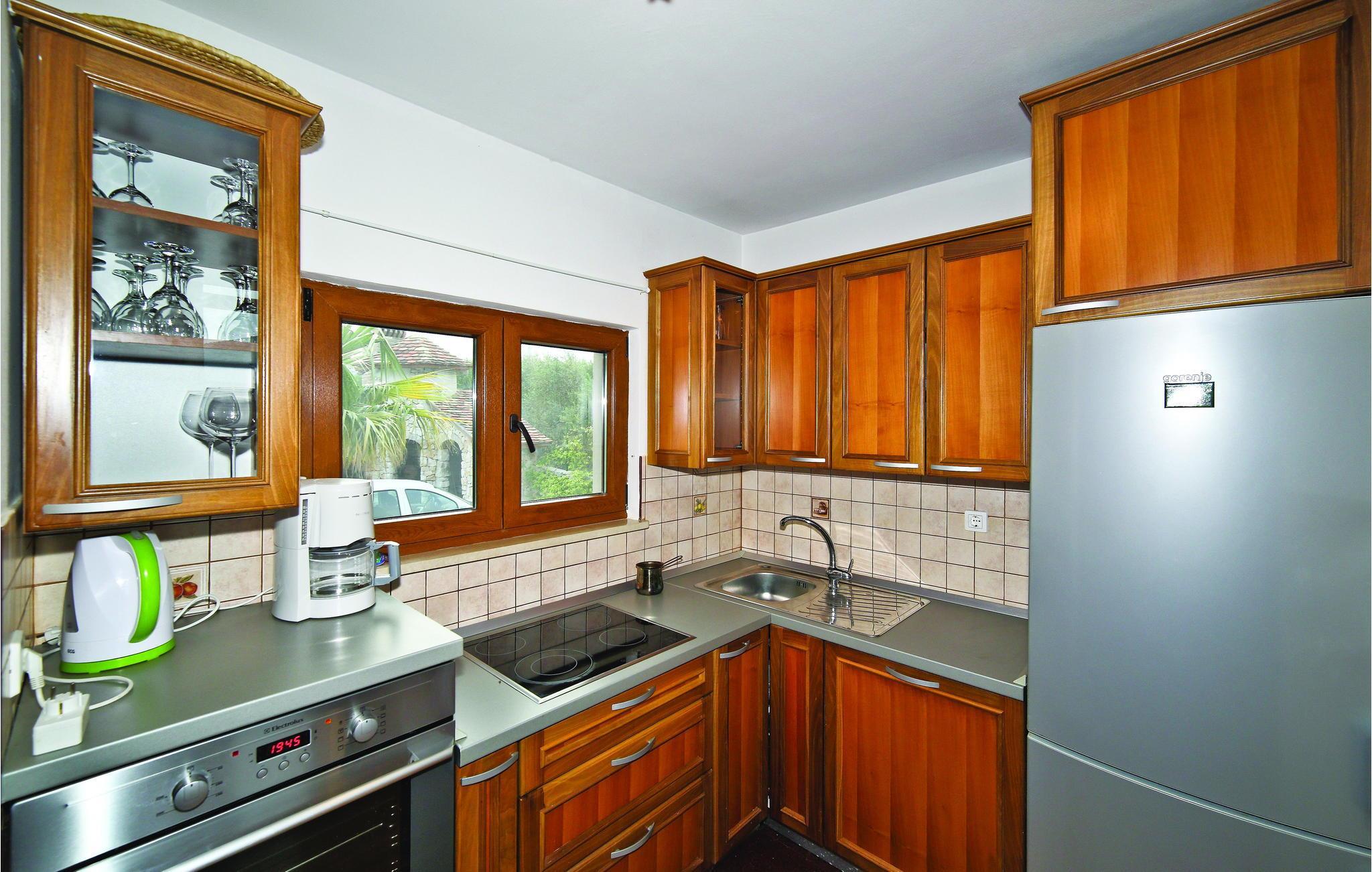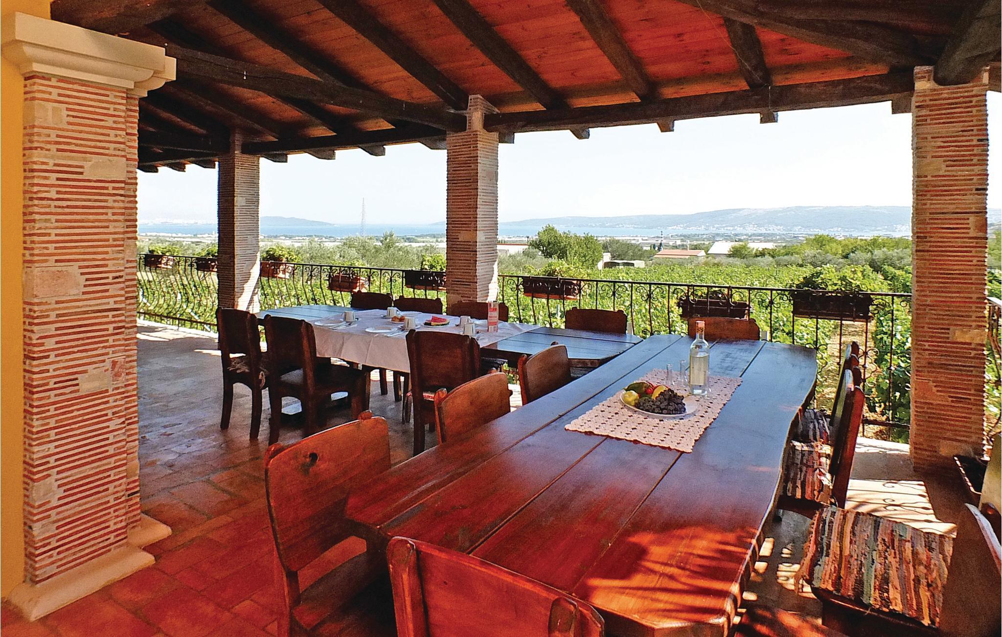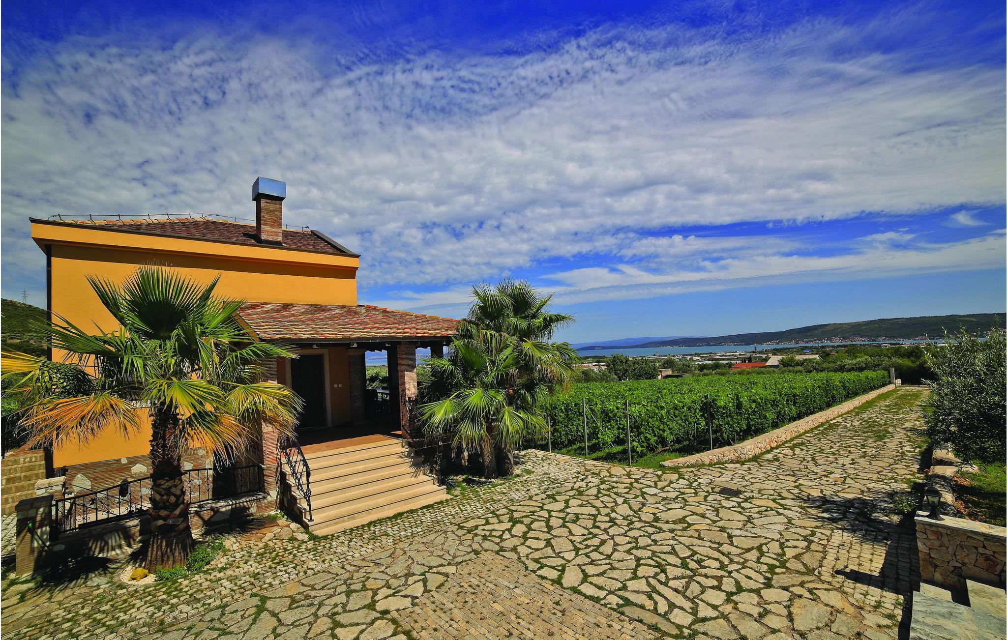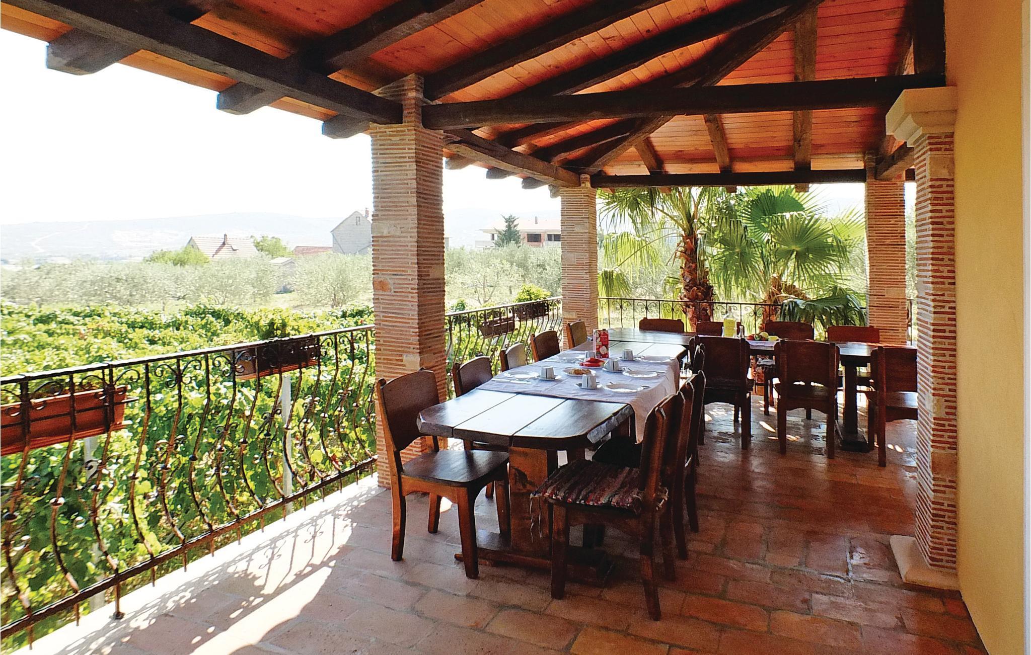 Wachen Sie auf zwischen Weinreben und Olivenhainen der südländischen Atmosphäre dieses hübschen Ferienhauses. Unten befindet sich eine Küche mit großen Kamin und Esstisch, wo Sie während der heißen Sommertage ein wenig Abkühlung finden. Im Erdgeschoss sind ein Wohnzimmer mit Küche und ein separates Schlafzimmer mit Badezimmer, zu dem Sie über die Terrasse gelangen, während im Obergeschoss noch zwei weitere Schlafzimmer mit Badezimmern sind. Zum Ferienhaus führt eine ca. 300 m lange Schotterstraße, und beim Eigentümer können Sie Bio-Produkte kaufen, da er auf einem Teil des großen Grundstücks auch Hühner, Enten, Gänse und Pfaue züchtet.