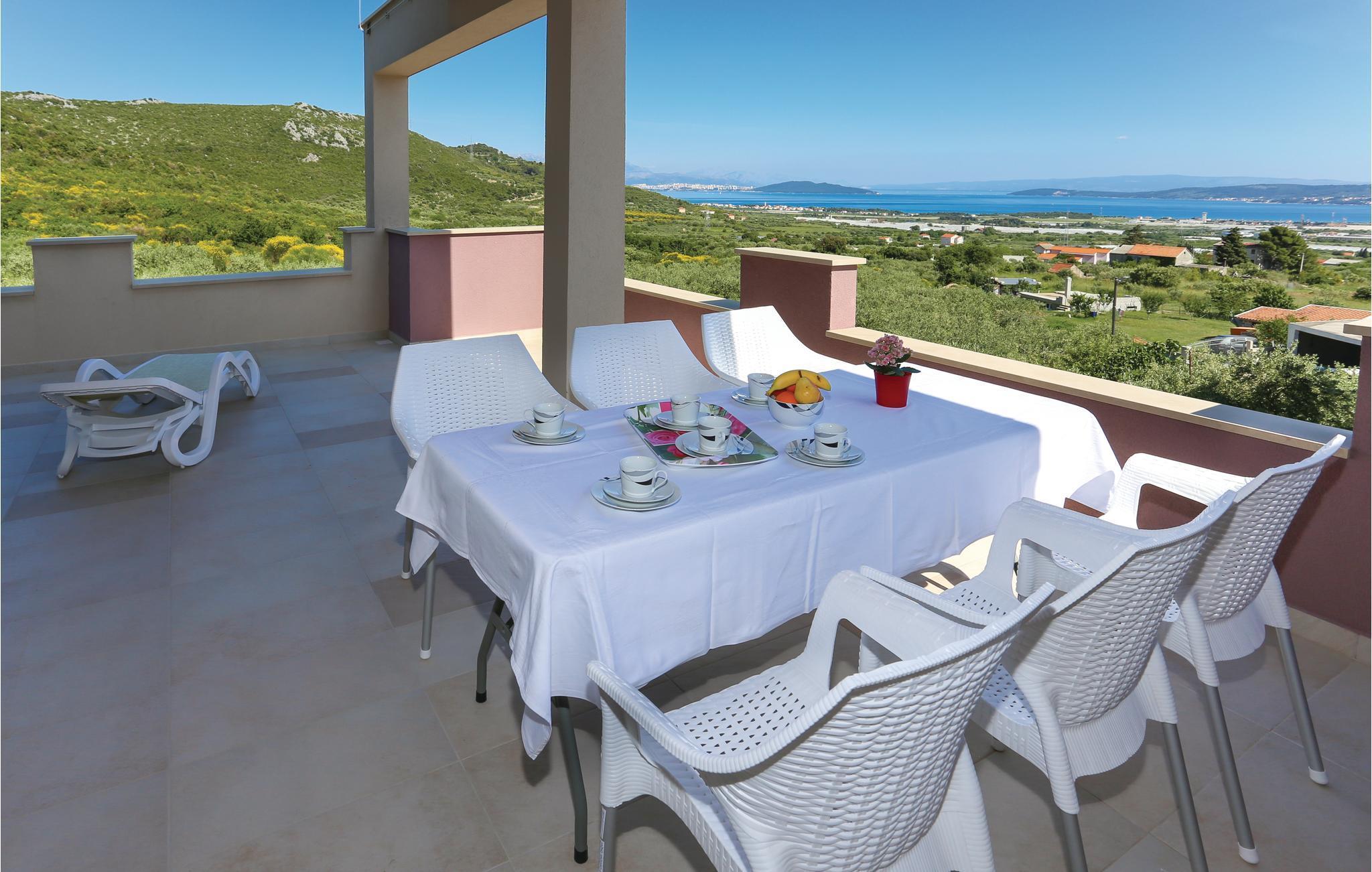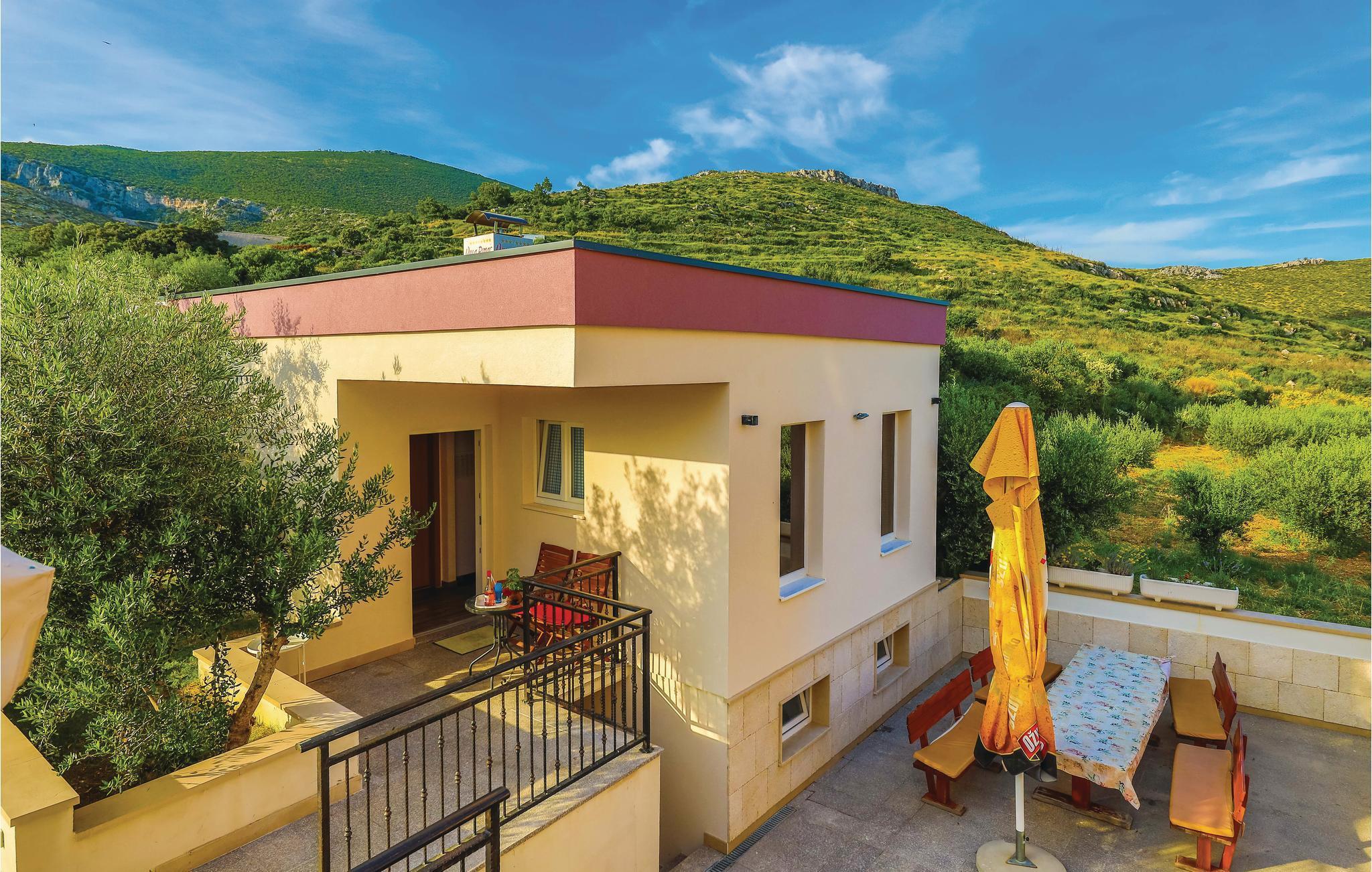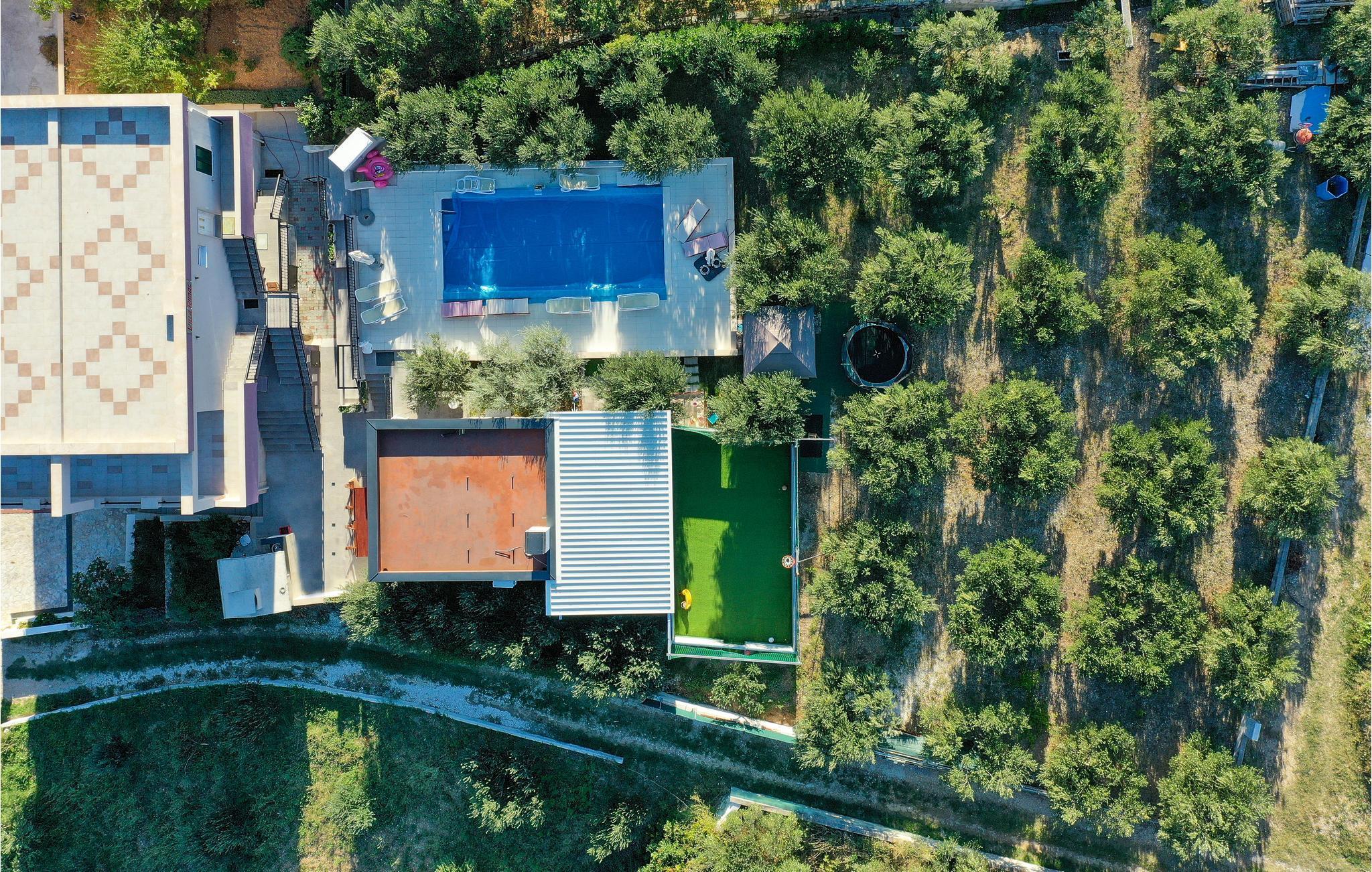 Das Ferienhaus mit Hydrolysepool liegt etwa 6 km vom Ortszentrum Trogirs, in der Gegend von Trogir-Plano. Das Haus ist von einem gepflegten Garten mit viel Grün umgeben, es liegt fernab von Stadtlärm und Getümmel und eignet sich für einen entspannten Urlaub. Die drei Wohnbereiche des Hauses genießen separate Eingänge, die geräumigere Einheit liegt im Obergeschoss, das Erdgeschoss teilen sich zwei Wohneinheiten. Auf den Terrassen haben Sie einen schönen Meerblick. Sehenswert ist die prächtige Stadt Trogir, die ihren besonderen Flair und Charme den Römern zu verdanken hat, welche an jeder Ecke ihre Spuren hinterlassen haben. Verwinkelte Gassen ziehen Sie in die reiche Geschichte hinein und bieten Ihnen Kirchen, Museen, Stadttore und pittoreske Häuschen zum Bewundern. Besteigen Sie den Turm der St.- Laurentius Kathedrale und genießen Sie den traumhaften Ausblick über den Ort.