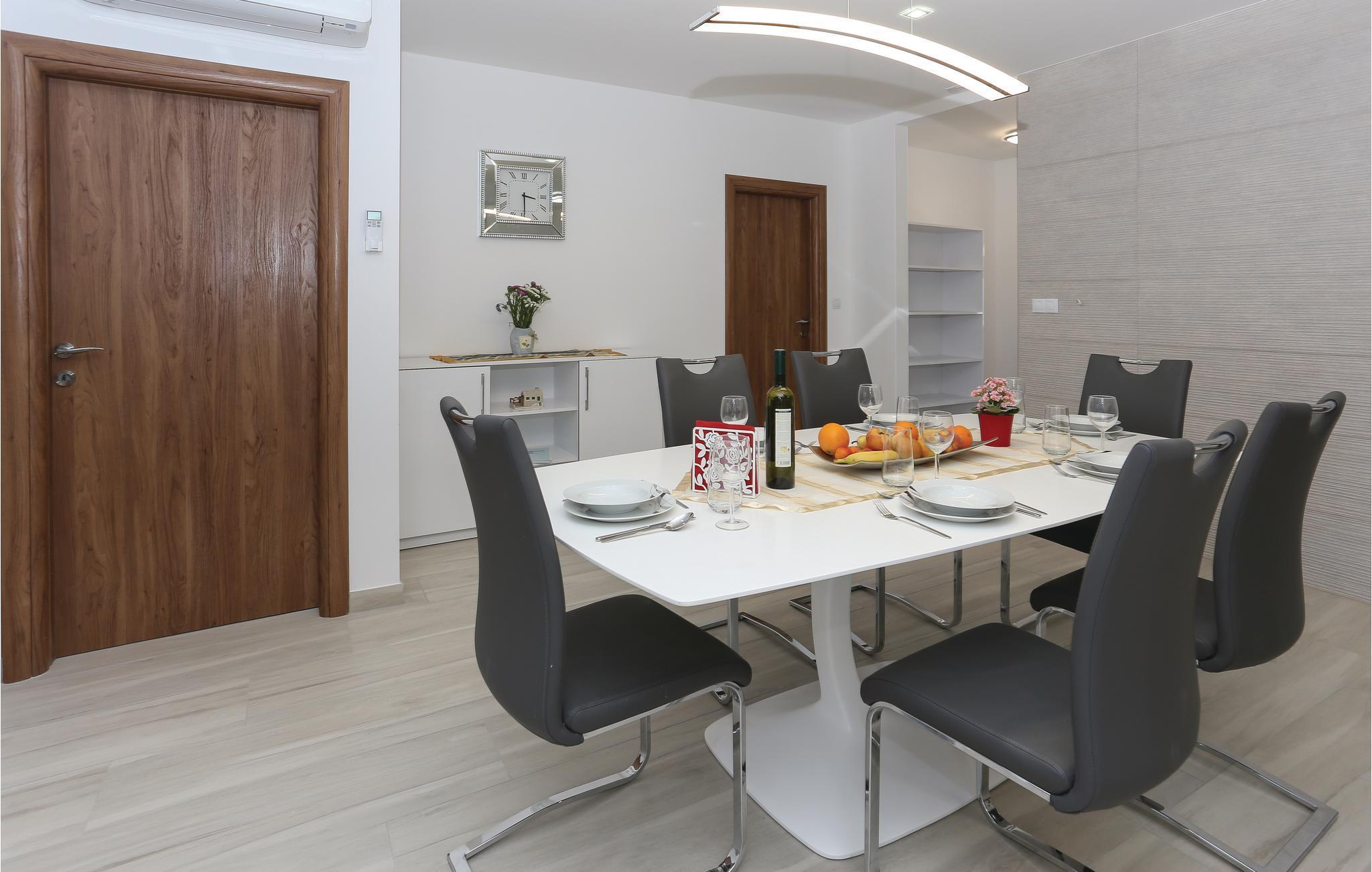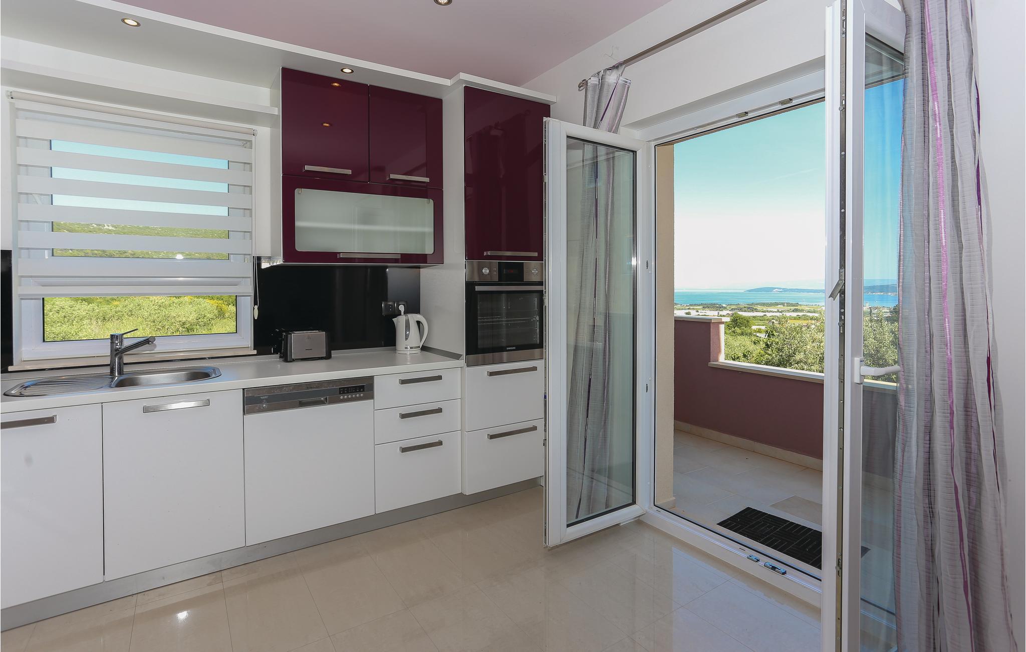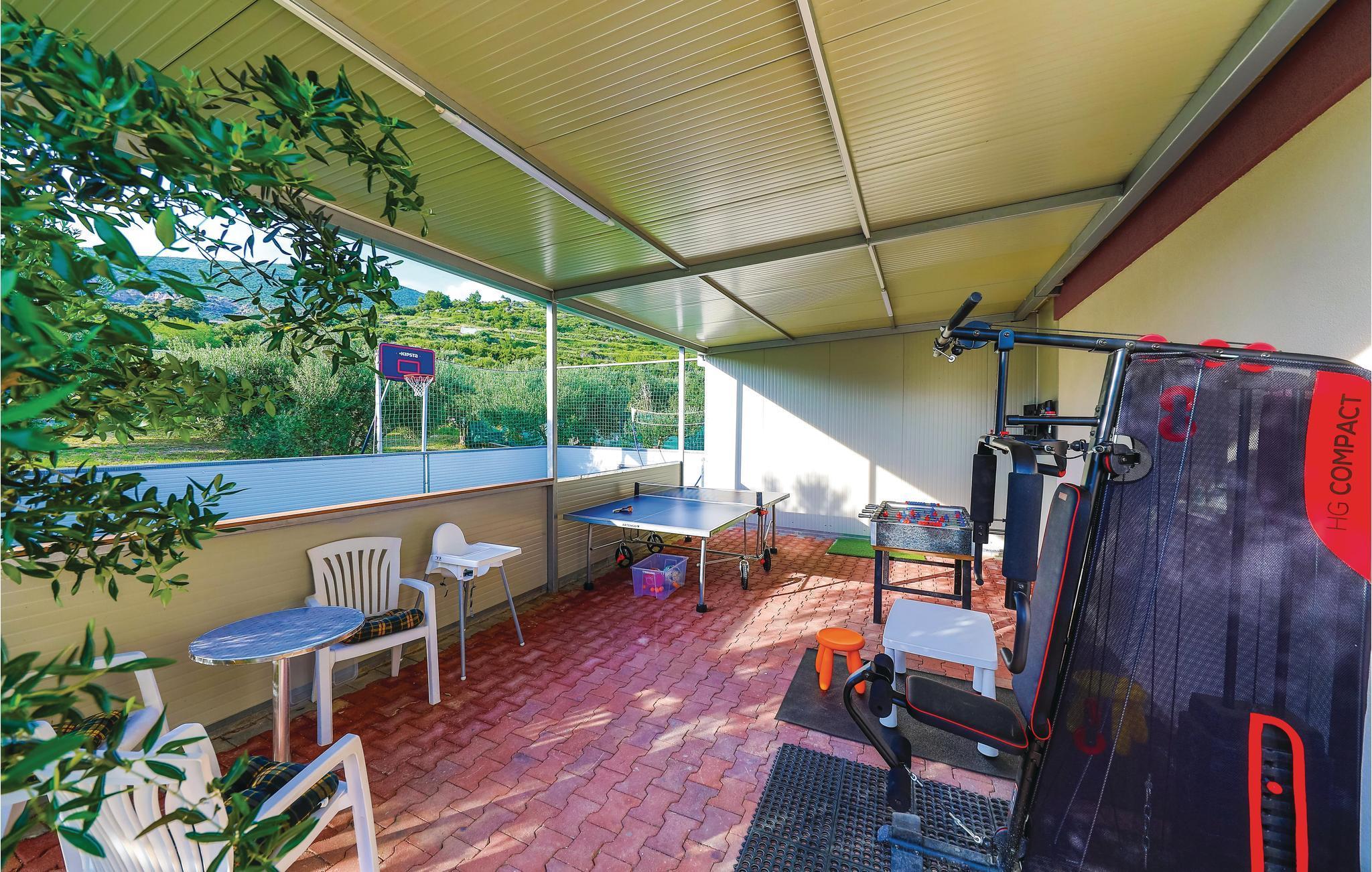 Das Ferienhaus mit Hydrolysepool liegt etwa 6 km vom Ortszentrum Trogirs, in der Gegend von Trogir-Plano. Das Haus ist von einem gepflegten Garten mit viel Grün umgeben, es liegt fernab von Stadtlärm und Getümmel und eignet sich für einen entspannten Urlaub. Die drei Wohnbereiche des Hauses genießen separate Eingänge, die geräumigere Einheit liegt im Obergeschoss, das Erdgeschoss teilen sich zwei Wohneinheiten. Auf den Terrassen haben Sie einen schönen Meerblick. Sehenswert ist die prächtige Stadt Trogir, die ihren besonderen Flair und Charme den Römern zu verdanken hat, welche an jeder Ecke ihre Spuren hinterlassen haben. Verwinkelte Gassen ziehen Sie in die reiche Geschichte hinein und bieten Ihnen Kirchen, Museen, Stadttore und pittoreske Häuschen zum Bewundern. Besteigen Sie den Turm der St.- Laurentius Kathedrale und genießen Sie den traumhaften Ausblick über den Ort.