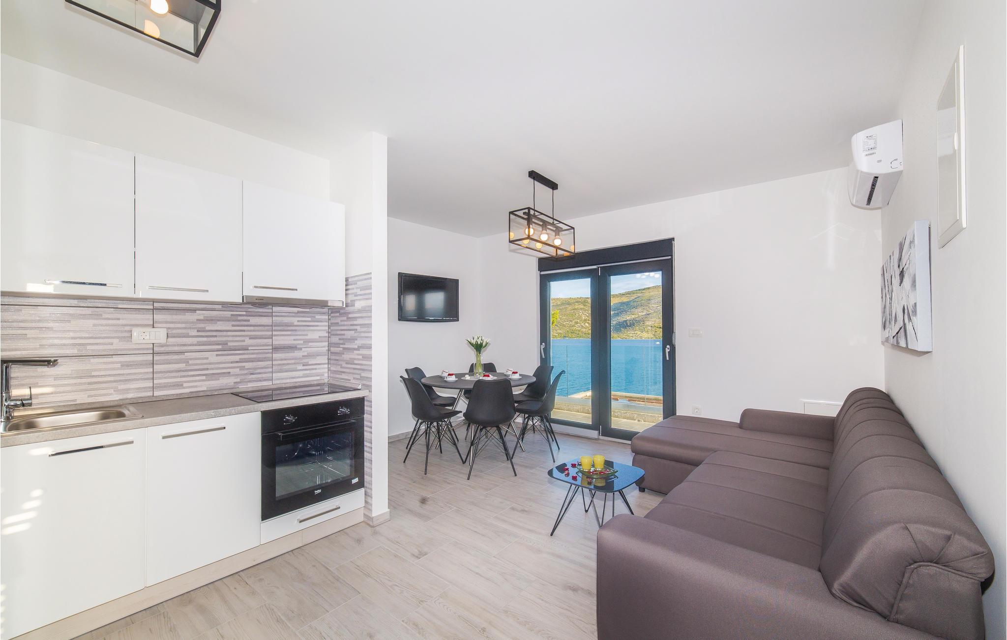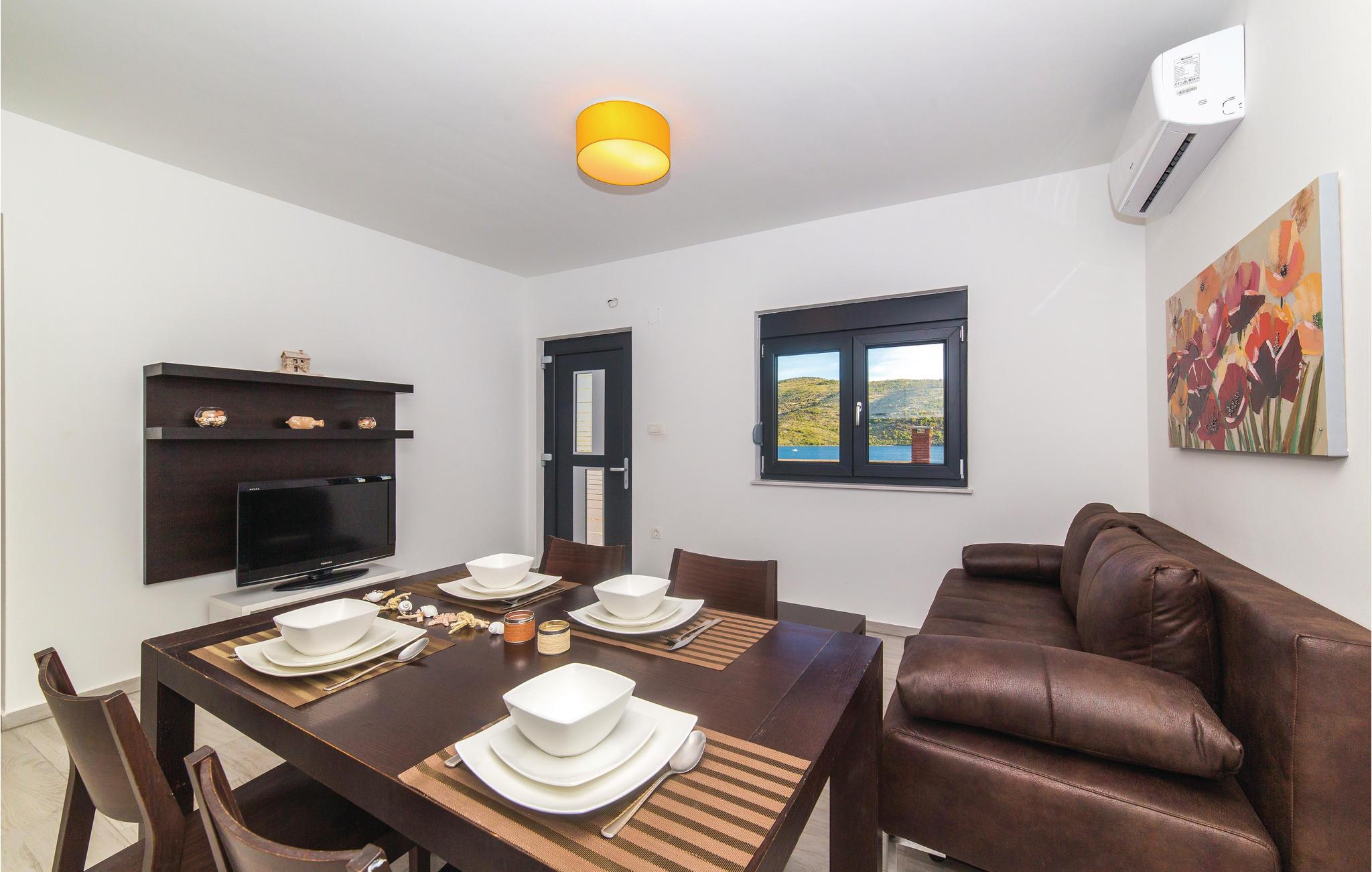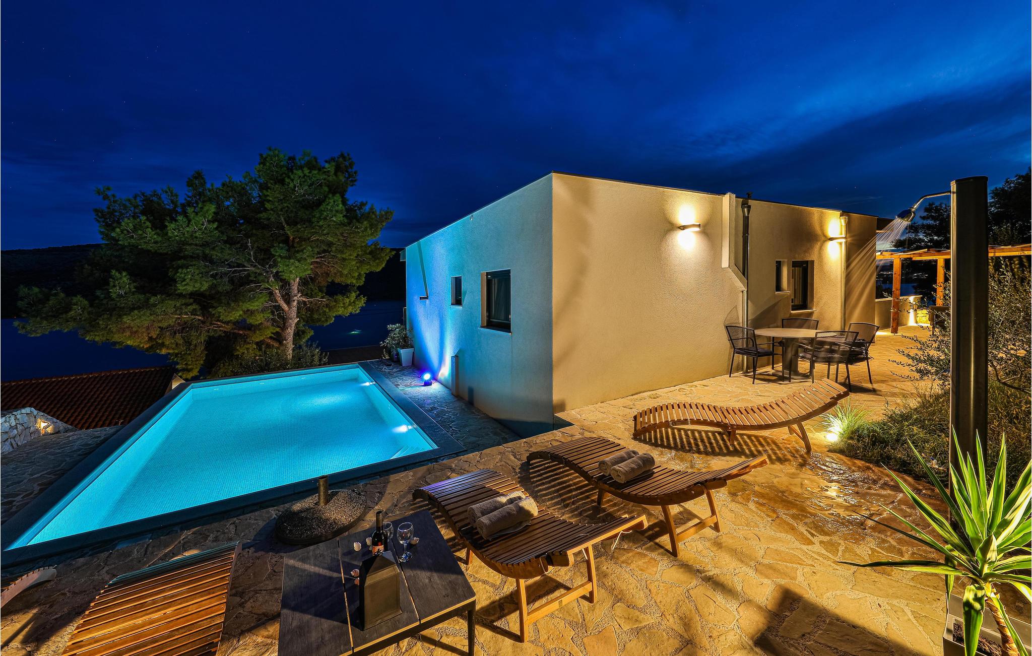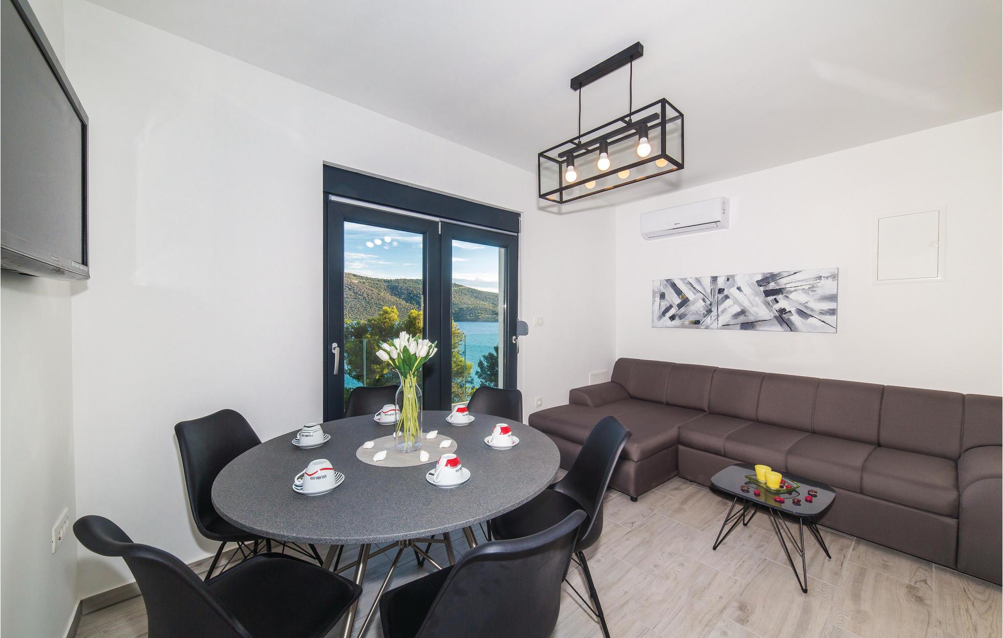 Verbringen Sie Ihren Urlaub in Meeresnähe. Dieses schöne Ferienhaus ist zum Entspannen konzipiert und befindet sich im kleinen Ferienort Poljica. Mit zwei Wohneinheiten ist das Feriendomizil perfekt für zwei Familien oder eine Freundesgruppe geeignet. Das Erdgeschoss besteht aus einer Küche mit Esszimmer, zwei Schlafzimmern und Bad, während im ersten Stock, eine Küche mit Esszimmer, drei Schlafzimmer und zwei Badezimmer sind. Besonders hervorzuheben ist der Pool mit herrlichem Panoramablick aufs Meer, der für Ihre Erfrischung an heißen Sommertagen sorgen wird. Nur die Straße trennt Sie vom Meer und einem herrlichem Kiesstrand.