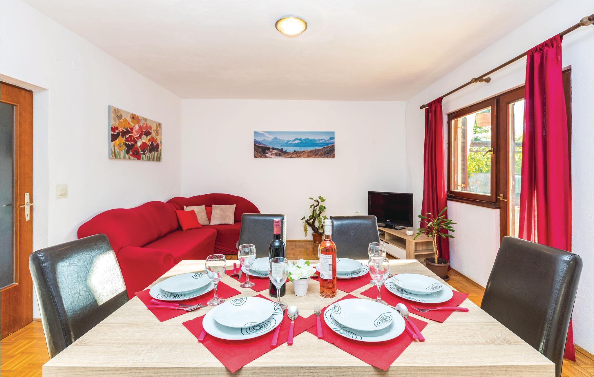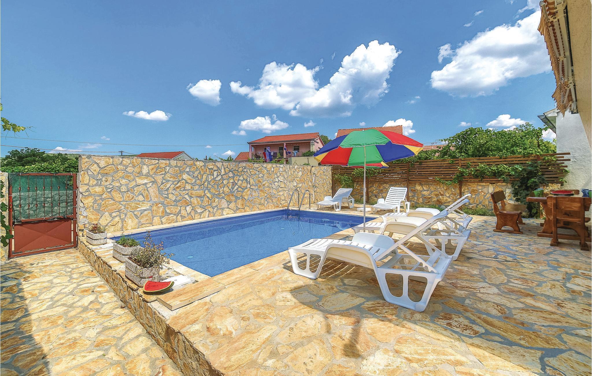 Dieses Ferienhaus mit Pool liegt in einer friedlichen Umgebung und ist ideal für Familien und Paare, die die Idylle eines kleinen Ortes genießen wollen. Es verfügt über eine große Terrasse auf der oberen Etage mit Aussicht auf die Landschaft. Ein herrliches Sonnendeck ist beim Pool. Neben dem Haus sind der unabkömmliche Grill und dahinter die Spielgeräte für Kinder. Der Gastgeber bietet nach vorheriger Absprache und gegen Gebühr Reiten, Jet-Ski und Schnellbootverleih, Transfers und Gutscheine in nahegelegenen Restaurants an. Der Nationalpark Krka mit seinen einzigartigen Naturschönheiten ist ca. 25 km entfernt. Nur 15 km sind es zum UNESCO-Welterbe der alten Stadt Trogir.