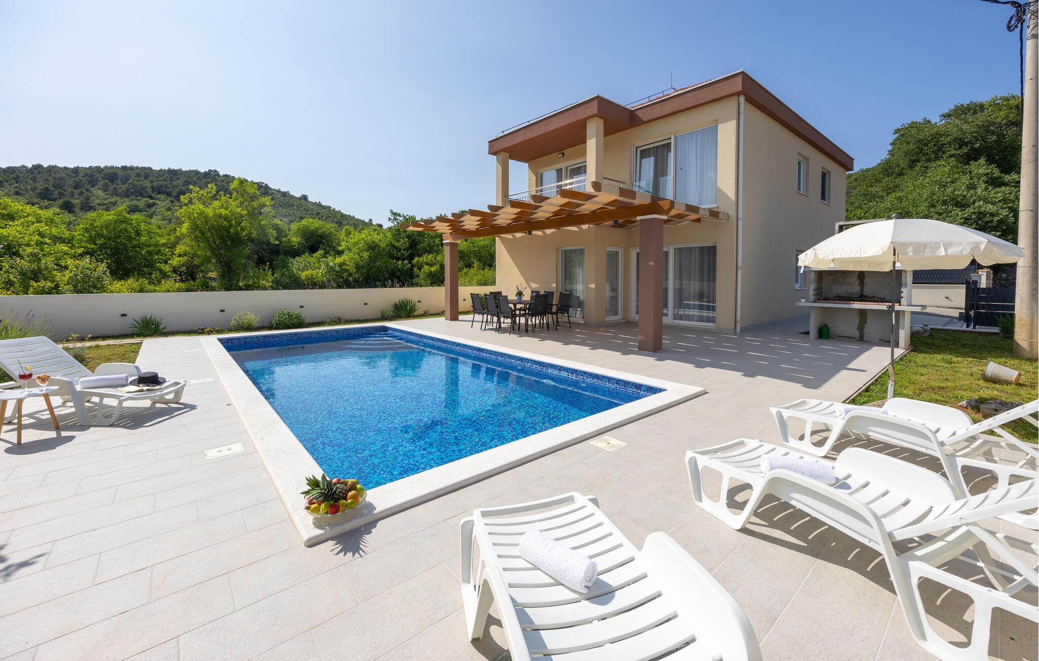 In traumhafter Lage begrüßt Sie das komfortable Haus, hier sind Sie von einer herrlichen Landschaft umgeben. In den hellen Räumen mit einer modernen und geschmackvollen Einrichtung werden Sie sich gleich wohlfühlen. Hier können Sie in stilvollem Ambiente die gemeinsamen Tage genießen. Machen Sie es sich abends nach einem herrlichen Tag am Pool oder einem schönen Ausflug in der Umgebung bequem und plaudern Sie noch lange in gemütlicher Runde.