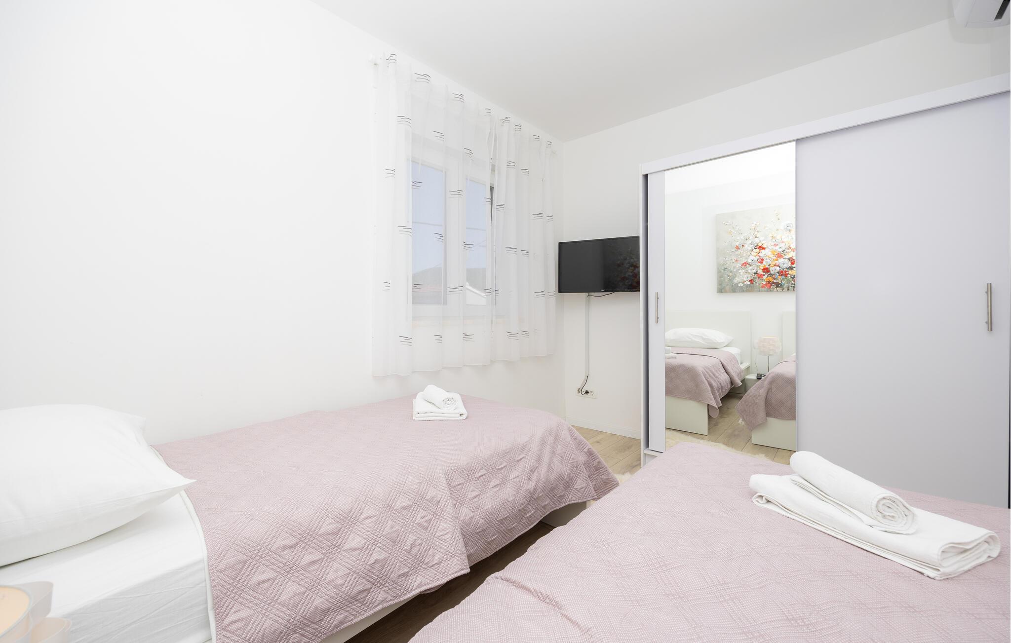 Fahren Sie an die Küste, um das Strandleben zu genießen und unternehmen Sie einen Ausflug nach Trogir, spazieren Sie über die Brücke in die Altstadt und erkunden Sie die Bauwerke, die von der reichen Vergangenheit dieser beeindruckenden Stadt zeugen, darunter der Cipiko Palast, die Kirche Sveti Petar und die Gebäude am Platz Johannes Paul II.