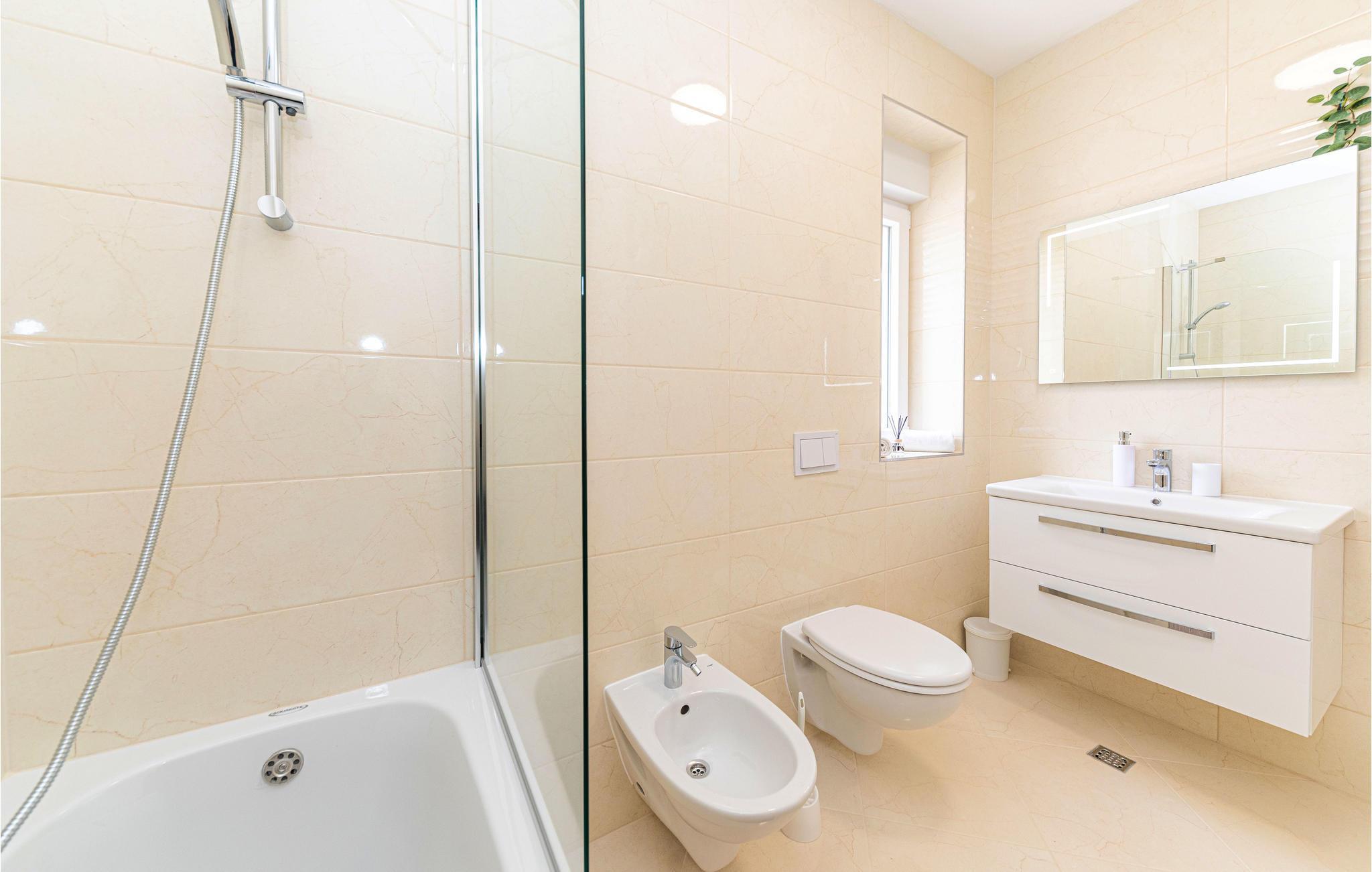 Badezimmer 7m2 (nr. 2) - WC. Warmes und kaltes Wasser. Badewanne