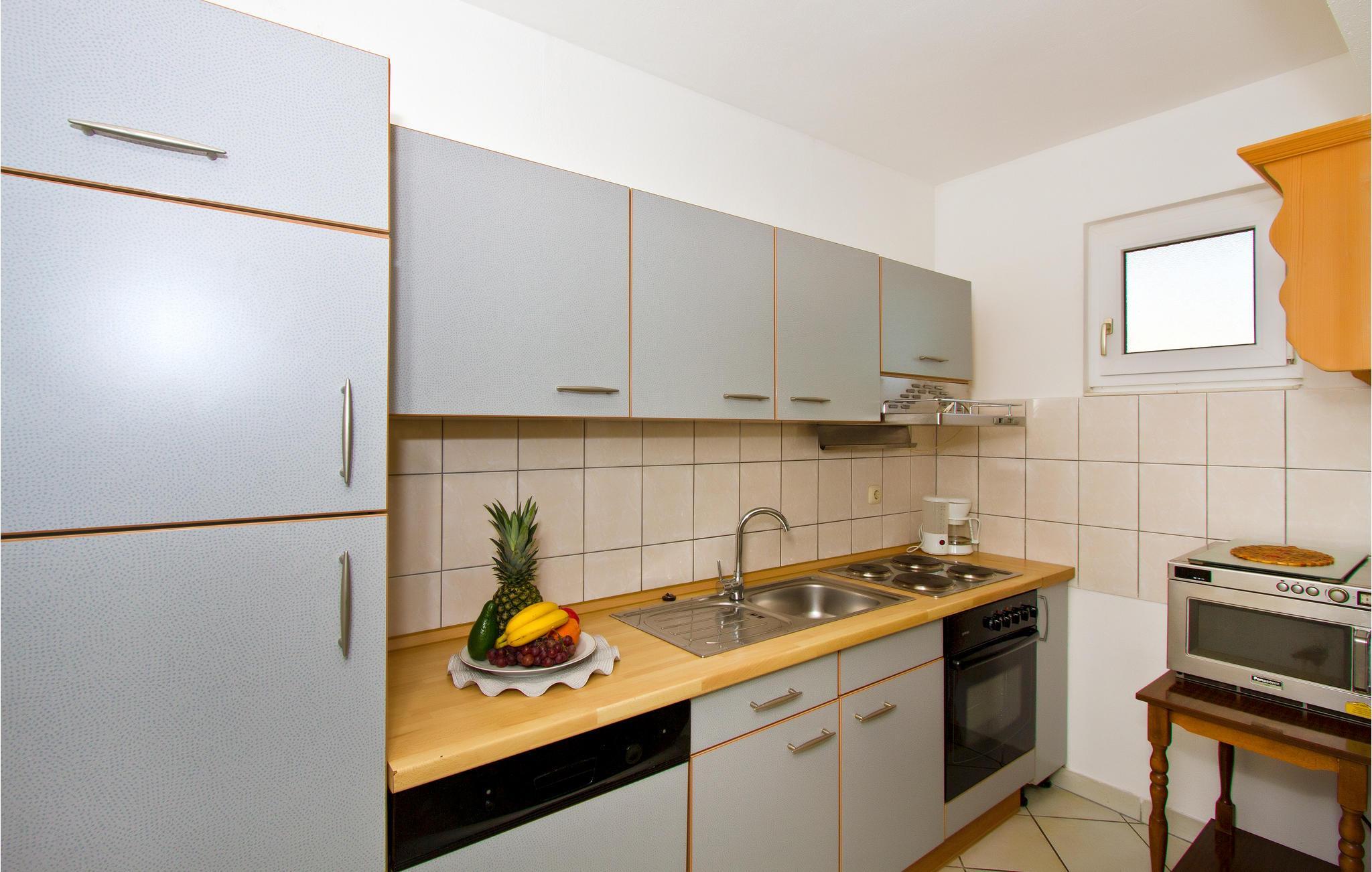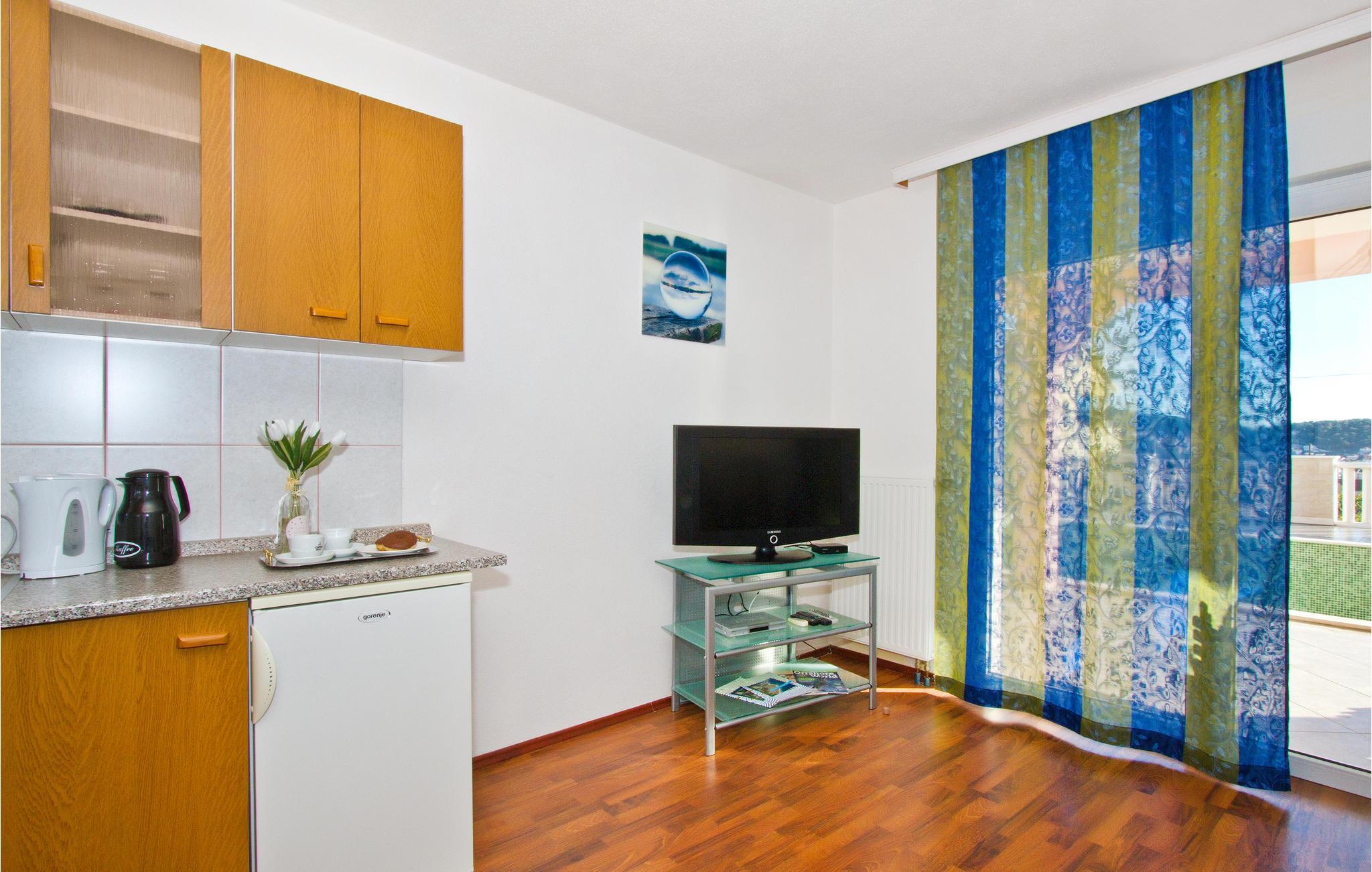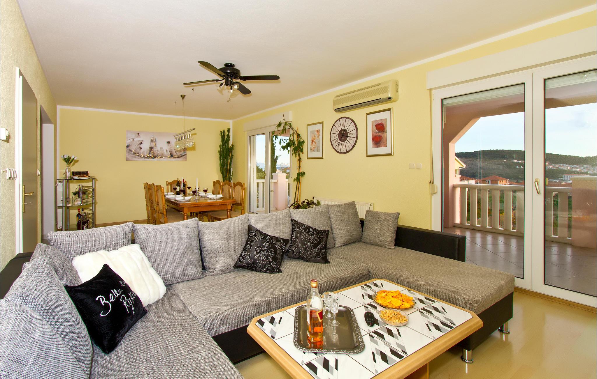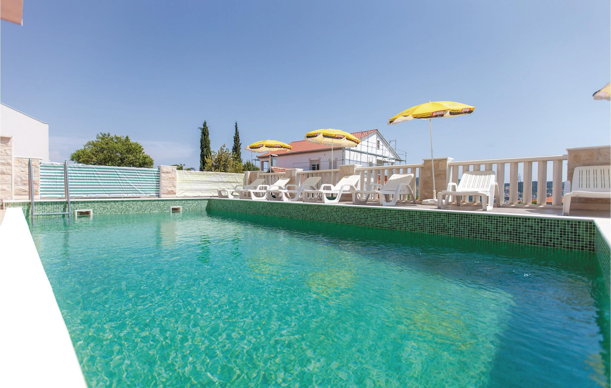 Verbringen Sie Ihren Urlaub in diesem geräumigen Ferienhaus in der wunderschönen Stadt Trogir. Das Haus setzt sich aus drei Wohneinheiten zusammen. Im Erdgeschoß liegen zwei Einzimmer-Wohnungen und im ersten Stock die geräumige Dreizimmer-Wohnung, welche durch eine Außentreppe miteinander verbunden sind. Auf der großen Terrasse erwartet Sie der Pool, der an heißen Sommertagen für Erfrischung und Badespaß sorgt. Das Feriendomizil eignet sich für größere Familien oder Freunde, die gemeinsam Urlaub machen. Zum Zentrum von Trogir sind es nur 800 m, es gibt viele Sehenswürdigkeiten, gute Restaurants und gemütliche Tavernen.