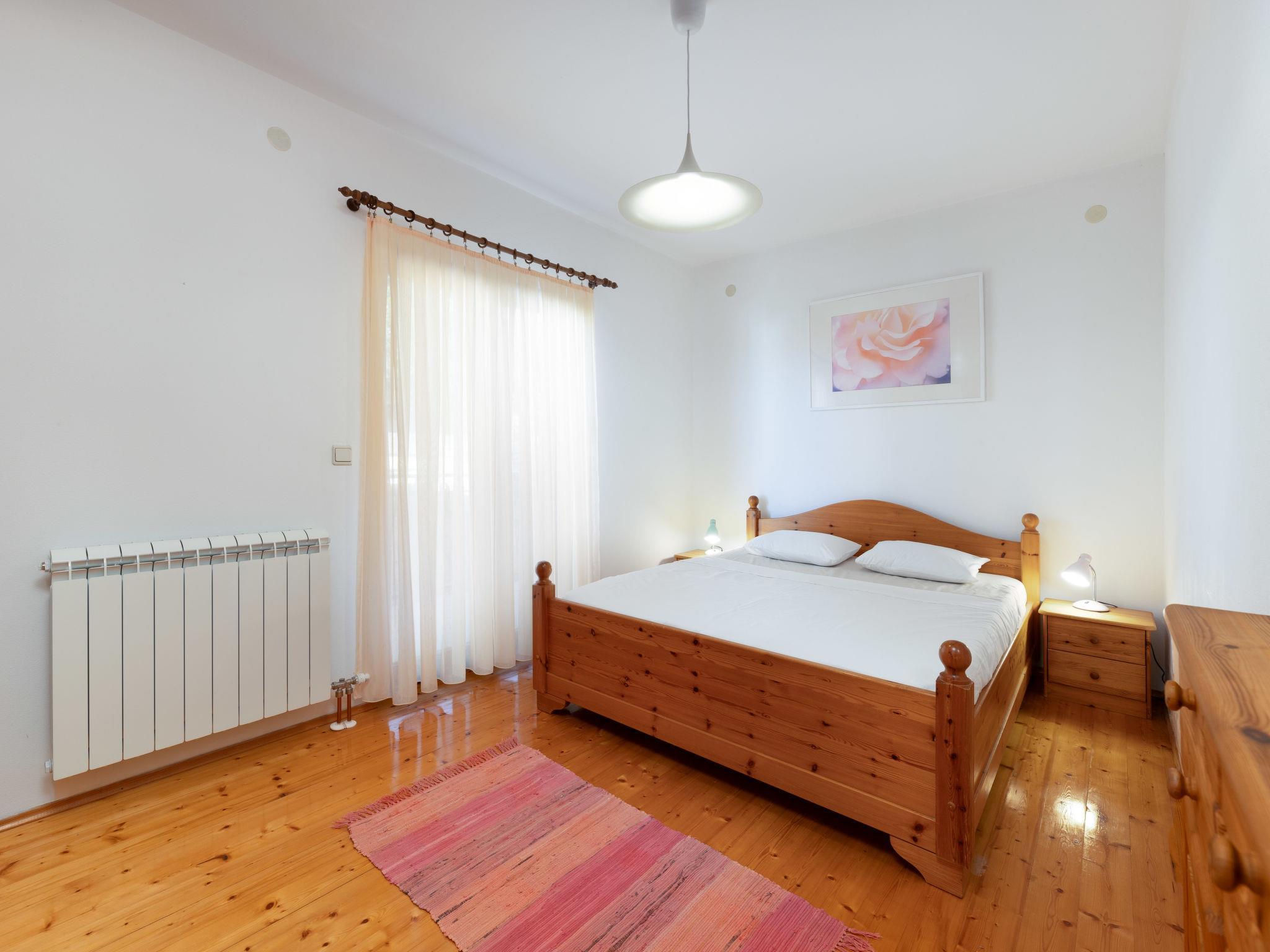 "Limun 3", 5-Zimmer-Wohnung 125 m2 im 1. Stock. Wohn-/Esszimmer mit Sat-TV (Flachbildschirm), Klimaanlage. Ausgang zur Terrasse. 1 Zimmer mit 1 franz. Bett (160 cm, Länge 200 cm). Ausgang zum Balkon. 1 Zimmer mit 1 franz. Bett (160 cm, Länge 200 cm). Ausgang zur Terrasse. 1 Zimmer mit 1 Bett (90 cm, Länge 200 cm). Ausgang zur Terrasse. Offene Küche (Backofen, Geschirrspüler, 4 Glaskeramikplatten, Wasserkocher, Mikrowelle, Tiefkühler, elektrische Kaffeemaschine). Bad/Bidet/WC, sep. WC. Heizung, Warmluftheizung. Obergeschoss: 1 Zimmer, Deckenhöhe 160 - 230 cm mit 1 franz. Bett (160 cm, Länge 200 cm), Dusche/WC und Klimaanlage. Ausgang zum Balkon. Balkon 3 m2, Balkon 15 m2, Terrasse 40 m2. Eingeschränkte Sicht auf das Meer. Zur Verfügung: Waschmaschine. Internet (WLAN, gratis).